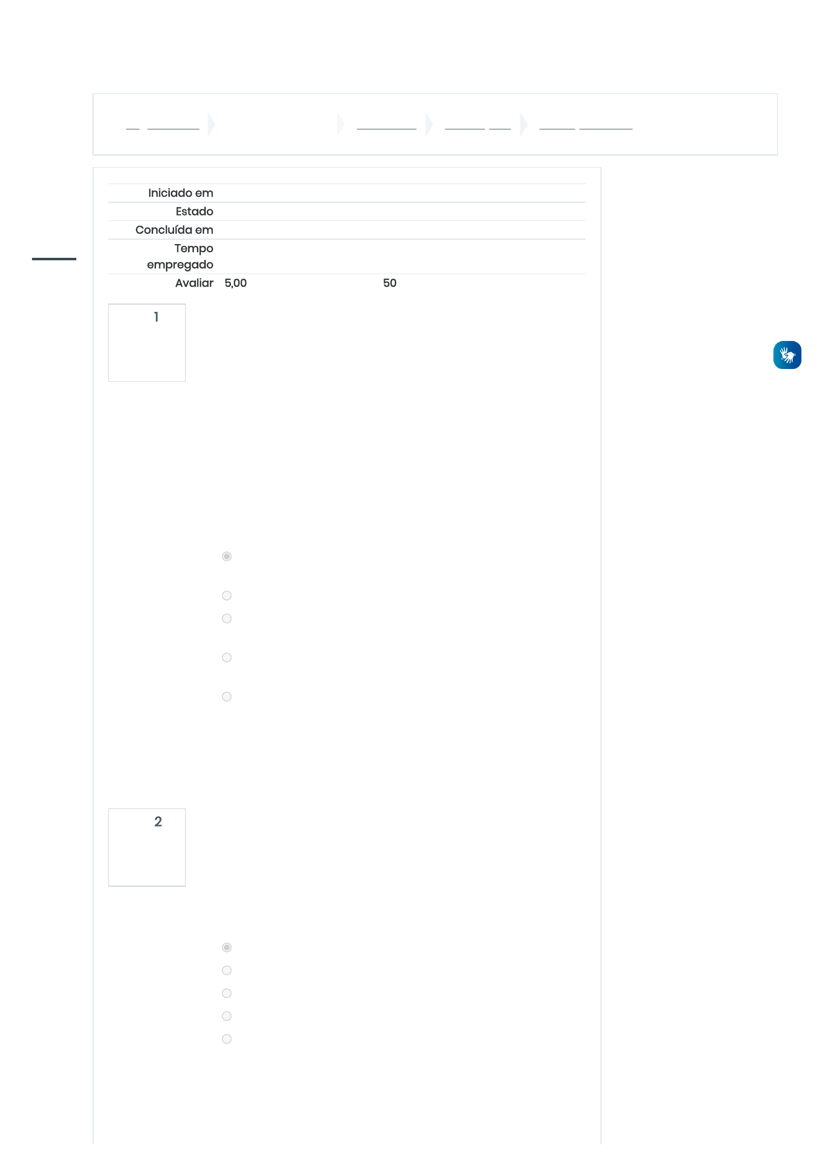 27/06/2020 Avaliação Online: Revisão da tentativa https://ead.grupoceuma.com.br/mod/quiz/review.php?attempt=10934&cmid=4482 1/6 Página inicial Minhas Disciplinas CS_CEUMA AVALIAÇÕES Avaliação Online Questão 1 Incorreto Atingiu 0,00 de 1,00 Questão 2 Correto Atingiu 1,00 de 1,00 Iniciado em sábado, 21 mar 2020, 20:49 Estado Finalizada Concluída em sábado, 21 mar 2020, 21:24 Tempo empregado 34 minutos 24 segundos Avaliar 5,00 de um máximo de 10,00(50%) Os sociólogos têm visões diferentes da sociedade. Alguns veem o mundo social como uma entidade fundamentalmente estável e contínua. Deslumbram-se com a resiliência da família, com a religião organizada e com outras instituições sociais. Outros veem a sociedade como uma série de grupos em conflito disputando recursos escassos. Para outros, ainda, os aspectos mais fascinantes do mundo social são as interações individuais cotidianas, que tantas vezes nos soam banais. Existem três visões mais correntes na sociologia e correspondem: Em consonância ao texto supracitado, marque a alternativa que representa as três visões mais correntes na sociologia. Escolha uma: a. às perspectivas sistêmicas da comunicação e interacionista. b. às perspectivas funcionalista; do conflito e interacionista. c. às perspectivas funcionalista; da conciliação e interação. d. às perspectivas fundacional; da conciliação e interacionista. e. às perspectivas natalistas; do sistema e social. A resposta correta é: às perspectivas funcionalista; do conflito e interacionista.. Assinale a alternativa que completa, corretamente a lacuna da sentença abaixo. Pode-se definir interação social como o processo pelo qual as pessoas agem e reagem em relação aos outros. Trata-se, pois, de ação social __________________________________. Escolha uma: a. recíproca. b. local. c. cultural. d. individual. e. global. A resposta correta é: recíproca.. https://ead.grupoceuma.com.br/ https://ead.grupoceuma.com.br/course/view.php?id=243 https://ead.grupoceuma.com.br/course/view.php?id=243§ion=5 https://ead.grupoceuma.com.br/mod/quiz/view.php?id=4482 javascript:void(0); https://ead.grupoceuma.com.br/user/index.php?id=243 https://ead.grupoceuma.com.br/grade/report/index.php?id=243 https://ead.grupoceuma.com.br/course/view.php?id=243&stopjsnav=1 https://ead.grupoceuma.com.br/course/view.php?id=243&datapref=1 https://ead.grupoceuma.com.br/ https://ead.grupoceuma.com.br/my/ https://ead.grupoceuma.com.br/calendar/view.php?view=month&course=243 javascript:void(0); https://ead.grupoceuma.com.br/user/files.php 27/06/2020 Avaliação Online: Revisão da tentativa https://ead.grupoceuma.com.br/mod/quiz/review.php?attempt=10934&cmid=4482 2/6 Questão 3 Incorreto Atingiu 0,00 de 1,00 Questão 4 Correto Atingiu 1,00 de 1,00 O psicólogo suíço Jean Piaget (1896-1980) desenvolveu a teoria psicogenética, segundo a qual as crianças aprendem a pensar passando por alguns estágios de desenvolvimento cognitivo. O primeiro estágio é o? Escolha uma: a. sensório-motor. b. sensório-sistêmico. c. operatório concreto. d. operações formais. e. pré-operatório. A resposta correta é: sensório-motor.. A Sociologia estuda os mais diversos aspectos do comportamento humano em sociedade. Daí a conveniência em subdividi-la em áreas especializadas. Tal empreendimento, no entanto, serve apenas a propósitos de ordem prática. Não seria viável pretender uma classificação rigorosa dos múltiplos campos da Sociologia de forma que os assuntos estudados num deles não possam ser tratados em outro. Também não seria viável pretender que essa classificação fosse exaustiva a ponto de abranger todos os assuntos de natureza sociológica. Marque a única proposição que apresenta algumas das principais subdivisões da Sociologia, que podem ser consideradas Sociologias Especiais. Escolha uma: a. I- Sociologia da Parte. II- Sociologia do Desconhecimento. III- Sociologia do Trabalho. IV- Sociologia da Educação. V- Sociologia da Família. VI- Sociologia das Organizações. VII- Sociologia da Revisão. VIII- Sociologia Rural e IX- Sociologia Urbana. b. I- Sociologia da Arte. II- Sociologia do Conhecimento. III- Sociologia do Direito. IV- Sociologia da Educação. V- Sociologia da Família. VI- Sociologia das Organizações. VII- Sociologia da Religião. VIII- Sociologia Rural e IX- Sociologia Urbana. c. I- Sociologia da Vida. II- Sociologia do Conhecimento. III- Sociologia do Direito. IV- Sociologia da Educação. V- Sociologia da Infância. VI- Sociologia das Microempresas. VII- Sociologia da Relação. VIII- Sociologia Rural e IX- Sociologia Urbana. d. I- Sociologia da Arte. II- Sociologia do Reconhecimento. III- Sociologia do Dever. IV- Sociologia da Educação. V- Sociologia da Família. VI- Sociologia das Organizações. VII- Sociologia da Religião. VIII- Sociologia Rural e IX- Sociologia Urbana. e. I- Sociologia da Vida. II- Sociologia do Conhecimento. III- Sociologia do Direito. IV- Sociologia da Educação. V- Sociologia da Família. VI- Sociologia das Organizações. VII- Sociologia da Religião. VIII- Sociologia Rural e IX- Sociologia Urbana. A resposta correta é: I- Sociologia da Arte. II- Sociologia do Conhecimento. III- Sociologia do Direito. IV- Sociologia da Educação. V- Sociologia da Família. VI- Sociologia das Organizações. VII- Sociologia da Religião. VIII- Sociologia Rural e IX- Sociologia Urbana.. javascript:void(0); https://ead.grupoceuma.com.br/user/index.php?id=243 https://ead.grupoceuma.com.br/grade/report/index.php?id=243 https://ead.grupoceuma.com.br/course/view.php?id=243&stopjsnav=1 https://ead.grupoceuma.com.br/course/view.php?id=243&datapref=1 https://ead.grupoceuma.com.br/ https://ead.grupoceuma.com.br/my/ https://ead.grupoceuma.com.br/calendar/view.php?view=month&course=243 javascript:void(0); https://ead.grupoceuma.com.br/user/files.php 27/06/2020 Avaliação Online: Revisão da tentativa https://ead.grupoceuma.com.br/mod/quiz