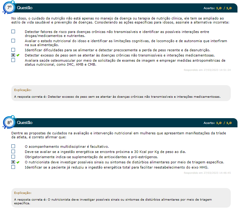 Dentre as propostas de cuidados na avaliação e intervenção nutricional em mulheres que apresentam manifestações da triade da atleta, é correto afirmar que: acompanhamento multidisciplinar é facultativo. Deve-se avaliar se a ingestão energética se encontra próxima a 30 Kcal por Kg de peso ao dia. Obrigatoriamente indica-se suplementação de antioxidantes e nutricionista deve investigar possíveis sinais ou sintomas de distúrbios alimentares por meio de triagem. Identificar se a paciente já reduziu a ingestão energética total para facilitar reestabelecimento do eixo HHG.