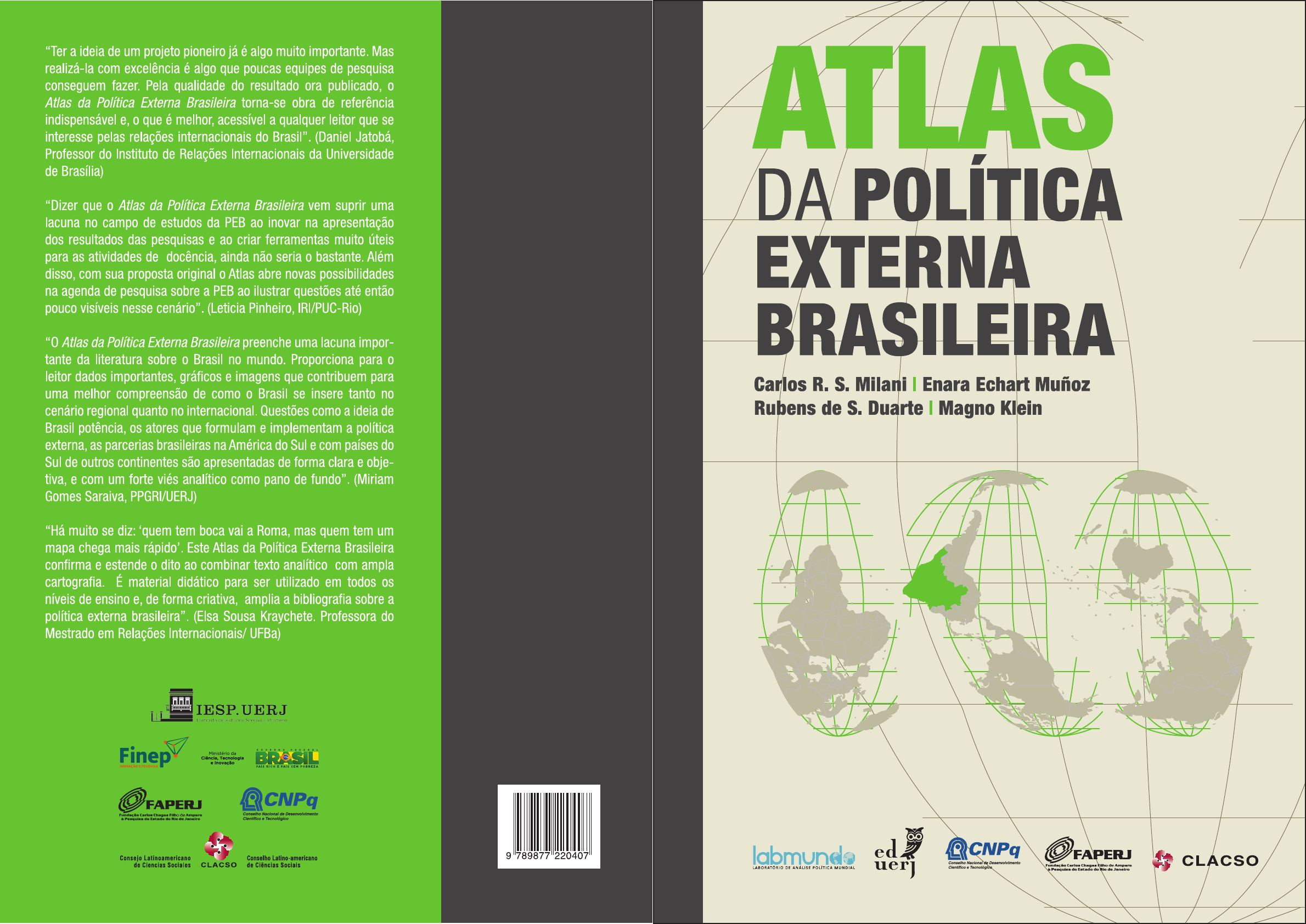 Este projeto foi implementado pelo Laboratório de Análise Política Mundial (Labmundo) com a participação da seguinte equipe: Assistente-bolsista de pesquisa: Tássia Camila de Oliveira Carvalho Cartógrafo: Allan Medeiros Pessôa Cartógrafa: Isabela Ribeiro Nascimento Silva Assistentes bolsistas de iniciação cientí�ca: Niury Novacek Gonçalves de Faria Rafael Fidalgo Carneiro Também contou com o apoio �nanceiro das seguintes instituições: FAPERJ - Fundação de Amparo à Pesquisa do Estado do Rio de Janeiro CNPq - Conselho Nacional de Desenvolvimento Cientí�co e Tecnológico FINEP - Financiadora de Estudos de Projetos Atlas da política externa brasileira / Carlos R. S. Milani ... [et. al.] - 1a ed. - Ciudad Autónoma de Buenos Aires : CLACSO ; Río de Janeiro : : CLACSO ; Rio de Janeiro : EDUerj, 2014. E-Book. ISBN 978-987-722-040-7 1. Política Exterior. 2. Brasil. I. Milani, Carlos R. S. CDD 327.1 Consejo Latinoamericano de Ciencias Sociales – Conselho Latino-americano de Ciências Sociais EEUU 1168| C1101 AAX Ciudad de Buenos Aires | Argentina Tel [54 11] 4304 9145/9505 | Fax [54 11] 4305 0875| e-mail clacso@clacso.edu.ar | web www.clacso.org Secretário Executivo Diretora Acadêmica Pablo Gentili Este livro está disponível em texto completo na Rede de Bibliotecas Virtuais do CLACSO. Fernanda Saforcada CLACSO conta com o apoio da Agência Sueca de Desenvolvimento Internacional (ASDI) II AT L A S D A P O L Í T I C A E X T E R N A B R A S I L E I R A AT L A S D A P O L Í T I C A E X T E R N A B R A S I L E I R A III A cartograia do Brasil no mundo Prefácio por Maria Regina Soares de Lima representações diplomáticas em anos recentes, a sociedade brasileira tam- bém se internacionalizou, seja pela expansão dos investimentos no ex- terior; da presença internacional das organizações e movimentos sociais e dos atores religiosos (com o Bra- sil igurando como o segundo maior emissor de missionários no mundo); do número crescente de brasileiros vivendo no exterior; da nova diplo- macia subnacional, e das mais diver- sas políticas públicas exportadas para os países do Sul, em particular Amé- rica Latina e África. No contexto de consolidação da democracia brasilei- ra, o desaio para a política externa é ampliar o diálogo com a sociedade civil, desenvolver uma robusta diplo- macia pública, coordenar a nego- ciação internacional das inúmeras políticas públicas que hoje frequen- tam as agendas da cooperação inter- nacional brasileira. Na democracia e no contexto da crescente demanda da sociedade civil por consulta e par- ticipação, a política externa sai do in- sulamento e passa a fazer parte do rol das políticas públicas. O retrato do Brasil no mundo que emerge desta publicação é a de um país diverso e complexo, uma demo- cracia de massa, com uma política externa diversiicada e com todas as credenciais para ser um modelo para os países do Sul nas águas caudalosas de uma economia globalizada e de- sigual; um ordenamento geopolítico estratiicado mas como alguns espa- ços multilaterais; e, particularmente, uma enorme heterogeneidade cul- tural e de valores cujo manejo exige atores internacionais que façam da tolerância, equidade e respeito à di- versidade e à pluralidade o núcleo duro de sua inserção internacional. Parabéns à equipe do Labmundo do IESP-UERJ, coordenada por meu colega Carlos Milani, composta por Enara Echart, Rubens Duarte e Magno Klein, por nos brindar com este esplêndido Atlas tão necessário nos turbulentos dias de hoje. Maria Regina Soares de Lima é Pes- quisadora Sênior do Instituto de Estudos Sociais e Políticos da Uni- versidade do Estado do Rio de Janei- ro (IESP-UERJ) e Coordenadora do Observatório Político Sul-America- no (OPSA) Por suas dimensões continentais o Brasil tende a ser um país mais vol- tado para dentro. Em vista da grande extensão territorial, o país apresen- ta uma relevante diversidade entre suas regiões, o que torna o estudo das diferenças regionais em varia- das dimensões um atrativo objeto de estudo de um país que é um mun- do em si mesmo. O Atlas da Política Externa Brasileira retira o Brasil de si e o projeta no mundo em um duplo sentido. Em primeiro lugar, pela es- colha da cartograia temática como a linguagem para representar graica- mente as dimensões quantitativas e qualitativas de uma miríade impres- sionante de dados, tendo como pa- râmetro representações imagéticas dos mesmos indicadores em diver- sos outros territórios nacionais. Pela centralidade conferida ao espaço ter- ritorial, a cartograia temática prati- camente obriga ao uso da perspectiva comparada. Ademais, a escolha de uma projeção cartográica especí- ica, colocando o país no centro do globo, nos recorda que todas as pro- jeções cartográicas são arbitrárias e reletem as preferências subjetivas de cada pesquisador. Em perspecti- va com outras realidades nacionais, o Atlas situa o Brasil no centro do pla- neta, mas relativiza nossas alegadas especiicidades nacionais, equívoco de se tomar o caso brasileiro como único. O seu pioneirismo, além da narrati- va plástica da linguagem dos mapas, também está reletido naquilo que seus idealizadores decidiram mos- trar e comparar. Não se trata de um Atlas convencional de política exter- na. Os seus cinco capítulos temáti- cos dão conta de eventos, processos, dimensões quantitativas e qualita- tivas que muitas vezes, como no ca- pítulo sobre a formação nacional, podem abarcar uma centena de anos, mas cuja concisão é obtida pelo uso imaginativo de linhas de tempo que atravessam os séculos e situam os eventos brasileiros em perspecti- va temporal e espacial. Ao mesmo tempo, processos muitas vezes trata- dos na atualidade como constantes são colocados em perspectiva histó- ria. É o caso, por exemplo, das rela- ções comerciais com os EUA que desde o início da década de 50 têm diminuído sistematicamente, acom- panhan