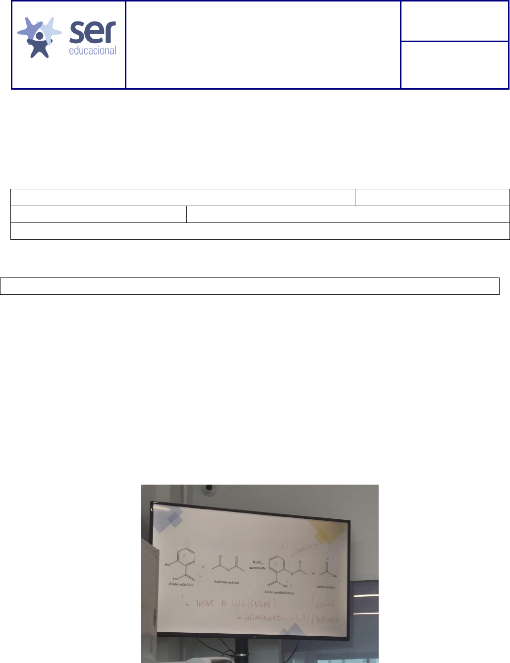 VERSÃO:01 RELATÓRIO DE AULAS PRÁTICAS: QUÍMICA MEDICINAL AVANÇADA Aula 2 DADOS DO(A) ALUNO(A): RELATÓRIO: 1. Resumo sobre a síntese do ácido acetilsalicílico. A Aspirina popularmente conhecida, consiste na sintese do ácido acetilsalicílico ou AAS(CH9H8O4). Na aula prática abordamos este processo, onde trata o ácido salicílico com anidridoacético em presença de um pouco de ácido sulfúrico, que atua como catalisador, considerado um processo simples, mas o processo de recristalização requer muito cuidado, pois,quase sempre os cristais ainda ficam com muita impureza, e pode provocar mal estar. • Inicialmente a protonação do oxigênio de uma das carbonilas do anidrido acético pelo ácido sulfúrico, levando à formação do anidrido acético protonados e da base conjugada do ácido sulfúrico; • O ácido sulfúrico tem o papel de catalisador dessa reação. RELATÓRIO DE AULAS PRÁTICAS - EaD AULA 2 DATA: 14/01/2022 NOME: ANNE KARINNE GOMES DE BARROS RODRIGUES MATRÍCULA: 01302067 CURSO: FARMÁCIA POLO: PETROLINA PROFESSOR(A) ORIENTADOR(A): MELQUISEDEQUE TEMA DE AULA: SÍNTESE DO ÁCIDO ACETILSALICÍLICO • O oxigênio tem a tendência de puxar elétrons do seu carbono carbonílico, fazendo com que este que extremamente eletro positivo e consequentemente instável. • O par de elétrons do oxigênio do ácido salicílico ataca o carbonoeletrofílico do anidrido acético protonado, levando à formação do intermediário 2, que também é bastante instável em decorrência dacarga positiva no átomo de oxigênio; • O intermediário 2 se converte no 3 e, do intermediário 3, há a liberação de ácido acético e a formação do intermediário 4, que possui um próton a mais do que o ácido acetilsalicílico, sendo proveniente do ácido sulfúrico que foi utilizada inicialmente; • Assim, a base conjugada do ácido sulfúrico ataca o próton sobrando do intermediário 4 e forma AAS + ácido sulfúrico, que é o catalisador então deve ser regenerado no nal da reação. No laboratório realizamos o processo de síntese ácido acetilsalicílico, para isso utlizamos os materiais: • Ácido acetilsalicílico PA • Anidro PA • Balança analítica • Balão de fundo redondo • Bastão de vidro • Béquer • Erlenmeyer • Funil bécher • Pisseta • Placa de petri • Proveta graduada Procedimento: 1. Pesar em um béquer 3,0g de ácido salicílico; 2. Na capela de exaustão, adiciona-se 6ml anidrido acético e dez gotas de ácido sulfúrico concentrado, a cada gota homogenizar a mistura, pois se colocar de uma vez pode explodir; 3. Aquecer a solução no béquer em banho- maria, à 70ºC durante 15 minutos, agitando a misturade vez em quando, com um bastão de vidro. 4. Retirar a solução do banho-maria e adicionar 30ml de água gelada, deixar na geladeira resfriando até formar os cristais, após realizar filtração à vácuo. RELATÓRIO: 1. Resumo sobre o uso do programa Chemsketch para o desenho de estruturas químicas. O chemsketch é um software de desenvolvimento de Química Avançada, foi projetado para ser usado separadamente ou integrado com outra saplicações. O chemsketch é usado para desenhar as estruturas químicas, reações e diagramas esquemáticos, também pode ser usado para projeções de moléculas em 3D, com o objetivo de examiná-los a partir de diferentes ângulos. Dentre suas ferramentas, se destacam a possibilidade de: • Montar estruturas planas e otimizá-las para uma visualizaçãotridimensional; • Manipular estruturas em 3D; • Nomear, de acordo com as regras da União Internacional de Química Pura e Aplicada, estruturas de até cinquenta átomos e três ciclos; • Acessar uma base de templates com várias estruturas prontas de diversas classes de compostos (alcaloides, vitaminas, carboidratos, ácidosnucléicos, aromáticos, entre outros); • Determinar dados estereoquímicos das estruturas desenhadas; • Determinar diversas propriedades dos compostos desenhados, tais como: fórmula molecular, massa molar, densidade, tensão superficial, formas tautoméricas, índice de refração, volume molar, etc; • Salvar os projetos feitos em diversos formatos: jpeg, png, gif, pdf, entreoutros, além do formato padrão do próprio programa; • Montar mecanismos de reações orgânicas; • Numerar carbonos em uma cadeia carbônica; • Consultar em bases de dados on-line artigos, dados cromatográficos e espectroscópicos, aplicações medicinais, além de outras informações das estruturas desenhadas. O chemsketch apresenta basicamente dois modos de trabalho: - Modo estrutura, nele é possível desenhar estruturas orgânicas, esquemas de reação, determinar propriedades físicas e químicas. - Modo desenho: são apresentadas as ferramentas para a inserção de texto e desenho de vários objetos gráficos. Exemplo: a Tabela Periódica dos Elementos Químicos, incluindo informações como: massa atômica, estados de oxidação,configuração eletrônica e ressonância magnética nuclear. O Chemsketch é uma ótima ferramenta para vários ramos da ciência pois dispoe de várias funcionalidades. TEMA DE AULA: USO DO PROGRAMA CHEMSKETCH REFERÊNCIAS BIBLIOGRÁFICAS • Ácido Acetilsalicilico. Disponivel em: https://www.sifep.org.br/news1/pesquisas-area-farmaceutica/277-acido- acetilsalicilico • Guia prático de utilização do Chemsketch. Diponivel em: https://www.researchgate.net/publication/305661601_GUIA_PRATICO_D E_UTILIZACAO_DO_CHEMSKETCH https://www.sifep.org.br/news1/pesquisas-area-farmaceutica/277-acido-acetilsalicilico https://www.sifep.org.br/news1/pesquisas-area-farmaceutica/277-acido-acetilsalicilico