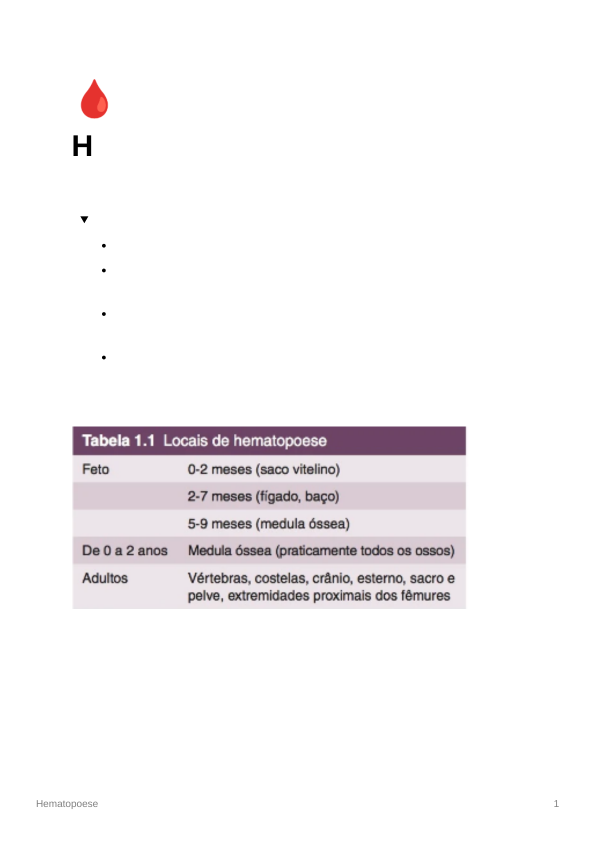 Hematopoese 1 🩸 Hematopoese Produção de células sanguíneas Local de produção: Medula Óssea Medula óssea vermelha: Infância, todo o espaço medular Medula amarela: Puberdade, inicia-se a substituição da medula vermelha por gordura 18-20 anos a medula óssea vermelha está restrita aos ossos chatos e longos Medula hematopoiética dos adultos é confinada ao esqueleto central e as extremidades aproximadas do fêmur e do úmero MEDULA ÓSSEA Microambiente normal: Estroma: Porção celular e matriz celular Hematopoese 2 CÉLULAS - TRONCO MESENQUIMAIS: Juntamente com os osteoblastos, formam nichos e fornecem os fatores de crescimento, moléculas de adesão e citoquinas que são suporte as células-tronco Nicho endosteal: Cercado por osteoblastos - CTH próximas a osteoblastos Nicho perivascular: Forrado com endotélio - CTH próximas do endotélio vascular COMPONENTE CELULAR MATRIZ EXTRACELULAR Osteoblastos Fibronectina Fibroblastos Trombospondina Adipócitos Hemonectina Macrófagos Colágeno Células Musculares Lisas Glicosaminoglicanos Células Reticulares Fatores solúveis: Citocinas e fatores de crescimento Células Endoteliais CÉLULAS - TRONCO HEMATOPOÉTICAS: CTH São escassas (1 em 20 milhões de células nucleadas da medula óssea) Capacidade de autorrenovação Diferenciação - progenitoras comprometidas com uma linhagem Hematopoese 3 Progenitoras hematopoiéticas: Potencial de desenvolvimento restrito Mobilização - Podem sair da medula óssea Necessitam atravessar o endotélio vascular Processo aumentado pela administração de fatores de crescimento - Como o fator estimulador de colônias de granulócitos (G-CSF) Homing - Podem voltar para a medula óssea Depende de um gradiente quimiocinético FATORES DE CRESCIMENTO Ligam-se a receptores celulares específicos e produzem uma cascata de eventos de fosforilação no núcleo celular Hormônios glicoproteicos que regulam a proliferação e a diferenciação das células progenitoras hematopoéticas e a função celular das células sanguíneas maduras Produzidos por diferentes tipos de células e agem em mais de uma linhagem Agem no local que são produzidas (contato de célula a célula) ou circular no plasma Se ligam a matriz extracelular - Formando nichos que células progenitoras e células-tronco se ligam Proliferação celular, diferenciação, maturação, prevenir apoptose e afetam as funções de células maduras Células do estroma são a principal fonte de fatores de crescimento - Exceção da eritropoetina (90% no rim) e trombopoetina (fígado) Agem sinergicamente no estimulo a proliferação ou a diferenciação de uma célula em particular - Com outros fatores de crescimento Hematopoese 4 A ação de um fator de crescimento de uma célula pode estimular a produção de outro fator de crescimento ou um receptor de fator SCF e FLT-L agem localmente nas células troco pluripotente e nos progenitores primitivos mieloides e linfoides Interleuquina-3 e GM-CSF são fatores de crescimento multipotentes com atividades parcialmente superpostas G-CSF e a trombopoetina aumentam os efeitos de SCF, FLT-L, IL-3 e GM- CSF na sobrevida e na diferenciação das células hematopoeticas primitivas Esses fatores mantêm um pool de células tronco e células progenitoras hematopoéticas sobre a qual agem os fatores de ação tardia, eritropoetina, G- CSF, M-CSF, IL-5 e trombopoetina Para aumentar a produção de uma ou outra linhagem em resposta as necessidades do organismo Hematopoese 5 💡 Exemplo: Formação de granulócitos e monócitos pode ser estimulada por infecção ou inflamação, por meio da liberação de IL-1 e fator de necrose tumoral (TNF). Os TNF estimulam as células do estroma a produzirem fatores de crescimentos em uma rede interativa. Citocinas, como o fatore de crescimento transformador-β (TGF-β) e o interferon-γ (IFN-γ), podem exercer um efeito negativo na hematopoese e podem desempenhar um papel no desenvolvimento de anemia aplástica Hematopoese 6 Células sanguíneas CÉLULA FUNÇÃO Eritrócitos Transporte de CO2 e O2 Plaquetas Homeostasia Neutrófilos Proteção contra bactérias e fungos Monócitos Proteção contra bactérias e fungos Eosinófilos Proteção contra parasitas Linfócitos B: Síntese de imunoglobulinas. T: Proteção contra vírus e funções imunes CÉLULAS NORMAIS Hematopoese 7