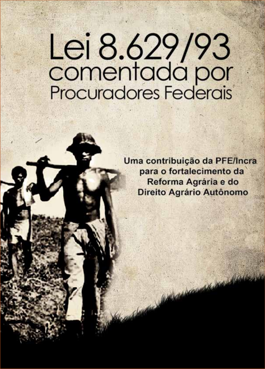 Lei 8.629/93 comentada por Procuradores Federais Uma contribuição da PFE/Incra para o fortalecimento da Reforma Agrária e do Direito Agrário Autônomo Brasília-DF 2011 L525 Brasil. Instituto Nacional de Colonização e Reforma Agrária. Procuradoria Federal Especializada junto ao Incra. Lei 8629/93 comentada por procuradores federais : uma contribuição da PFE/Incra para o fortalecimento da reforma agrária e do direito agrário autônomo / Instituto Nacional de Colonização e Reforma Agrária, Procuradoria Federal Especializada junto ao Incra. – Brasília : INCRA, 2011. 360p. ISBN: 978-85-61615-02-4 1. Reforma agrária - Brasil. 2. Direito agrário - Brasil. I. Instituto Nacional de Colonização e Reforma Agrária. II. Título CDD: 333.3181 Procuradoria Federal Especializada Junto ao Incra Lei 8.629/93 Comentada por Procuradores Federais Uma contribuição da PFE/Incra para o fortalecimento da Reforma Agrária e do Direito Agrário Autônomo 1ª Edição Brasília - DF INCRA 2011 Dilma Rousseff Presidenta da República Afonso Bandeira Florence Ministro do Desenvolvimento Agrário Rolf Hackbart Presidente do Incra Eva Maria Sardinha Diretora de Gestão Administrativa Roberto Kiel Diretor de Gestão Estratégica César José de Oliveira Diretor de Desenvolvimento de Projetos de Assentamento Celso Lisboa de Lacerda Diretor de Obtenção de Terras e Implantação de Projetos de Assentamento Richard Martins Torsiano Diretor de Ordenamento da Estrutura Fundiária Gilda Diniz dos Santos Procuradora Chefe da Procuradoria Federal Especializada junto ao Incra Renata Almeida D’Ávila Subprocuradora Federal da Procuradoria Federal Especializada junto ao Incra Publicação Especial do Instituto Nacional de Colonização e Reforma Agrária – INCRA Junior Divino Fideles Coordenador Geral Agrário da Procuradoria Federal Especializada junto ao Incra Emanoel Gonçalves de Carvalho Coordenador Geral de Assuntos Jurídicos e Ad- ministrativos da Procuradoria Federal Especiali- zada junto ao Incra Bruno Monteiro Portela Coordenador Geral de Regularização Fundiária na Amazônia Legal da Procuradoria Federal Especializada junto ao Incra Rodrigo Aprigio Chaves Coordenador Geral Trabalhista da Procuradoria Federal Especializada junto ao Incra Paula Renata Castro Fonseca Assessora da Procuradoria Federal Especializa- da junto ao Incra Juliana Fernandes Chacpe Assessora da Procuradoria Federal Especializa- da junto ao Incra Danielle Cabral de Lucena Assessora da Procuradoria Federal Especializa- da junto ao Incra Dayseanne Moreira Santos Assessora da Procuradoria Federal Especiali- zada junto ao Tribunal Federal Regional da 1ª Região e Tribunais Superiores Organizadora Gilda Diniz dos Santos Procuradora-Chefe da PFE/Incra Conselho Editorial Gilda Diniz dos Santos Procuradora Chefe da PFE/Incra SBN Qd. 01, Bl. D, Ed. Palácio do Desenvolvimento 19 ° Andar CEP: 70.057-900 Brasília - DF gilda.diniz@incra.gov.br Renata Almeida D´Avila Subprocuradora Federal da PFE/Incra, Especialista em Direito Processual Civil pela UFBA e em Direito Ambiental e Desenvolvimento Sustentável pela UnB SBN Qd. 01, Bl. D, Ed. Palácio do Desenvolvimento 19 ° Andar CEP: 70.057-900 Brasília - DF renata.davila@incra.gov.br Emanoel Gonçalves de Carvalho Procurador Federal e Coordenador Geral de Assuntos Jurídicos Administrativos da PFE/ Incra SBN Qd. 01, Bl. D, Ed. Palácio do Desenvolvimento 19 ° Andar CEP: 70.057-900 Brasília - DF emanoel.carvalho@incra.gov.br Junior Divino Fideles Procurador Federal e Coordenador Geral Agrário da PFE/Incra, Especialista em Direito Agrário pela UFG/GO SBN Qd. 01, Bl. D, Ed. Palácio do Desenvolvimento 19 ° Andar CEP: 70.057-900 Brasília - DF junior.fideles@incra.gov.br Os Autores Os autores deste livro são procuradores federais em exercício na PFE/ Incra (Procuradoria Federal Especializada junto ao Incra, órgão vinculado à Advocacia-Geral da União) ou que nela tenham atuado, e que em face da lida diária têm uma importante contribuição aos que ingressam na discussão, aos profissionais já integrados ao tema, ao judiciário e ministério público, bem assim, aos acadêmicos nos primeiros passos do estudo do Direito Agrário. Bruno Monteiro Portela Procurador Federal e Coordenador Geral de Regularização Fundiária na Amazônia Legal da PFE/Incra e Especialista em Direito Público pela Unb/Cead/AGU SBN Qd. 01, Bl. D, Ed. Palácio do Desenvolvimento 19 ° Andar CEP: 70.057-900 Brasília - DF bruno.portela@incra.gov.br Bruno Rodrigues Arruda e Silva Procurador Federal e Coordenador do Núcleo Agrário da Procuradoria Regional Federal da 5ª Região, ex-Coordenador Geral Agrário da PFE/INCRA PRF – 5ª REGIÃO – End. Av. Engenheiro Domingos Ferreira nº 604 CEP: 51011-050 Boa Viagem – Pernambuco bruno.silva@agu.gov.br Carolina Saboia Fontenele e Silva Procuradora Federal da PFE/Incra em Rondônia, especialista em Direito Público pelo Insti- tuto Brasiliense de Direito Público - IDP SBN Qd. 01, Bl. D, Ed. Palácio do Desenvolvimento 19 ° Andar CEP: 70.057-900 Brasília - DF carolina.saboia@agu.gov.br Daniel Leite da Silva Procurador Federal da PFE/Incra/Sede SBN Qd. 01, Bl. D, Ed. Palácio do Desenvolvimento 19 ° Andar CEP: 70.057-900 Brasília - DF daniel.leite@agu.gov.br Daniel Martins Felzemburg Procurador Federal, Chefe da PFE/Incra no Tocantins, Especialista em Direito Processual Civil pelas Faculdades Jorge Amado (2005), em Salvador-BA, sócio honorário da Academia Brasileira de Direito Processual Civil desde 2006 Rua AANE 40 Alameda 01 QI 08 lote 1A. CEP: 77.006-336 Palmas – TO daniel.felzemburg@pmj.incra.gov.br Danielle Cabral de Lucena Procuradora Federal e Assessora da PFE/Incra/Sede SBN Qd. 01, Bl. D, Ed. Palácio do Desenvolvimento 19 ° Andar CEP: 70.057-900 Brasília - DF danielle.lucena@incra.gov.br Dayseanne Moreira Santos Procuradora Federal e Assessora da PFE/Incra junto ao Tribunal Federal Regional da 1ª Região e Tribunais Superiores, 