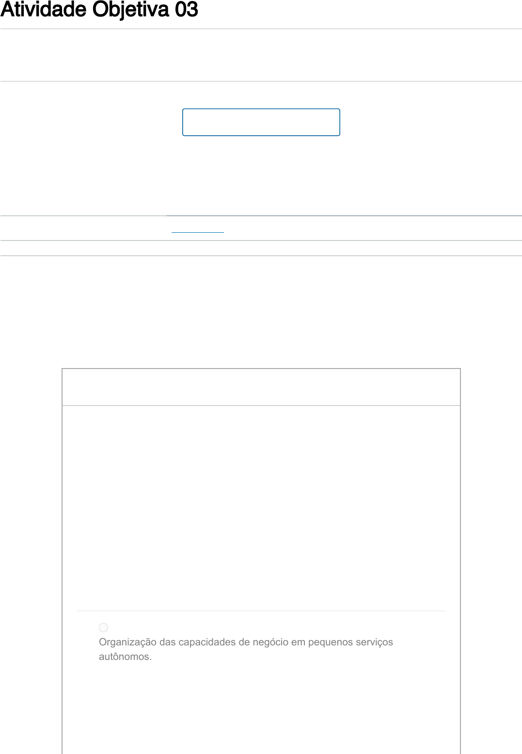 02/04/2023, 18:52 Atividade Objetiva 03: 07 - Arquitetura de Back-End (2022) https://pucminas.instructure.com/courses/90089/quizzes/297931 1/4 Atividade Objetiva 03 Entrega Sem prazo Pontos 10 Perguntas 4 Limite de tempo Nenhum Tentativas permitidas Sem limite Histórico de tentativas Tentativa Tempo Pontuação MAIS RECENTE Tentativa 1 2 minutos 10 de 10 As respostas corretas estão ocultas. Pontuação desta tentativa: 10 de 10 Enviado 2 abr em 18:53 Esta tentativa levou 2 minutos. Fazer o teste novamente 2,5 / 2,5 ptsPergunta 1 "The term "Microservice Architecture" has sprung up over the last few years to describe a particular way of designing software applications as suites of independently deployable services. While there is no precise definition of this architectural style, there are certain common characteristics around this architecture.", James Lewis - https://martinfowler.com/articles/microservices.html As características abaixo fazem parte do estilo arquitetural de microsserviços, exceto: Organização das capacidades de negócio em pequenos serviços autônomos. https://pucminas.instructure.com/courses/90089/quizzes/297931/history?version=1 https://pucminas.instructure.com/courses/90089/quizzes/297931/take?user_id=166255 02/04/2023, 18:52 Atividade Objetiva 03: 07 - Arquitetura de Back-End (2022) https://pucminas.instructure.com/courses/90089/quizzes/297931 2/4 Compartilhamento das informações dos microsserviços em um único banco de dados relacional. Microsser Comunicação com outros microsserviços através de chamadas RESTful HTTP ou através de filas de mensagens Capacidade de distribuição física de cada microsserviço. Facilidade para escalabilidade horizontal e vertical de cada microsserviço, conforme requisitos de negócio. 2,5 / 2,5 ptsPergunta 2 Os estilos de API e microsserviços estão relacionados e são usados em conjunto por vários desenvolvedores no Brasil em linguagens como Java, C# ou Node.JS. Descrevemos abaixo algumas frases sobre estes dois estilos. Assinale a alternativa correta. O estilo de APIs exige o uso do estilo de microsserviços. O estilo de APIs exige o uso do estilo de algum estilo de serviços como por exemplo o SOA ou microsserviços ou computação serverless. O estilo de microsserviços normalmente expõe APIs REST através de APIs Gateways e portanto se beneficia das melhores práticas do estilo arquitetural de APIs. 02/04/2023, 18:52 Atividade Objetiva 03: 07 - Arquitetura de Back-End (2022) https://pucminas.instructure.com/courses/90089/quizzes/297931 3/4 O estilo de computação serverless exige, para seu apropriado funcionamento, a criação de APIs. Apenas APIs baseadas em SOAP exigem o uso do estilo de microsserviços 2,5 / 2,5 ptsPergunta 3 Podemos dizer sobre a adoção de microsserviços nas organizações. Que apenas Start-Ups podem usar este estilo arquitetural, pois ele exige o uso de linguagens como o Node.JS. Ele não é apropriado para organizações que possam já grandes monolitos implementados em linguagens como C# ou Java. Isso porque é impossível migrar uma aplicação monolítica com um grande banco de dados para uma arquitetura de microsserviços. Ele não faz sentido para organizações que já possuem implementações SOA sólidas. Isso porque SOA e microsserviços são termos similares. Ele faz sentido para empresas que precisam de escalabilidade sob demanda para determinados tipos de comportamentos de negócio. Ele pode ser adotado em empresas que possuem baixa maturidade em testes, já que este é um tipo de arquitetura mais fácil de testar que as arquiteturas monolíticas. 02/04/2023, 18:52 Atividade Objetiva 03: 07 - Arquitetura de Back-End (2022) https://pucminas.instructure.com/courses/90089/quizzes/297931 4/4 2,5 / 2,5 ptsPergunta 4 Existem muitas tecnologias de microsserviços disponíveis no mercado, para PHP, Java, .NET, Python, ou Node.JS. Podemos dizer sobre estas tecnologias o seguinte, exceto: O SpringBoot, Python Flask, PHP Lumen e o ASP.NET Core são mais ajustados para arquiteturas de microsserviços porque podem operar sem servidores de aplicação complexos como o IIS ou JBOSS AS. O Docker é uma tecnologia já muito utilizada para implantar microsserviços pois ela permite isolar dependências em tempo de execução, além de facilitar os testes. O Netflix Eureka é uma tecnologia de API Gateway e similar ao Service Fabric. O Netflix Eureka é usado para descoberta e registro de serviços. O API Gateway da Netflix é o Zuul. O Netflix Hystrix pode ser usado para implementar tolerância a falhas e o padrão Circuit Breaker em arquiteturas de microsserviços. Pontuação do teste: 10 de 10
