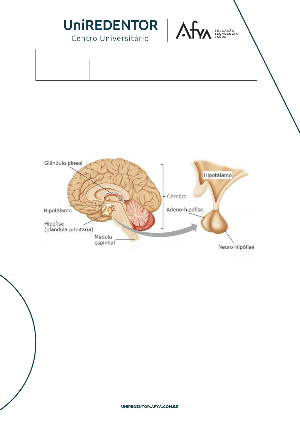 Tarefa de TIC Nome: Arthur Benfeita Tema da Semana: Hipófise Data: 10/09/2022 RESPOSTA: A hipófise será dividida em duas porções, na parte anterior fica a parte da adeno hipófise, que é ligada ao hipotálamo pela veia porta, já na parte posterior localiza-se a neuro hipófise, diferente da adeno hipófise ela se comunica com o hipotálamo por meio de neurotransmissor. Suas diferenças vão além dessa comparação, outra desigualdade delas é que somente a adeno hipófise produz hormônios e somente a neuro hipófise armazena hormônios, porém uma semelhança entre elas é que as duas secretam os hormônios. Figura 1. Anatomia hipotálamo e hipófise. Fonte: Sanarmed (https://www.sanarmed.com/hipofise-e- hipotalam). Quando falamos de adeno hipófise, citamos 7 tipos de hormônios que são secretados por ela, sendo elas: • GH - Hormônio que é responsável pelo crescimento. • TSH - Hormônio estimulante da tireoide. • FSH e LH - Dois hormônios sexuais, sendo o FSH folículo estimulante e o LH luteinizante. • ACTH - Este hormônio atuará no córtex suprarrenal. • PRL - Hormônio atuante na produção de leite. • MSH – Será responsável pela pigmentação da pele de acordo com a genética. Figura 2. Hormônios secretados pela hipófise. Fonte Brasil Escola (https://brasilescola.uol.com.br/biologia/hipofise.htm). O hipotálamo faz parte do sistema nervoso, enquanto a hipófise compõe o sistema endócrino. O sistema nervoso capta informações do meio externo e “fornece” essas informações ao sistema endócrino, que por sua vez trabalha secretando hormônios, a fim de manter a homeostase, isto é, o equilíbrio interno. A interação com a neuro-hipofise se dá por axônios que partem do hipotálamo e se estendem até o lobo posterior da hipófise. São dois os axônios que chegam à hipófise e trazem o mesmo número de hormônios. Já a interação do hipotálamo com a adeno hipófise é diferente. O lobo anterior da glândula realmente produz hormônios. A conexão se dá pela circulação sanguínea. Há uma rede de capilares que levam os hormônios liberadores produzidos pelo hipotálamo até o lobo anterior da hipófise. https://brasilescola.uol.com.br/biologia/hipofise.htm Figura 3. Comunicação entre hipófise e hipotálamo. Fonte: MedicinaNET (https://www.medicinanet.com.br/m/conteudos/acpmedicine/5680/hipofise_%E2%80%93_shlomo_melm ed.htm) REFERÊNCIAS 1º GUYTON, A.C.; HALL, J.E. Tratado de Fisiologia Médica. 12. Ed, p. 941-954. 2º Eixo hipotálamo-hipofisário: conexão perfeita entre sistema nervoso e sistema endócrino / Blog Jaleko 3º CANALI, Enrico Streliaev; KRUEL, Luiz Fernando Martins. Respostas hormonais ao exercício. Rev paul educ fís, v. 15, n. 2, p. 141-53, 2001. https://www.medicinanet.com.br/m/conteudos/acpmedicine/5680/hipofise_%E2%80%93_shlomo_melmed.htm https://www.medicinanet.com.br/m/conteudos/acpmedicine/5680/hipofise_%E2%80%93_shlomo_melmed.htm https://blog.jaleko.com.br/eixo-hipotalamo-hipofisario-conexao-perfeita-entre-sistema-nervoso-e-sistema-endocrino/#:~:text=As%20duas%20por%C3%A7%C3%B5es%20da%20hip%C3%B3fise,(libera%20para%20o%20organismo). https://blog.jaleko.com.br/eixo-hipotalamo-hipofisario-conexao-perfeita-entre-sistema-nervoso-e-sistema-endocrino/#:~:text=As%20duas%20por%C3%A7%C3%B5es%20da%20hip%C3%B3fise,(libera%20para%20o%20organismo).