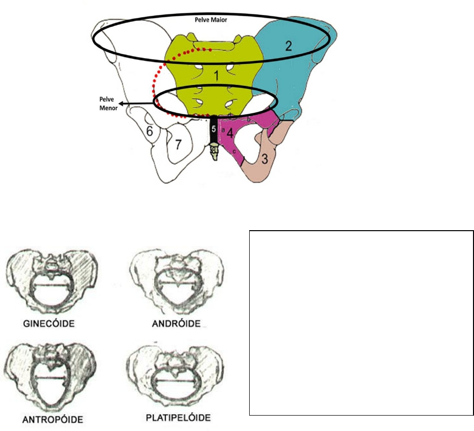 ANATOMIA FUNCIONAL DA PELVE Anel ósseo composto por ossos do quadril(ílio, ísquios e pubis), sacro e cóccix; Função da pelve: Participa ativamente na transferência do peso corpóreo para os membros inferiores; Proteção dos órgãos pélvicos; Ponto de fixação para músculos do períneo e membros inferiores. Pelve maior (falsa) Corresponde a região superior da pelve. Também conhecida como cavidade abdominopélvica. Pelve menor (verdadeira) Obstétrica Corresponde a porção situada abaixo do plano oblíquo. Abriga os órgãos do aparelho urogenitais e porção terminal do sistema digestório. Tipos de pelve: Ginecóide – redonda = tipo mais comum, 43% das mulheres Andróide – forma de coração = presente na maioria dos homens Antropóide – ovalada = comum em mulheres negras 40,5% e brancas 23,4% Plantipelóide – achatada = forma mais rara Diferenças sexuais da pelve Estruturas Masculina Feminina Mais incl. anterior Inserções musculares Espessas e pesadas Finas e leves Pelve maior Bem marcada Pouco marcada Pelve menor Profunda Rasa Abertura superior Estreita e profunda oval Ampla e rasa arredondada Cavidade Afunilada Cilíndrica Acetábulos Ovais Triangulares Osso sacro Mais saliente Menos saliente Fossas ilíacas Mais acentuadas Menos acentuadas Articulações da pelve Articulação Lombossacral Articulação Sacrilíaca Articulação Sacrococcígea Articulação Interpúbica Ligamentos da pelve Lig. Íliolombar Ligamento sacrococcígeo Anterior e posterior Ligamento sacrilíaco Ligamento interósseo Ligamento Sacro espinhoso Ligamento Sacrotuberal Inervação Realizada principalmente pelo nervo sacral, coccígeo e por componentes pélvicos da parte autonômica do sistema nervoso. Tronco lombossacral ( L3-L4) Nervos sacrais* Plexo Sacral (isquiático; Pudendo; Obturário; glúteo sup. e inf.) Plexo coccígeo (coccígeo e n.anococcígeo) Inervação autonômica Plexo hipogástrico superior: Constituídos pelos nervo hipogástricodireito e esquerdo. Situa-se anteriormente à vértebra L5, entre o promontório do sacro e a bifurcação da aorta. Responsáveis pela inervação de órgãos do abdômen inferior e da região pélvica. Plexo hipogástrico inferior: (direito e esquerdo) forma o plexo pélvico, contém fibras simpáticas e parassimpáticas N.esplânico pélvico (S3-S4) + n. hipogástrico (pélvico) inferiores formam o PLEXO PÉLVICO. Músculos da parede anterior • Psoas maior • Psoas menor • Ilíaco Músculos da parede posterior Glúteo máximoQuadrado lombar Glúteo médio Glúteo mínimo Piriforme Obturador interno Quadrado femoral Assoalho Pélvico: Conjunto ligamentos, nervos, músculos e fáscias situados na porção baixa da pelve cuja função é proteger, sustentar e dar suporte aos órgãos da cavidade pélvica. Musculatura Superficial Diafragma Urogenital (bulbo esponjoso; isquiocavernoso; transverso superficial do períneo; transverso profundo do períneo) Diafragma Anal (esfíncter anal externo) Musculatura Profunda Diafragma Pélvico Músculo Levantador do ânus (Pubococcígeo; Íliococcígeo; Puborretal) Músculo Isquiococcígeo