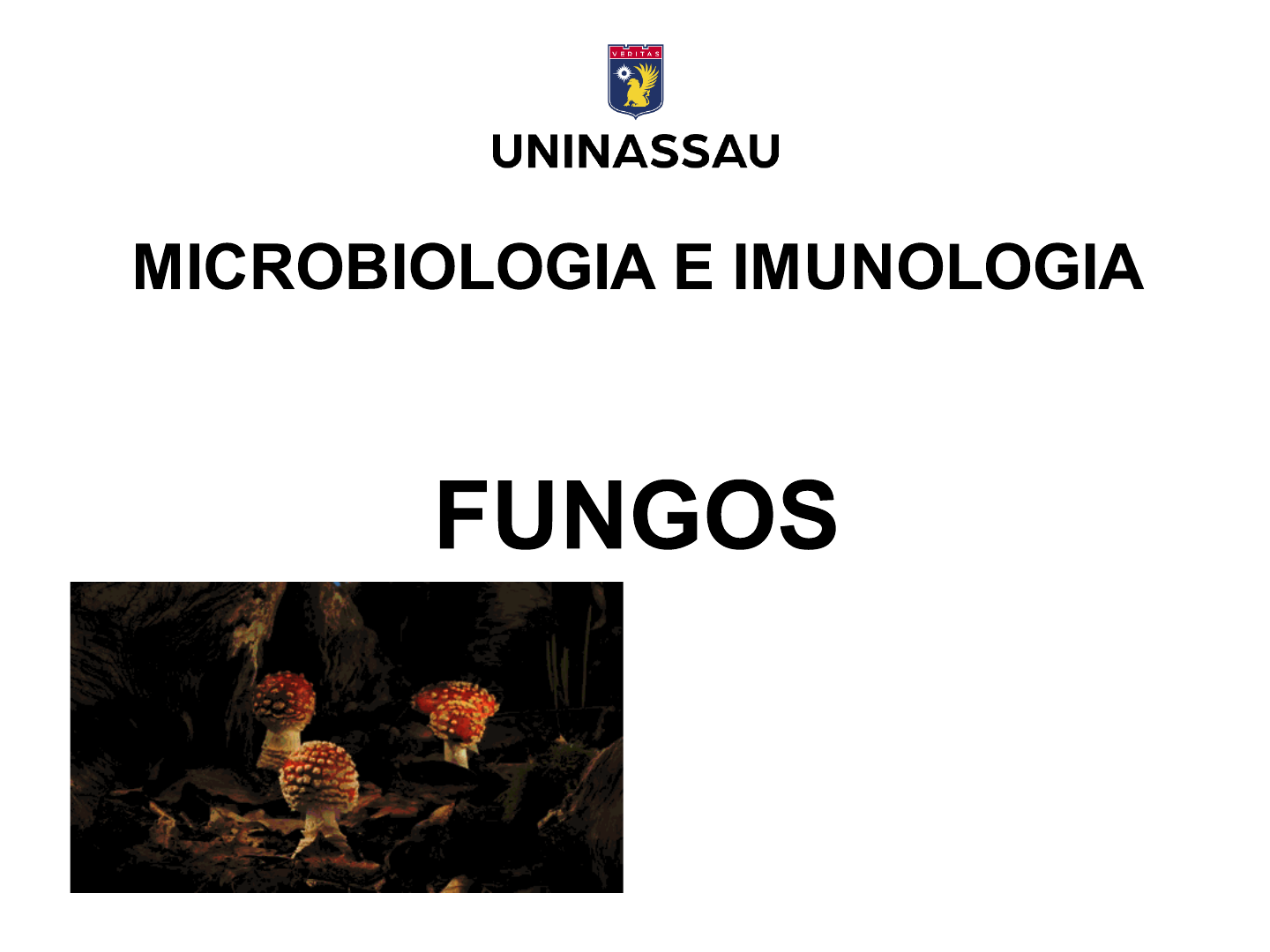 MICROBIOLOGIA E IMUNOLOGIA FUNGOS Prof. Antônio Sérgio Jr. FUNGOS • Durante muito tempo, os fungos foram classificados como vegetais; • 1969: Reino Fungi; • Atualmente: Domínio Eukarya; • Mais de 600 mil espécies catalogadas; Principais características que os diferenciam: - Não sintetizam clorofila; - Não possuem celulose em sua parede celular (exceto: alguns fungos aquáticos); - Não armazenam amido como substância de reserva. FUNGOS FUNGOS FUNGOS FUNGOS Características gerais - Micologia: Mykes: cogumelos; Logos: estudo; - Eucariontes; - Ubíquos (locais úmidos, com matéria orgânica); - Unicelulares ou Pluricelulares; - Microscópicos ou macroscópicos. FUNGOS Características gerais - Nutrição: heterotróficos (absorção – enzimas extracelulares) Enzimas Substrato Moléculas absorvidas pelas hifas Hifas secretam enzimas digestivas FUNGOS Características gerais - Aeróbios ou anaeróbios facultativos; - Reprodução: sexuada ou assexuada; - Crescem bem à temperatura ambiente e em meios ácidos. FUNGOS Bactérias ≠ Fungos - Células eucarióticas; - Presença de esteroides em suas membranas celulares; - Parede celular: glucanas, mananas, quitina; - Esporos reprodutivos sexuais e assexuais; - Metabolismo: heterotrófico; - Aeróbios, anaeróbios facultativos; - Células procarióticas; - Ausência de esteroides em suas membranas celulares; - Parede celular: peptideoglicano; - Endosporos (não para reprodução); - Metabolismo: heterotrófico ou autotrófico/fotoautrófico; - Aeróbios, anaeróbios facultativos, aeróbicos; FUNGOS Importância FUNGOS Importância FUNGOS Importância • Assexuada: - Brotamento. - Fragmentação. - Esporulação. FUNGOS Reprodução Esporos fúngicos: - Bastante resistentes e não promovem aumento populacional; - Esporos assexuais: produzidos pelas hifas, por mitose (não garante diversidade genética); - Esporos sexuais: fusão dos núcleos das células de duas linhagens da mesma espécie; FUNGOS Reprodução FUNGOS Reprodução • Sexuada: esporos sexuais. Ocorre em três etapas: - Plasmogamia. - Cariogamia. - Meiose. FUNGOS Reprodução MEIOSE PLASMOGAMIA CARIOGAMIA FUNGOS Reprodução FUNGOS • Tipos morfológicos microscópicos de fungos: Fungos filamentosos • Pluricelulares • Hifas: estruturas tubulares e ramificadas; • Micélio: conjunto de hifas; Exemplos: FUNGOS Fungos filamentosos FUNGOS Leveduras - Células arredondadas / ovais; - Reprodução: sem intervenção de gametas (assexuada) através de um processo chamado brotamento; - Algumas espécies podem formar pseudo- hifas (após vários brotamentos, as células permanecem conectadas); Rhodotorula Paracoccidioides brasiliensis 37 ºC 23 ºC Obs.: Fungos dimórficos: dependendo das condições de crescimento, podem se apresentar das duas formas FUNGOS FUNGOS FUNGOS Candida albicans • Macromorfologia: características macroscópicas (colônias); • Micromorfologia: características microscópicas; - Estas características variam de acordo com as condições (meio de cultura, temperatura, atmosfera, etc.) em que o fungo é cultivado; - Úteis para o processo de identificação; FUNGOS Morfologia FUNGOS Macromorfologia: fungos filamentosos FUNGOS Micromorfologia: fungos filamentosos Apocítica (Septada) Cenocítica (Asseptada) Colônias de aspecto úmido, cremosa ou pastosa. Macromorfologia: leveduras FUNGOS - Unicelulares; - Esféricas, ovais ou elipsoides; Micromorfologia: leveduras FUNGOS Pseudo-hifas: leveduras FUNGOS Classificação FUNGOS Bolor dos pães e frutas (Mucor) Classificação FUNGOS Trufa Penicillium (penicilina) Classificação FUNGOS Saccharomyces (levedura) Classificação FUNGOS Orelha de pau Classificação FUNGOS Cogumelo Classificação FUNGOS Candida (sapinho) FUNGOS • Fermentação: Importância FUNGOS • Fermentação: Importância FUNGOS • Micologia médica: Importância - Microbiota normal: Malassezia spp. e Candida spp. - Doenças: 1) Micoses: doenças na pele; 2) Intoxicações (micotoxinas); 3) Hipersensibilidade (alergias); FUNGOS • Causadores de doenças: Importância - Patógenos primários: fatores de virulência que rompem ativamente as defesas do hospedeiro. Ex.: Blastomyces dermatitidis e Paracoccidioides brasiliensis. - Patógenos oportunistas: causam infecção quando ocorrem lesões nas barreiras protetoras (pele e membranas mucosas) ou quando há falhas no sistema imune do hospedeiro. Ex.: Candida spp., Cryptococcus spp. e Aspergillus spp. FUNGOS Importância Candida albicans: Candidíase→Micose • Esse fungo está semprepresente no organismo. Queda de imunidade, higiene pessoal, uso de antibióticos e corticoides→ 3 a 4 dias após o contágio ou no período pré-menstrual. Slide 1 Slide 2 Slide 3 Slide 4 Slide 5 Slide 6 Slide 7 Slide 8 Slide 9 Slide 10 Slide 11 Slide 12 Slide 13 Slide 14 Slide 15 Slide 16 Slide 17 Slide 18 Slide 19 Slide 20 Slide 21 Slide 22 Slide 23 Slide 24 Slide 25 Slide 26 Slide 27 Slide 28 Slide 29 Slide 30 Slide 31 Slide 32 Slide 33 Slide 34 Slide 35 Slide 36 Slide 37 Slide 38 Slide 39 Slide 40 Slide 41