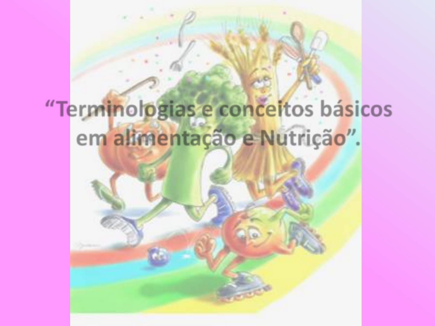 “Terminologias e conceitos básicos em alimentação e Nutrição”. Profª Patrícia Ceolin NUTRIÇÃO??? A nutrição é a ciência que estuda a composição dos alimentos e as necessidades nutricionais do indivíduo, em diferentes estados de saúde e doenças (Secretaria do Estado de Saúde, Distrito Federal). Nutricionista??? • O nutricionista é um profissional de saúde; • O nutricionista pode assumir vários significados; • Com formação generalista, humanística e crítica, capacitado a atuar. Visando a segurança alimentar e a atenção dietética, em todas as áreas do conhecimento sendo fundamentais promoção, manutenção e recuperação da saúde, prevenção de doenças de indivíduos ou grupos populacionais. Contribuindo para a melhoria da qualidade de vida, pautado em princípios éticos, com reflexão sobre a realidade econômica, política, social e cultural (Rosane Maria Nascimento da Silva – Presidente CFN. Nutricionista: ponto de vista: quem é o nutricionista? Saúde em Movimento). O Nutricionista é o profissional que deve atender aos princípios da Ciência da Nutrição, tendo como função contribuir para a saúde dos indivíduos e da coletividade. Cabe a ele a produção do conhecimento sobre a Alimentação e Nutrição nas suas diversas áreas de atuação profissional, devendo sempre buscar aperfeiçoamento técnico científico, pautando-se nos princípios éticos. (Resolução CFN nº334/04) Nutrir??? ALIMENTAÇÃO: – Depende de cada indivíduo, ou seja, é um ato voluntário e consciente e é através deste ato que o ser humano fornece alimento para o seu organismo. NUTRIÇÃO: – A nutrição é um processo involuntário, se inicia depois que os alimentos entram no organismo e são transformados em nutrientes. – Nutrientes: ??? Termos técnicos • ALIMENTO: toda substância que, ingerida por um ser vivo, o alimenta ou nutre. (Aurélio Buarque de Holanda Ferreira, 2006). “Substância que, introduzida no organismo (via oral, enteral ou parenteral) preenche a função de Nutrição” (ORNELLAS, 2001). • NUTRIENTES: são substâncias que estão inseridas nos alimentos e têm funções variadas no organismo: Esses nutrientes se dividem em: 1. Essenciais: organismo não consegue sintetizar devendo estar presentes na dieta. 2. Condicionalmente essenciais: o corpo normalmente produz durante o metabolismo, mas que em situações especiais o organismo não o produz ou o faz em quantidade insuficiente. 3. Nutrientes Limitantes: dieteticamente indispensáveis e que aparecem em concentrações e proporções abaixo do necessário para que um determinado alimento manifeste elevado valor biológico. 4. Nutrientes biologicamente disponíveis: frações ou partes de nutrientes que o organismo não consegue utilizar no seu metabolismo. • DIETA: conjunto de alimentos que uma pessoa consome diariamente com as substâncias nutritivas (nutrientes). • PRESCRIÇÃO DIETÉTICA: registro formal da conduta dietética estabelecida pelo nutricionista, com base no diagnóstico nutricional, envolvendo características com Valor Calórico Total (VCT), consistência e fracionamento. • PRESCRIÇÃO DIETOTERÁPICA: estuda as regras e normas a serem observadas na dieta de uma pessoa enferma. É a prescrição de uma dieta associada a uma patologia, apresentando, além das características da prescrição dietética, os cálculos dos nutrientes. • Caloria: fonte de energia, valor energético dos alimentos. • Refeição: parte de uma dieta. • Cardápio: listagem das refeições e suas composições. • Porção: quantidade de alimento pronto. • Percapita: quantidade de alimento para 1 pessoa. • Anamnese alimentar: o que e o quanto comeu ao longo de um período. • Avaliação nutricional: avaliação do estado nutricional de um indivíduo. • Obesidade: doença caracterizada pelo excesso de peso. • Desnutrição: doença caracterizada pela baixa ingestão calórica. Alimentação equilibrada É composta por todos os grupos de alimentos em quantidades adequadas, capaz de fornecer a quantidade suficiente de nutrientes para o bom funcionamento do nosso corpo e mente, mantendo nossa saúde. Fases da nutrição • 1. Alimentação • 2. Digestão • 3. Absorção • 4. Metabolismo • . Anabolismo • · Catabolismo • · Excreção Alimentação Inicia-se a partir do momento da seleção, obtenção, preparo, ingestão e absorção. Voluntária compreende desde a escolha, preparo e ingestão dos alimentos. Involuntária inclui as fases de digestão e absorção dos nutrientes pelo trato intestinal Alimentação DIGESTÃO É a ação que os alimentos sofrem pelas enzimas, através do processo denominado hidrólise. ABSORÇÃO Processo pelo qual os alimentos hidrolisados se transformam em substâncias menores para serem aproveitadas pelo organismo. O órgão responsável é o intestino delgado. SISTEMA DIGESTÓRIO METABOLISMO É o processo de transformações que os nutrientes sofrem desde a absorção, até que sejam utilizados, armazenados ou eliminados do organismo. Metabolismo Inicia-se a partir da absorção dos nutrientes até o momento em que o organismo o utiliza como fonte de energia para formação celular ou reserva. ANABOLISMO É o processo de síntese de material celular para o crescimento, manutenção e reparo dos tecidos do corpo. CATABOLISMO É a quebra de tecidos em constituintes mais simples para produção de energia ou para excreção. Excreção É o processo de eliminação dos produtos, utilizados ou não, através do pulmão, pele, rins e tubo digestivo. “Todos fecham seus olhos quando morrem, mas nem todos enxergam quando estão vivos”. Augusto Cury Obrigada