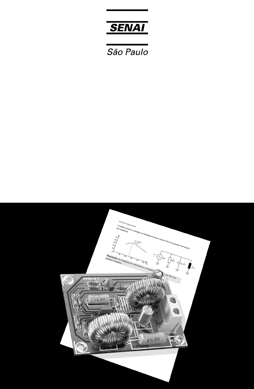 Aprendizagem Industrial Eletricista de Manutenção Análise de circuitos elétricos Prática Análise de circuitos elétricos - Prática SENAI-SP - INTRANET Análise de circuitos elétricos � Prática SENAI-SP, 2005 2a Edição atualizada. Trabalho atualizado e editorado por Meios Educacionais e Escola SENAI �Roberto Simonsen� - CFP1.01 da Gerência de Educação da Diretoria Técnica do SENAI-SP, para o curso Eletricista de manutenção. Revisão de conteúdos Antônio Hernandes Gonçalves (CFP1.01) Paulo Dirceu Bonami Briotto (CFP 1.01) Demércio Claudinei Lopes (CFP 1.01) 1a Edição elaborada, 2000. Trabalho elaborado pela Unidade de Conhecimento Educacional do Departamento Regional de São Paulo. Coordenação Célio Torrecilha Elaboração Airton Almeida de Moraes Regina Célia Roland Novaes Conteúdo técnico Airton Almeida de Moraes Júlio César Caetano Ilustrações José Joaquim Pecegueiro José Luciano de Souza Filho Capa José Joaquim Pecegueiro SENAI Serviço Nacional de Aprendizagem Industrial Departamento Regional de São Paulo Av. Paulista, 1313 - Cerqueira César São Paulo � SP CEP 01311-923 Telefone Telefax SENAI on-line (0XX11) 3146-7000 (0XX11) 3146-7230 0800-55-1000 E-mail Home page senai@sp.senai.br http://www.sp.senai.br Análise de circuitos elétricos - Prática SENAI-SP - INTRANET Sumário Apresentação 5 Utilização do multímetro analógico 7 Medir resistência equivalente de circuitos mistos 15 Medir resistência equivalente de associações estrela-triângulo 19 Ensaiar divisores de tensão 23 Comprovar as leis de Kirchhoff 29 Comprovar o teorema de Thévenin 39 Comprovar o teorema da superposição de efeitos 45 Utilização da ponte RLC 51 Verificar o funcionamento de circuitos RC série 53 Verificar o funcionamento de circuitos RL série 59 Verificar o funcionamento de circuitos RLC série 63 Referências bibliográficas 67 Análise de circuitos elétricos - Prática SENAI-SP - INTRANET Análise de circuitos elétricos - Prática SENAI-SP - INTRANET 5 Apresentação Caro Aluno; O Curso de Aprendizagem Industrial do SENAI na área da Eletroeletrônica continua no segundo semestre com os estudos teóricos sobre análise de circuitos. O principal objetivo deste estudo é fazer você conhecer não só os princípios e as leis que comandam o funcionamento dos circuitos eletroeletrônicos, mas também as características de componentes e instrumentos de medição usados no dia-a-dia do profissional dessa área. O presente volume, Análise de Circuitos Elétricos: Prática complementa, com informações tecnológicas sobre instrumentos e componentes, os conceitos teóricos que você já estudou e apresenta ensaios que têm o objetivo de comprovar experimentalmente os conceitos e aplicar na prática todos os conteúdos estudados nas aulas teóricas. Trata-se de um material de referência preparado com todo o cuidado para ajudá-lo em sua caminhada rumo ao sucesso profissional. Eletroeletrônica Tecnologia aplicada e ensaios6 Análise de circuitos elétricos - Prática SENAI-SP - INTRANET 7 Utilização do multímetro analógico Neste ensaio, você vai usar um multímetro analógico. Para isso, vai inicialmente estudar os manuais dos instrumentos. Em seguida, usando o multímetro, vai medir valores ôhmicos de resistências elétricas, tensões e correntes elétricas. Equipamentos • Multímetro analógico; • Fonte variável 0~30 VDC; • Varivolt. Material necessário • Manual do fabricante do multímetro e do volt-amperímetro alicate; • Matriz de contatos; • Cabos conectores; • Resistores diversos. Após ler o ensaio, complete a lista de materiais necessários, de acordo com os passos do item Procedimento. Consulte catálogos de fabricantes de resistores elétricos e a norma NBR 5311. Análise de circuitos elétricos - Prática SENAI-SP - INTRANET8 Procedimento A – Medição de Resistência 1. Estude o manual de instruções de uso do multímetro, principalmente na parte referente à utilização como ohmímetro. 2. Faça um esboço do painel frontal do multímetro e identifique a escala de funções, as posições da chave seletora e os bornes referentes ao ohmímetro. 3. Quantas e quais são as posições da chave seletora correspondente ao ohmímetro? 4. Prepare o multímetro para a medição de resistência: • Ponta de prova vermelha no borne + ou volt/ΩΩΩΩ. • Ponta de prova preta no borne – ou com. 5. Selecione a chave seletora de funções do multímetro para medição de resistência elétrica. Análise de circuitos elétricos - Prática SENAI-SP - INTRANET 9 6. Responda: a. Você conhece o valor de resistência do material dos itens fornecidos? ( ) sim ( ) não b. Qual é a posição em que, preferencialmente, deve ser ajustada a chave seletora? 7. Selecione a posição adequada da chave seletora para medir a resistência de cada item relacionado na tabela do passo 8. 8. Conecte as pontas de prova nas extremidades de cada um dos itens fornecidos e anote os valores medidos na tabela a seguir. Itens fornecidos Valor medido Ferro de soldar Lâmpada incandescente Alto-falante Reostato Análise de circuitos elétricos - Prática SENAI-SP - INTRANET10 9. Registre as cores dos resistores fornecidos por seu professor e faça a leitura do valor ôhmico e percentual de tolerância utilizando a tabela a seguir. Se o resistor tiver menos cores que a tabela, ignore as colunas finais que ficarem sem preenchimento. Resistor 1ª cor 2ª cor 3ª cor 4ª cor 5ª cor 6ª cor Valor codificado (nominal) Vn Resistor 1 Resistor 2 Resistor 3 Resistor 4 Resistor 5 Resistor 6 Resistor 7 Resistor 8 Resistor 9 Resistor 10 10 Utilizando o multímetro analógico, meça os valores dos resistores e registre na coluna "valor medido" (Vm) da tabela a seguir. Anote também os valores codificados (Vn) encontrados no passo 9 e calcule a porcentagem de tolerância real, ou desvio percentual (∆R%) utilizando a fórmula: ( ) Vn 100 x Vm - Vn = R%∆ Resis