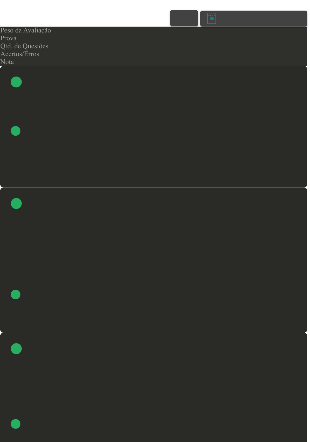 Prova Impressa GABARITO | Avaliação I - Individual (Cod.:822013) Peso da Avaliação 1,50 Prova 62190803 Qtd. de Questões 10 Acertos/Erros 7/3 Nota 7,00 Na era da industrialização clássica, a função dos departamentos de pessoal eram muito diferentes das funções dos de hoje. A respeito disso, assinale a alternativa CORRETA: A Protocolar pedidos. B Cumprir exigências legais. C Estabelecer normas. D Prestar assistência. O trabalho do gestor está vinculado ao trabalho de sua equipe. É no relacionamento com sua equipe que o gestor fará com que a empresa funcione de maneira organizada, e a área de RH vai assessorar o gestor em suas necessidades e prover treinamento, comunicação institucional, programas e políticas que levem o quadro a entrar em real sintonia com as demandas estratégicas da organização. Qual é o papel do gestor nesse contexto? A Observar, discordar, negociar, pactuar, ouvir e isolar. B Interferir, concordar, negociar, pactuar, falar e servir. C Observar, conversar, negociar, pactuar, ouvir e interagir. D Observar, conversar, negociar, pactuar, ouvir e se isolar. Em determinada Era o evento mais significativo relaciona-se com a hegemonia norte-americana, mas, sobretudo com o desenvolvimento tecnológico no campo da informação (globalização). Assinale a alternativa CORRETA que indica qual foi essa Era: A Era Tradicional. B Era Moderna. C Era da Informação. VOLTAR A+ Alterar modo de visualização 1 2 3 D Era da Automação. A Gestão de Pessoas abrange um leque de atividades que podem ser agrupadas em categorias amplas denominadas de sistemas. Sistema ainda pode ser conceituado como como sendo um conjunto de elementos unidos por alguma forma de interação ou interdependência. A respeito dos sistemas de capacitação ou de desenvolvimento, assinale a alternativa CORRETA que indica a que se referem: A Às atividades realizadoras com a finalidade de criar condições ambientais e psicológicas satisfatórias para a atuação das pessoas. B Às atividades realizadas com a finalidade de incluir novas pessoas na empresa, abrangendo, entre outras atividades, recrutamento e seleção. C Às atividades destinadas a capacitar e desenvolver profissionalmente as pessoas que atuam nas organizações. D Às atividades relacionadas ao desenho das atividades que as pessoas irão realizar na empresa, bem como para orientar e acompanhar seu desempenho. Dentre os principais desafios colocados às organizações no século XXI estão os avanços tecnológicos, a competitividade, o redirecionamento do processo de gestão de pessoas e também para fornecedores e consumidores, downsizing, autogerenciamento das equipes, virtualização da empresa, cultura organizacional e terceirização. Sobre as principais prioridades das organizações, classifique V para as sentenças verdadeiras e F para as falsas: ( ) Ajudar a organização a reinventar-se, para competir de forma mais eficaz. ( ) Reinventar a função recursos humanos e centralizada mais no cliente. ( ) Atrair e desenvolver os líderes do século XXI. ( ) Contribuir para contenção de custos e esforços de gestão. Assinale a alternativa que apresenta a sequência CORRETA: A V – V – V – V. B F – V – V – F. C F – F – F – F. D V – F – V – F. As políticas de Recursos Humanos melhoram as relações entre empregador e empregados. Ações como palestras, seminários, dinâmicas de grupos, encontro com funcionários, publicações periódicas e campanhas internas são ações que devem ser executadas e continuadas. Assinale a alternativa CORRETA que indica qual é o objetivo do departamento de recursos humanos: A Criar oportunidades para as pessoas, mas não podem crescer e evoluir na empresa. B Não criar oportunidades, mas permite deixar as pessoas crescerem na empresa. 4 5 6 C Não criar oportunidades para as pessoas crescerem na empresa. D Criar oportunidades para as pessoas crescerem na empresa. Determinado instrumento é o mais adequado para obtenção de dados em função de sua flexibilidade, porém requer muito tempo para sua aplicação e é dispendiosa do ponto de vista financeiro, além de ser muito afetada pela subjetividade. A entrevista deve ser sistematicamente planejada, submetida a controle e avaliação, e aponta alguns cuidados a serem tomados. Diante disso, assinale a alternativa CORRETA: A Elaboração de roteiro: convém selecionarmos previamente os candidatos com base no currículo, nas recomendações de pessoas, ou nos contatos que foram feitos por telefone. B Pré-seleção de candidatos: uma boa entrevista requer um local privado, que deve ser arejado e claro, com móveis dispostos para não deixar ninguém em desvantagem. C Definição de local: uma boa entrevista requer um local privado, que deve ser arejado e claro, com móveis dispostos para não deixar ninguém em desvantagem. Deve-se ainda evitar que mais de uma pessoa entreviste o mesmo candidato. D Definição de local: é preciso ter em mãos um roteiro do local, que indique o que perguntar para cada candidato, neste caso convém anotar informações que não foram fornecidas ou que deixaram lacunas. Os processos de agregar pessoas podem ser denominados processos de provisão ou de suprimento. Assinale a alternativa CORRETA que apresenta o que esses processos incluem: A Descrição do cargo e Serviços Sociais. B Recrutamento e Seleção de Pessoas. C Recrutamento e Demissão de Pessoas. D Remuneração e Alocação de Pessoas. Gestão de pessoas é a função gerencial que visa à cooperação das pessoas que atuam nas organizações para o alcance dos objetivos organizacionais. Que outros objetivos são visados? A Econômicos. B Sociais. C Individuais. D Empresariais. 7 8 9 Existe um processo na gestão de pessoas que incluei recrutamento e seleção de pessoas. Qual é esse processo? A Processos de recompensar pessoas. B Processos de agregar pessoas. C Processos de desenvolver pessoas. D Processos de aplicar 
