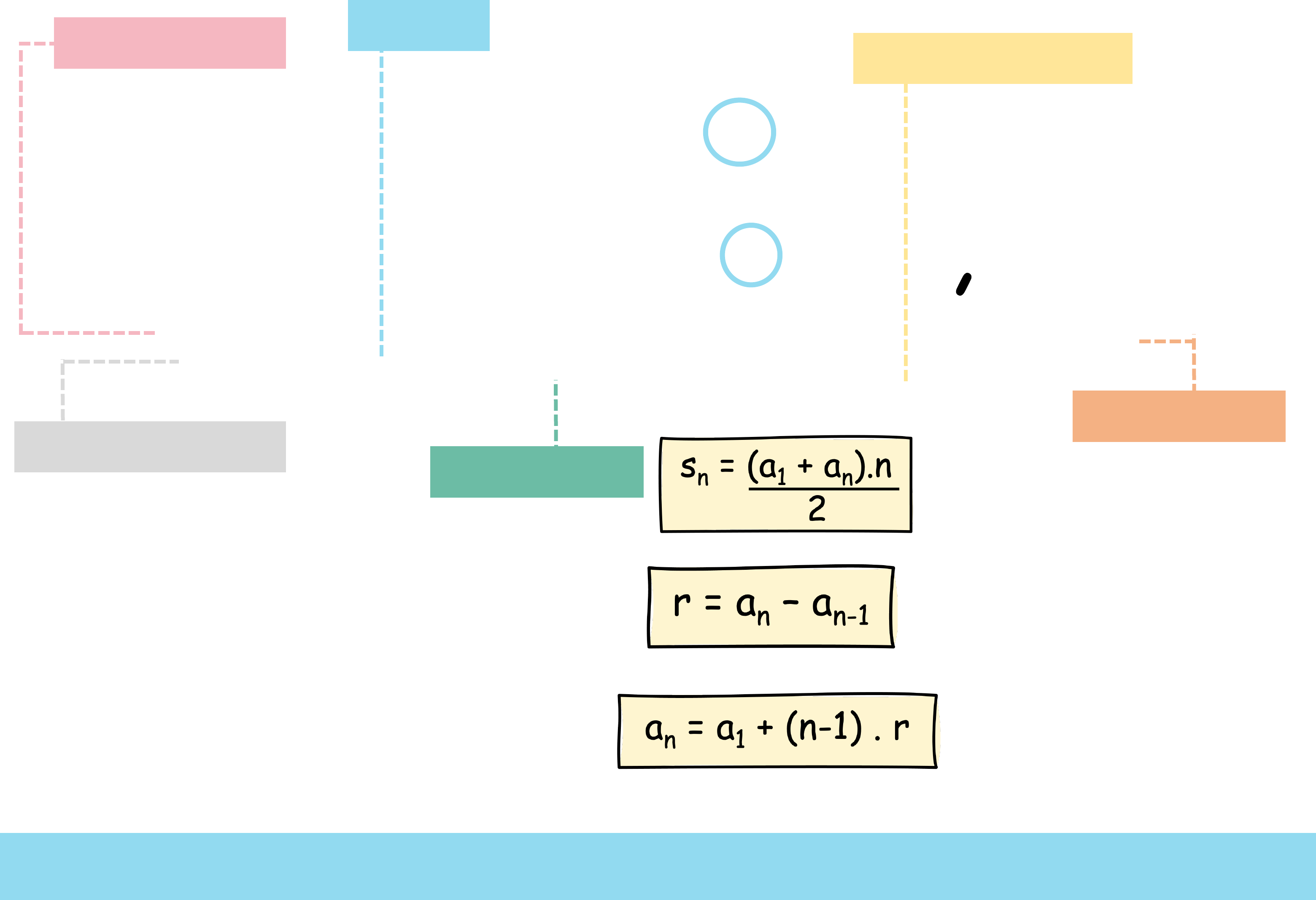 Fórmulas A Progressão Aritmética (P.A.) é uma sequência de números onde a diferença entre dois termos consecutivos é sempre a mesma. Tipos ~ Definição Progressao aritimetica Finita: Quando possui um último termo. Infinita: Quando não possui um último termo. (5,7,9,11,13,15) (10,20,30,40, ... ) Elementos a1 = Primeiro termo da p.a. an = Termo qualquer da p.a. r = Razão (é a diferença entre dois termos consecutivos) Constante Crescente Decrescente Quando a razão for igual a zero. Quando a razão for maior que zero. Quando a razão for menor que zero. Classificação Soma de todos os termos Razão Um termo qualquer Exemplo (26, 39, 52, 65, 78, 91, ...) Calcule o 8º termo da seguinte progressão aritmética: an = a1 + (n-1) . r a8 = 26 + (8-1) . 13 a8 = 26 + 7. 13 a8 = 26 + 91 a8 = 117 Número do slide 1