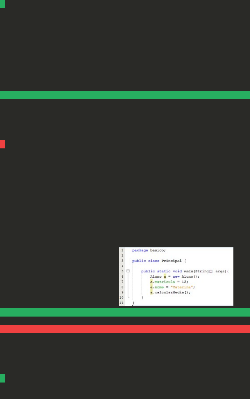 1No paradigma de orientação a objetos, uma classe é uma estrutura que abstrai um conjunto de objetos que possuem características em comum, e é composta, geralmente, por três elementos básicos: nome, atributos e métodos. Com relação aos atributos, assinale a alternativa CORRETA: A Os atributos de uma classe Java têm como objetivo armazenar os valores lógicos relacionados a ela própria. B Existe uma categoria especial de atributos que são chamados de construtores. C Os atributos definem o estado de um determinado objeto, enquanto ele está na memória do computador. D Também conhecidos como operações, os atributos descrevem as funcionalidades de uma determinada classe. 2A estrutura de uma classe na linguagem de programação Java comporta um nome, um conjunto de atributos, também conhecidos como o estado desta classe e um conjunto de métodos, também conhecidos como o comportamento desta classe. Considerando a estrutura da Classe Principal demonstrada na figura a seguir, classifique V para as sentenças verdadeiras e F para as falsas: ( ) A linha 1 define, através da palavra reservada "package", o que é conhecido como o ponto de entrada da aplicação. ( ) Já que o método "Aluno()" não possui parâmetros as linhas 7 a 9 geram erros de compilação. ( ) O método chamado main é quem torna uma classe executável, sendo que a sua existência em uma classe é opcional. ( ) Pode-se afirmar que o tipo de dados do atributo "nome", existente na classe aluno é do tipo alfanumérico. Assinale a alternativa que apresenta a sequência CORRETA: A F - F - V - V. B F - V - V - V. C V - F - F - V. D V - F - V - F. 3 Classe representa um conjunto de objetos com características afins. Sobre o exposto, assinale a alternativa CORRETA: A Uma classe pertence a um objeto quando os atributos de uma pode pertencer a outra. B Um objeto pode ser uma classe por ter atributos semelhantes. C Nenhuma das alternativas. D Uma classe de objetos descreve um grupo de objetos com propriedades (atributos) similares, comportamento (operações) similares, relacionamentos comuns com outros objetos e uma semântica comum. Por exemplo, Pessoa e Companhia são classes de objetos. 4 As linguagens orientadas a objetos tornaram-se mais populares apartir da década de 1990. Sobre o exposto, analise as sentenças a seguir. Assinale a alternativa CORRETA: I- As linguagens de programação possuem como carcterísticas permitir o fácil reuso do software. II- Uma das características das linguagens orientadas a objeto é a extensibilidade. III- Novas linguagens orientadas a objeto foram criadas para melhorar a produtividade dos desenvolvedores, tais como: Java, Simula, C++, etc. A As sentenças I, II e III estão corretas. B As afirmativas I e III estão corretas. C As sentenças I e II estão corretas. D As afirmativas II e III estão corretas. 5 Dentro da Orientação a Objetos, o conceito de classe e objeto é fundamental, sendo indispensável sua compreensão para que possamos fazer programas consistentes usando este tipo de tecnologia. Sobre as as alternativas que referem-se a classes, assinale a alternativa INCORRETA: A Fornecedor. B Arroz tio joão. C Cliente. D Produto. 6 A proteção de atributos e operações das classes faz com que estas se comuniquem com o meio externo por meio de suas interfaces. Que conceito é esse? A Herança. B Encapsulamento. C Polimorfismo. D Agregação. 7 A linguagem de programação Java possui dois tipos de exceção. Inclusive, uma delas obriga o tratamento de recursos externos à JVM, como, por exemplo: rede e disco. Sobre o nome desses dois tipos de exceções, assinale alternativa CORRETA: A Java Development Kit (JDK) e JIT. B Checked e Unchecked. C Java Runtime Environment (JRE) e o HotSpot. D Java SE e Java ME. 8Hotspot e Jit são as tecnologias que a Máquina Virtual Java (JVM) utiliza para aumentar o desempenho dos programas. Em máquinas virtuais modernas, certos trechos de código escritos em Java executam mais rápido do que códigos escritos em c. Com relação às estratégias de otimização adotadas pela JVM, analise as sentenças a seguir: I- A tecnologia Jit permite a compilação dinâmica de um código em tempo de execução, fazendo com que um programa possa ser otimizado mesmo após sua instalação. II- A tecnologia Jit atua sob total controle do desenvolvedor, que indica em seu código quais pontos devem ser otimizados. III- A tecnologia HotSpot procura por pontos que são executados repetidamente em sua aplicação. IV- O HotSpot atua diretamente no código fonte da aplicação, não trabalhando sobre bytecode após compilação. Agora, assinale a alternativa CORRETA: A As sentenças I e III estão corretas. B As sentenças III e IV estão corretas. C Somente a sentença IV está correta. D Somente a sentença II está correta. 9Diferentemente de outras linguagens, a plataforma Java utiliza o conceito de máquina virtual, garantindo que os programas desenvolvidos não necessitem conhecer os detalhes das chamadas de sistema ou as bibliotecas específicas do sistema operacional em questão. Com relação à JVM (Java Virtual Machine), classifique V para as sentenças verdadeiras e F para as falsas: ( ) Para garantir a velocidade na alocação de memória, a máquina virtual libera um canal direto entre a aplicação Java e a memória RAM do computador. ( ) A utilização de uma máquina virtual para execução dos programas garantem a independência de plataforma. ( ) A otimização de código realizada pela máquina virtual garante que os programas Java sejam executados de maneira mais rápida se comparada aos programas compilados para código nativo de uma determinada plataforma/sistema operacional. ( ) A escrita de código malicioso em Java é dificultada em função da segurança proveniente da máquina virtual, que valida toda e qualquer interação feita com o sistema operacional. Agora, assinale a alternativa que apresenta a sequência CORRETA: 