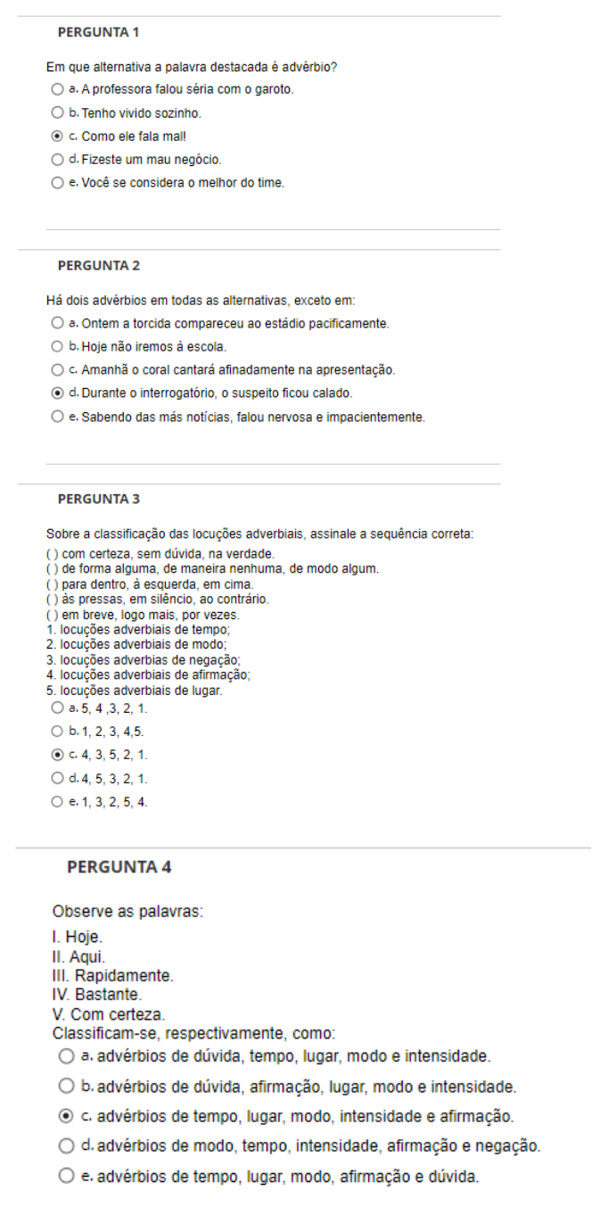 VERIFICAÇÃO DE CONHECIMENTO ADVÉRBIO