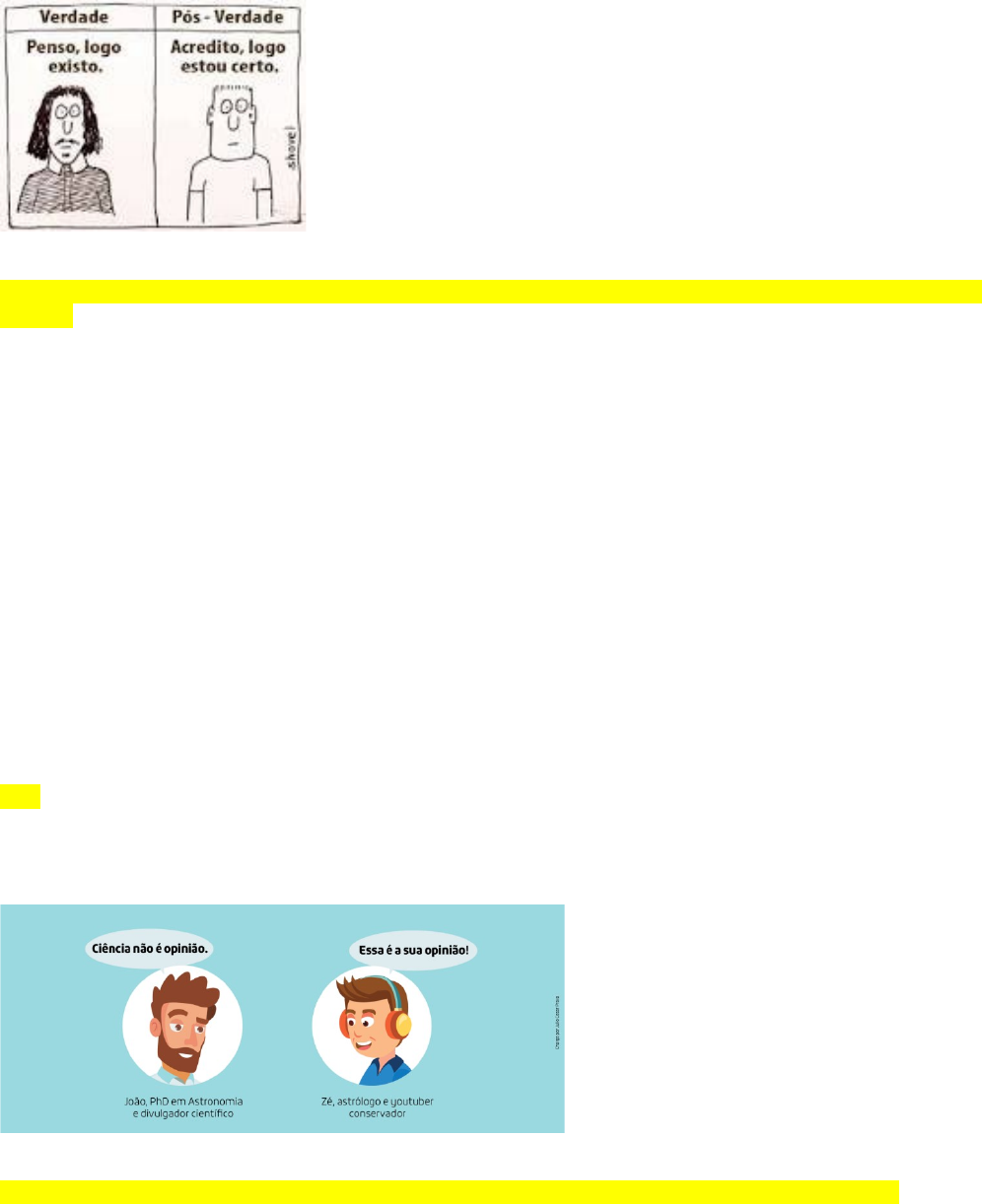 METODOLOGIA DO TRABALHO ACADÊMICO 1: Veja a charge a seguir: A respeito da charge, podemos afirmar que: A) Ela busca mostrar as diferenças entre o conhecimento com base na razão e o conhecimento com base nas crenças e nas opiniões. B) Ela busca evidenciar a subjetividade do pensamento racional. C) Ela pretende mostrar a lógica e a consistência do senso comum. D) Ela mostra que não há possibilidade de diálogo entre o conhecimento racional e o senso comum. E) Ela comprova que não há diferença alguma entre o conhecimento racional e o senso comum. 2: Leia o texto a seguir: Neste momento, vivenciamos uma corrida pelo desenvolvimento da cura da COVID-19 no Brasil e no mundo... Segundo o texto: I. A crise sanitária que estamos vivendo tem sido agravada pela crise pela qual passa a ciência, que não pode oferecer quaisquer soluções eficazes em relação a fenômenos da natureza. II. O fato de a ciência ainda não ter sido capaz de desenvolver vacinas e mecanismos de proteção contra o corona vírus comprova a dificuldade de se identificar o que é e o que não é ciência. III. Há atualmente uma disputa intensa pela informação, e a comunidade cientifica tem sido alvo de ataques de interesses de determinados grupos, interessados em desacredita-la e fragiliza-la diante da opinião publica. Está correto apenas o que se afirma em: A) I. B) II. C) III. D) I e II. E) II e III. 3: Analise a charge a seguir: A respeito da charge, podemos afirmar que: A) Ela mostra os conflitos existentes entre o contexto do senso comum e o contexto do conhecimento cientifico. B) Ela busca defender a ideia de que não há opiniões, mas somente as certezas produzidas pela ciência. C) Ela insinua que devem ser levadas em conta apenas as opiniões dos cientistas. D) Ela mostra que pessoas que fazem uso constante da internet não acreditam na ciência. E) Ela comprova que a internet não divulga conhecimento cientifico. 4: (UFSC 2017, com modificações) Um físico atuante em renomado laboratório nacional resolveu dedicar-se exclusivamente a certa pesquisa experimental sobre a qual não havia nenhum conhecimento teórico anterior. Motivado apenas por sua criatividade e imaginação, queria verificar os efeitos de descargas elétricas no crescimento médio das árvores de um tipo particular que havia no pátio da universidade. Seu experimento consistia na aplicação diária de duas descargas elétricas em um conjunto de três árvores. Após alguns meses, comparava o crescimento médio dessas árvores com o de outras que não haviam recebido as descargas. Seus colegas do laboratório não admitiam que a pesquisa continuasse e utilizaram os seguintes argumentos: A) A pesquisa não tinha validade cientifica alguma, já que não havia conhecimento teórico anterior sobre o assunto. B) O experimento só seria valido caso todas as arvores das universidades fossem objeto de investigação. C) A criatividade e a imaginação, embora importantes para a produção de conhecimento, não justificam o início de uma pesquisa. D) O método experimental não é adequado para a produção de conhecimento. E) O experimento só seria valido caso fosse realizado com arvore da mesma espécie, todas recebendo as mesmas descargas elétricas. 5: Leia o trecho a seguir. As universidades têm procurado coibir a prática do plágio por meio de uma adequada formação discente e docente e com a oferta de softwares que identificam coincidências de texto publicados na internet (LEME; SILVA, 2010). O trecho acima corresponde a: A) Uma citação direta, com dois autores inseridos. B) Uma citação direta, com dois autores não inseridos. C) Uma citação indireta, com dois autores inseridos. D) Uma citação indireta, com dois autores não inseridos. E) Uma paráfrase, sem autores inseridos. 6: As mídias sociais são responsáveis, em grande parte, pela disseminação de noticias falas e interpretações errôneas sobre o mundo que nos cerca (LIMA, 2002). O trecho acima corresponde a: A) Uma citação direta, com autor inserido. B) Uma citação direta, sem autor inserido C) Uma citação indireta, com autor inserido. D) Uma citação indireta, sem autor inserido. E) Uma paráfrase, com autor inserido. 7: Veja a charge a seguir: A respeito da charge, podemos afirmar que: A) Ela busca mostrar a superioridade espiritual do conhecimento religioso. B) Ela busca evidenciar a assertividade do conhecimento científico. C) Ela pretende mostrar que há diferenças entre o conhecimento científico e o conhecimento religioso sem, entretanto, realizar qualquer julgamento de valor em relação a eles. D) Ela mostra que não há possibilidade de diálogo entre o conhecimento científico e o conhecimento religioso. E) Ela comprova que não há diferença alguma entre o conhecimento científico e o conhecimento religioso. 8: Segundo Lima (2002), as mídias sociais são responsáveis, em grande parte, pela disseminação de notícias falsas e interpretações errôneas sobre o mundo que nos cerca. O trecho acima corresponde a: A) Uma citação direta, com autor inserido. B) Uma citação direta, sem autor inserido C) Uma citação indireta, com autor inserido. D) Uma citação indireta, sem autor inserido. E) Uma paráfrase, com autor inserido. 9: Veja a figura abaixo. A charge acima busca A) Mostrar como as normas ABNT não têm qualquer serventia para o aluno. B) Mostrar como as normas ABNT são utilizadas apenas por pesquisadores amadores, não profissionais. C) Mostrar como as normas ABNT têm apenas o objetivo de burocratizar o trabalho de produção acadêmica. D) Mostrar como as normas ABNT têm apenas o objetivo de tornar o trabalho acadêmico esteticamente adequado. E) Ironizar a dificuldade de os alunos utilizarem as normas ABNT. 10: 5: Leia o trecho a seguir. Segundo Leme e Silva (2010, p. 32), as universidades têm procurado coibir a prática do plágio por meio de uma adequada formação discente e docente e com a oferta de softwa