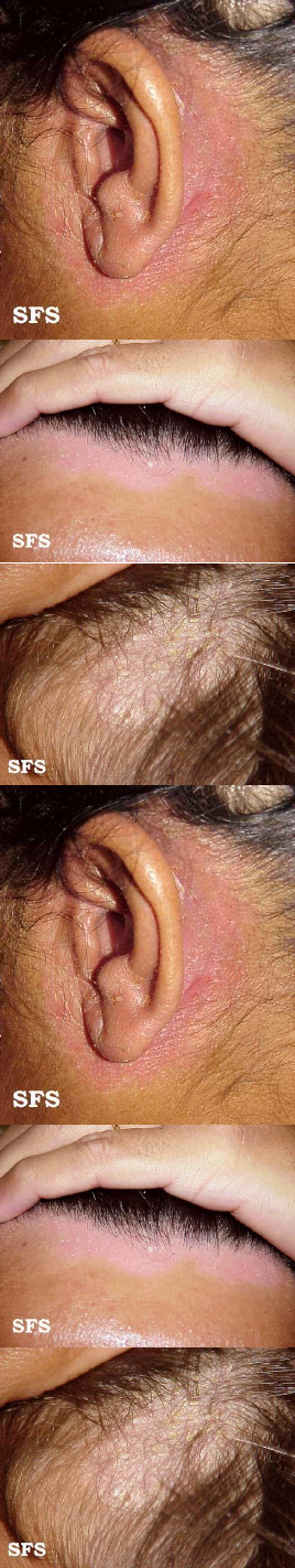 Dermatite seborreica O que é? É uma inflamação na pele que causa principalmente descamação e vermelhidão em algumas áreas da face, como sobrancelhas e cantos do nariz, couro cabeludo e orelhas. Apresenta caráter crônico, com períodos de melhora e piora dos sintomas. Causa: A causa não é totalmente conhecida. Apresenta componente genético. Pode ser desencadeada por agentes externos, como alergias, situações de fadiga ou estresse emocional, baixa temperatura, álcool, medicamentos e excesso de oleosidade. A presença do fungo Pityrosporum ovale também pode provocar a doença. A doença não é contagiosa e não é causada por falta de higiene. Sintomas oleosidade na pele e no couro cabeludo; escamas brancas que descamam – caspa; escamas amareladas que são oleosas e ardem; coceira, que pode piorar caso a área seja infectada pelo ato de “cutucar” a pele; leve vermelhidão na área; possível perda de cabelo. Tratamento - lavagens mais frequentes; - interrupção do uso de sprays, pomadas e géis para o cabelo; - uso de xampus que contenham ácido salicílico, alcatrão, selênio, enxofre, zinco e antifúngicos; - uso de cremes/pomadas também com antifúngicos e, eventualmente, com corticosteroide, dentre outros especificados pelo dermatologista.