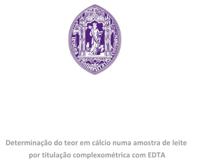 UNIVERSIDADE DE COIMBRA Faculdade de Farmácia Mestrado Integrado em Ciências Farmacêuticas Determinação do teor em cálcio numa amostra de leite por titulação complexométrica com EDTA Disciplina: Química Analítica Turma: PL8 Docente: Doutora Márcia Manaia Realizado por: Ana Salgadinho, Bárbara Vitória, Vitória Ramos 28 de março de 2023 1 Índice 1. Introdução ……………………………………………………………2 2. Objetivos ……………….…………………………….…………..…3 3. Fundamentação teórica …… ………………………………………..3 4. Resultados ……………………………………………………………5 5. Cálculos ……………………………………………………………6 6. Discussão dos resultados ………………………...…………………8 7. Conclusão …………………………………………………………..10 8. Respostas às perguntas extra- laboratoriais ………………...……11 9. Bibliografia / Netografia …. ………………………………..……..13 10. Anexos …………………………………………………………..…..14 2 1. Introdução Em muitas situações, para identificar a concentração de certas soluções, (soluções não padronizadas), recorre-se a outras soluções de concentração conhecida, realizando-se uma titulação. Existem, vários tipos de volumetria, tais como a volumetria de neutralização, a volumetria de precipitação e a volumetria de complexação. Neste trabalho, vamos recorrer à última mencionada. A volumetria de complexação, ou titulação complexométrica, envolve a formação de complexos que são estáveis e que quantificam os diferentes iões metálicos em solução. Estes formam-se através da titulação da solução a ser identificada com uma solução titulante (agente complexante), em que um ião metálico reage com um agente ligante. Um complexo é formado por um ião ou átomo central rodeado por outros iões ou moléculas (ligandos) com capacidade para lhes doar pares de eletrões (são bases de Lewis), formando ligações covalentes dativas. A maioria das titulações complexométricas fazem-se utilizando ligandos polidentados. O EDTA, ácido etilenodiaminotetracético, é um dos agentes complexantes mais usados em Química Analítica. Este é formado por quatro grupos carboxilo e dois grupos amina que vão doar pares de eletrões. Deste modo, é um ligante hexadentado, uma vez que pode ceder 6 pares de eletrões, formando 6 ligações com o catião metálico. A estequiometria dos seus complexos é de 1:1 com os catiões dos metais da Tabela Periódica, tendo constantes de formação muito elevadas. O EDTA é, ainda, considerado um ácido fraco e, por essa razão, encontra-se ionizado sob a forma de 7 espécies diferentes (depende do valor de pH em que se encontra). Ou seja, se soubermos o pH da solução também conseguimos descobrir a espécie que está presente. No entanto, os complexos são sempre iguais e são constituídos por EDTA na sua forma desprotonada (Y4-), mesmo que a solução contenha outras formas de EDTA. Na presença da forma desprotonada, os protões presentes na solução e o catião metálico vão competir para se ligarem ao EDTA, sendo que quanto maior o pH mais catiões estarão ligados a este agente complexante. Quando o pH é inferior a 10, a quantidade de EDTA desprotonado será muito baixa (grande parte dos protões vão ligar-se) e os catiões não conseguirão estabelecer ligação. 3 2. Objetivos Este trabalho laboratorial tem como objetivos determinar o teor em cálcio numa amostra de leite, por complexometria, dar a entender os princípios da titulação de complexação, compreender a formação do ião complexo e reconhecer a espécie ativa do EDTA. 3. Fundamentação teórica A experiência que está a ser abordada permitirá calcular a concentração dos iões cálcio na amostra. Para isso, tal como já foi referido anteriormente, é necessário que o EDTA se encontre na sua forma desprotonada, ou seja, a solução tem de se encontrar a valores elevados de pH (𝑝𝐻 > 12), e assim os complexos formados sejam mais estáveis. Os catiões envolvidos (presentes no leite) são 𝑁𝑎+, 𝐾+, 𝐶𝑎2+ e 𝑀𝑔2+, sendo os dois últimos os únicos que têm afinidade com o EDTA. A reação de complexação para um ião metálico, 𝑀𝑛+, é: 𝑀𝑛+ + 𝑌4− ⇋ 𝑀𝑌𝑛−4 a sua constante de formação é: 𝐾𝑀𝑌 = [𝑀𝑌𝑛−4] [𝑀𝑛+] [𝑌−4] Neste caso, a reação com os iões magnésio ou cálcio será: M2+ + Y4- → MY2-. A reação tem de ocorrer a 𝐾𝑓 ≈ 10 8para que a reação de complexação seja completa. Se o valor da constante de formação for inferior, o pH será mais baixo, e nem todo o EDTA estará desprotonado, ou seja, parte dos catiões não estarão ligados a este agente complexante. Podemos também usar constantes de formação condicionais, que apenas são influenciadas pelo valor de pH usado e que relacionam a constante de formação com a quantidade de EDTA completamente desprotonado: 𝐾𝑀𝑌 ´ = [𝑀𝑌𝑛−4] [𝑀𝑛+] [𝐸𝐷𝑇𝐴] 4 Um aspeto importante é que o leite contém iões cálcio e magnésio, que sofrem precipitação a pH=10, um obstáculo que tem de ser ultrapassado com a realização de uma titulação de retorno, em vez da titulação direta. Titulação direta: o titulante reage com o titulado completamente. Titulação de retorno: é adicionado à amostra um excesso conhecido de reagente e o segundo reagente adicionado é responsável por titular o primeiro. Esta titulação é usada quando o ponto atingido na titulação direta não é compatível com a reação que está a ocorrer, ou quando a quantidade usada em excesso do primeiro reagente é necessária para que a reação seja completa. Neste caso, o EDTA vai ser o reagente auxiliar 