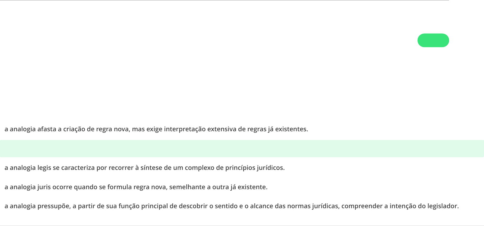 31/03/2023, 21:37 Comentários https://sereduc.blackboard.com/ultra/courses/_147661_1/outline/assessment/_7233665_1/overview/attempt/_25381311_1/review/inline-feedback?attemptId=_25381311_1&mode=inline&columnId=_2422397_1&cont… 1/8 Conteúdo do exercício Ocultar opções de resposta Pergunta 1 0,1 / 0,1 Sobre a analogia na hermenêutica jurídica: a analogia afasta a criação de regra nova, mas exige interpretação extensiva de regras já existentes. Resposta corretaa analogia pressupõe que casos análogos sejam estabelecidos em face de normas análogas, mas não díspares. a analogia legis se caracteriza por recorrer à síntese de um complexo de princípios jurídicos. a analogia juris ocorre quando se formula regra nova, semelhante a outra já existente. a analogia pressupõe, a partir de sua função principal de descobrir o sentido e o alcance das normas jurídicas, compreender a intenção do legislador. 31/03/2023, 21:37 Comentários https://sereduc.blackboard.com/ultra/courses/_147661_1/outline/assessment/_7233665_1/overview/attempt/_25381311_1/review/inline-feedback?attemptId=_25381311_1&mode=inline&columnId=_2422397_1&cont… 2/8 Ocultar opções de resposta Pergunta 2 0,1 / 0,1 Conforme a hermenêutica jurídica brasileira, podemos afirmar que: no direito brasileiro, a equidade possui apenas função interpretativa. antinomia jurídica ocorre quando há lacuna legislativa. Resposta corretaa analogia, assim como o costume e os princípios gerais de direito, tem função integrativa no sistema jurídico brasileiro. a analogia serve apenas como método interpretativo de efeitos restritivos. o critério ou princípio hierárquico – lex superior derogat legi inferiori – visa a solucionar o problema da necessidade de integração de lacunas axiológicas. Pergunta 3 0,1 / 0,1 Quais as condições para que haja antinomia na teoria de Bobbio? 31/03/2023, 21:37 Comentários https://sereduc.blackboard.com/ultra/courses/_147661_1/outline/assessment/_7233665_1/overview/attempt/_25381311_1/review/inline-feedback?attemptId=_25381311_1&mode=inline&columnId=_2422397_1&cont… 3/8 Ocultar opções de resposta Ocultar opções de resposta ambas as normas devem ter procedido da mesma autoridade legislativa; as duas normas em conflito não devem dispor sobre uma mesma matéria. Resposta correta as duas normas em conflito devem pertencer ao mesmo ordenamento; as duas normas devem ter o mesmo âmbito de validade, seja temporal, espacial, pessoal ou material. ocorre no âmbito do processo judicial quando há uma divergência entre a decisão de primeira instância e a decisão de segunda instância ou quando um tribunal superior de natureza federal confirma a decisão de segunda instância. as duas normas em conflito devem pertencer ao mesmo ordenamento, mas não necessariamente com o mesmo âmbito de validade, já que há questões históricas que podem trazer à tona normas de ordenamentos antigos. as duas normas aplicáveis não apresentam uma solução satisfatória para o caso; as duas normas não podem ser integradas mediante recurso a analogia ou costumes. Pergunta 4 0,1 / 0,1 De acordo com os conhecimentos sobre hermenêutica jurídica, é incorreto afirmar: ante a impossibilidade de prever todos os casos particulares, o legislador estabelece preceitos de longo alcance e deixa ao aplicador do Direito a tarefa de enquadrar o fato humano numa norma jurídica. o intérprete não cria prescrições; deduz a nova regra, para um caso concreto, do conjunto das disposições vigentes, consentâneas com o progresso geral. 31/03/2023, 21:37 Comentários https://sereduc.blackboard.com/ultra/courses/_147661_1/outline/assessment/_7233665_1/overview/attempt/_25381311_1/review/inline-feedback?attemptId=_25381311_1&mode=inline&columnId=_2422397_1&cont… 4/8 Ocultar opções de resposta Resposta corretaa fim de alcançar o escopo do Direito não é examinada a norma em sua essência, conteúdo e alcance; o caso concreto e as circunstâncias. a Hermenêutica Jurídica tem por objeto o estudo e a sistematização dos processos aplicáveis para determinar o sentido e o alcance das expressões do Direito. na aplicação da lei, o juiz atenderá aos fins sociais a que ela se dirige e às exigências do bem comum. Pergunta 5 0,1 / 0,1 Sobre as lacunas, conforme a teoria de Bobbio, pode-se dizer que: atendam às convicções ideológicas pessoais do juiz. são injustas, aquelas que pretende satisfazer um sentimento pessoal e subjetivo de injustiça provocado por outrem. são costumeiras, que tenham surgido de práticas sociais inspiradas nos valores vigentes. são legitimamente produzidas pelo legislador democrático. Resposta corretasão justas, que ensejem uma solução satisfatória ao caso concreto. 31/03/2023, 21:37 Comentários https://sereduc.blackboard.com/ultra/courses/_147661_1/outline/assessment/_7233665_1/overview/attempt/_25381311_1/review/inline-feedback?attemptId=_25381311_1&mode=inline&columnId=_2422397_1&cont… 5/8 Ocultar opções de resposta Pergunta 6 0,1 / 0,1 Sobre a interpretação do direito, podemos afirmar: Resposta correta considerando a existência de antinomia entre dois dispositivos de uma mesma lei, à solução do conflito é essencial a diferenciação entre antinomia real e antinomia aparente, porque reclamam do interprete solução distinta. diante da existência de antinomia entre dois dispositivos de uma mesma lei, o conflito deve ser resolvido pelos critérios da hierarquia e (ou) da sucessividade no tempo. os tradicionais critérios hierárquico, cronológico e da especialização são adequados à solução de confronto caracterizado como antinomia real, ainda que ocorra entre princípios jurídicos. a técnica da subsunção é suficiente e adequada à hipótese que envolve a denominada eficácia horizontal de direitos fundamentais nas relações privadas. a aplicação do princípio da especialidade, em conflito aparente de normas, afeta a validade ou a vigência