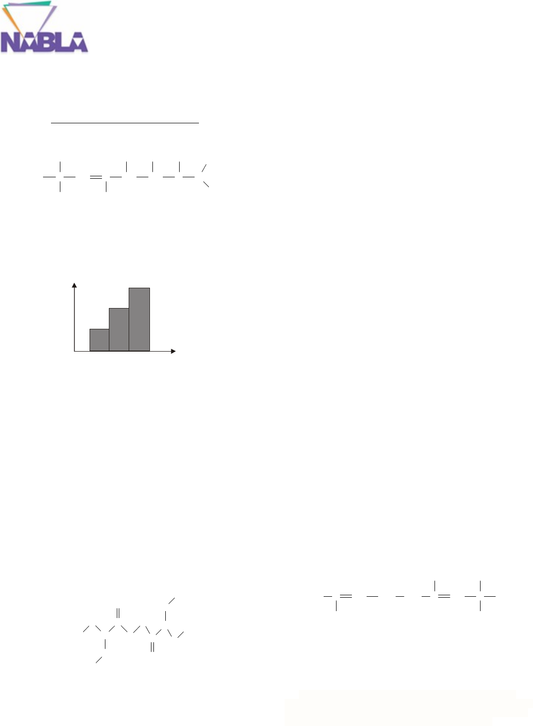 Química orgânica Prof: Zé Geraldo Aula 1- Fundamentos da Química Orgânica 01 - (FGV SP) O composto de fórmula: Apresenta quantos carbonos primários, secundários, terciários e quaternários, respectivamente? a)5, 5, 2 e 1 b)5, 4, 3 e 1 c)7, 4, 1 e 1 d)6, 4, 1 e 2 e)7, 3,1 e 2 02 - (UEPB) O gráfico a seguir representa a evolução geral do número de compostos orgânicos conhecidos. Com base no gráfico, marque V ou F, quando as proposições forem verdadeiras ou falsas, respectivamente. ( ) O carbono apresenta capacidade para formar ligações simples e múltiplas com ele mesmo, constituindo cadeias de vários comprimentos. ( ) O raio atômico relativamente pequeno do átomo de carbono e o fato dele constituir quatro ligações, é que permite a formação de cadeias carbônicas, às vezes muito longas e até em quatro direções, o que justifica o grande número de compostos orgânicos conhecidos. ( ) Atualmente, é conhecido um número muito mais elevado de substâncias inorgânicas do que o de substâncias orgânicas, apesar da elevada capacidade do átomo de carbono de formar novas estruturas. ( ) Existem substâncias inorgânicas constituídas por átomos de carbono, aumentando desta forma, o número de compostos químicos formados pelo carbono. Marque a alternativa que corresponde a seqüência correta, respectivamente: a)F, F, F, V b)V, V, F, V c)F, V, V, F d)V, V, V, F e)V, V, V, V 03 - (UNICAMP SP) O medicamento dissulfiram, cuja fórmula estrutural está representada abaixo, tem grande importância terapêutica e social, pois é usado no tratamento do alcoolismo. A administração de dosagem adequada provoca no indivíduo grande intolerância a bebidas que contenham etanol. a)Escreva a fórmula molecular do dissulfiram. b)Quantos pares de elétrons não compartilhados existem nessa molécula? c)Seria possível preparar um composto com a mesma estrutura do dissulfiram, no qual os átomos de nitrogênio fossem substituídos por átomos de oxigênio? Responda sim ou não e justifique. 04 - (UEPG PR) Sobre a química do átomo de carbono, assinale o que for correto. 01.Denomina-se por carbono terciário aquele que se liga através de uma ligação tripla a outro átomo de carbono. 02.Os átomos de carbono conseguem formar longas cadeias, as quais são denominadas de insaturadas, caso apresentem além de ligações simples, também duplas ou triplas dentro da cadeia carbônica. 04.Os átomos de carbono são os mais abundantemente encontrados nas moléculas orgânicas típicas, juntamente com o hidrogênio, o oxigênio e o nitrogênio. 08.O átomo de carbono por possuir quatro elétrons na camada de valência é capaz de estabelecer quatro ligações covalentes, como pode ser observado no metano. 05 - (UFRGS RS) A síntese da uréia a partir de cianato de amônio, segundo a equação desenvolvida por Wöhler, em 1828, foi um marco na história da Química porque: a)provou a possibilidade de se sintetizarem compostos orgânicos a partir de inorgânicos. b)foi a primeira síntese realizada em laboratório. c)demonstrou que os compostos iônicos geram substâncias moleculares quando aquecidos. d)se trata do primeiro caso de equilíbrio químico homogêneo descoberto. e)provou que o sal de amônio possui estrutura interna covalente. 06 - (FFCL MG) São compostos orgânicos, exceto: a)C2H5OH b)C8H18 c)CO2 d)CH3NH2 e)H2CO 07 - (UEPB) Os compostos orgânicos distinguem-se dos inorgânicos por uma série de características que nos permite identificá-los com segurança. Complete os espaços abaixo com O quando as propriedades mencionadas forem relativas a compostos orgânicos e com I, quando forem inorgânicos. ( ) Seguem a regra semelhante dissolve semelhante. ( ) Apresentam geralmente baixa estabilidade diante de agentes energéticos, como temperatura, pressão, ácidos concentrados etc. . ( ) São muito solúveis em água. ( ) Reagem, na maioria dos casos, lentamente com formação de subprodutos e requerem geralmente o uso de catalisadores. ( ) Apresentam altos pontos de fusão e ebulição. ( ) Não conduzem corrente elétrica em solução aquosa. Marque, a alternativa correta: a)O, O, I, I, O, I b)O, I, I, O, I, I c)I, O, I, O, I, I d)I, O, O, O, O, O e)O, O, I, O, I, O 08- (UECE) O geraniol possui um odor semelhante ao da rosa, sendo, por isso, usado em perfumes. Também é usado para produzir sabores artificiais de pêra, amora, melão, maçã vermelha, lima, laranja, limão, melancia e abacaxi. Pesquisas o evidenciam como um eficiente repelente de insetos. Ele também é produzido por glândulas olfativas de abelhas para ajudar a marcar as flores com néctar e localizar as entradas para suas colméias. A seguir, temos a estrutura do geraniol, com seus átomos numerados de 1 a 10. Assinale a alternativa que contém a medida correta dos ângulos reais formados pelas ligações entre os átomos 2-3-4, 4-5-6 e 9-8-10, respectivamente, da estrutura do geraniol. a)120º, 109º28’ e 109º28’. b)120º, 109º28’ e 180º. c)180º, 120º e 109º28’. d)109º28’, 180º e 180º. 09 - (ENEM) A forma das moléculas, como representadas no papel, nem sempre é planar. Em um determinado fármaco, a molécula contendo um grupo não planar é biologicamente ativa, moléculas contendo substituintes planares são inativas.O grupo responsável pela bioatividade desse fármaco 10 - (ENEM) As moléculas de nanoputians lembram figuras humanas e foram criadas para estimular o interesse de jovens na compreensão da linguagem expressa em fórmulas estruturais, muito usadas em química orgânica. Um exemplo é o NanoKid, representado na figura: Em que parte do corpo do NanoKid existe carbono quaternário? a)Mãos. b)Cabeça. c)Tórax. d)Abdômen. e)Pés. Aula 02 – Representação de fórmulas estruturais. 01 - (UNIUBE MG) Observe a fórmula estrutural simplificada do composto abaixo: Com relação a este composto policíclico, todas as alternativas estão corretas, EXCETO: a)Contém átomos 