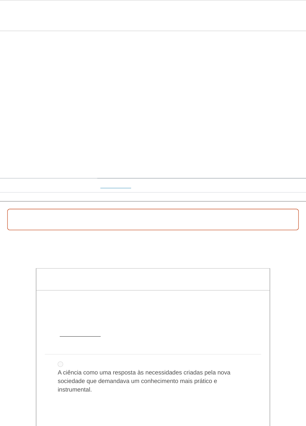 Teste seus conhecimentos Entrega Sem prazo Pontos 10 Perguntas 8 Limite de tempo Nenhum Instruções Histórico de tentativas Tentativa Tempo Pontuação MAIS RECENTE Tentativa 1 5 minutos 8,75 de 10 As respostas corretas estão ocultas. Pontuação deste teste: 8,75 de 10 Enviado 19 abr em 11:46 Esta tentativa levou 5 minutos. Teste seus conhecimentos acerca da disciplina. Teste composto por 8 questões objetivas. Cada questão vale 1,25 pontos. 1,25 / 1,25 ptsPergunta 1 Sabemos da importância da ciência em nossas vidas e na construção do conhecimento científico. A partir desta colocação sobre a Ciência está INCORRETO afirmar: A ciência como uma resposta às necessidades criadas pela nova sociedade que demandava um conhecimento mais prático e instrumental. https://gruposeb.instructure.com/courses/9650/quizzes/24449/history?version=1 Ciência é sempre instável: não só cresce, mas também muda de direção; novos conhecimentos nem sempre confirmam os anteriores, e os paradigmas sucedem-se, por vezes em meio a polêmicas acirradas e irreconciliáveis No período do Renascimento, a ciência voltou-se para a resolução de problemas de várias ordens: a descoberta de micróbios e bacilos e os mecanismos para combatê-los; a invenção do telégrafo e do telefone; urbanização decorrente da intensificação fabril, entre outros. O termo ciência não provém do verbo em latim Scire, que significa aprender, conhecer. A ciência tem sua origem na passagem do período que se denomina medieval para o moderno. 1,25 / 1,25 ptsPergunta 2 Qual o conhecimento é prioritariamente intuitivo, imediato, concreto e não se pauta pela lógica? Assinale a afirmativa correta. Conhecimento religioso. Conhecimento científico. Conhecimento social. Conhecimento filosófico. Conhecimento popular. 1,25 / 1,25 ptsPergunta 3 A publicação científica não deve ser consumida somente pelos membros da comunidade científica, pois ela tem compromisso com: dos amigos e colegas jovens leitores seus auxiliares os seus pares a sociedade 1,25 / 1,25 ptsPergunta 4 Define-se o método científico como um conjunto: autoritário de preceitos e normas. de regras físicas e sociais. de regras metafísicas e religiosas. de princípios não sistematizados. de procedimentos sistematizados e técnicos. 1,25 / 1,25 ptsPergunta 5 “O progresso científico, de um modo geral, é produto da atividade humana, por meio da qual o homem, compreendendo o que o cerca, passa a desenvolver novas descobertas. E por relacionar-se com o mundo de diferentes formas de vida, o homem utiliza-se de diversos meios de conhecimentos, por intermédio dos quais evolui e faz evoluir o meio em que vive, trazendo contribuições para a sociedade.” (extraído de FACHIN, Odília. Fundamentos de metodologia) A partir desta afirmação, aponte quais são os tipos de conhecimento existentes. Há vários tipos de conhecimentos existentes, mas só deve ser considerado válido o conhecimento técnico. Os conhecimentos existentes não podem ser considerados, pois não trazem benefícios a humanidade. O conhecimento racional implica na maneira como o homem se expressa no cotidiano acerca do mundo em que vive. Os conhecimentos religioso, filosófico, popular e científico são os tipos mais significativos de conhecimento O conhecimento popular, ou o senso comum, se pauta em formas elaboradas de conhecimento, por representar um saber baseado em verificações e certezas. O conhecimento é constituído a partir da maneira como o homem se relaciona com o mundo em que vive, há várias formas de se ver o mundo, e todas as formas de conhecimento devem ser respeitadas. As formas mais significativas de conhecimento, são: conhecimentos religioso, filosófico, popular e científico. 0 / 1,25 ptsPergunta 6IncorretaIncorreta Avalie as afirmações a seguir e marque a alternativa correta: I - Pesquisa científica é a aplicação prática de uma série de processos metodológicos de investigação utilizados por pesquisadores para o desenvolvimento de seu estudo. II - Diferentemente da pesquisa de rotina, a pesquisa científica requer uma investigação apurada e precisa ser escrita e alinhada de acordo com as normas técnicas vigentes. Todas incorretas I está correta I e II estão erradas Apenas II está correta II e II estão corretas 1,25 / 1,25 ptsPergunta 7 Os princípios fundamentais para estabelecer a verossimilhança, ou seja, as qualidades (predicados ou categorias) atribuídas ao sujeito da proposição e admissíveis na circunstância do debate são: princípio da alteridade, princípio da não contradição e princípio do excluído princípio da identidade, princípio da não contradição e princípio do terceiro excluído princípio da identidade, princípio da não contradição e princípio do excluído princípio da identidade e princípio da contradição princípio da identidade e princípio da não contradição 1,25 / 1,25 ptsPergunta 8 Tomando por base nossos estudos sobre a Ciência é correto afirmar: Na busca desenfreada por reconhecimento, poder ou dinheiro, alguns cientistas não são tentados a burlar um procedimento ou dois, alterar este dado ou aquele, tudo para garantir que o resultado de sua pesquisa saia como ele quer que seja. Ciência não significa o conhecimento de caráter racional, sistemático e seguro dos fatos e fenômenos do mundo. A ciência futura é previsível, cabendo pressupor limites. Ciência significa um conjunto organizado de conhecimentos relativos a um determinado objeto, especialmente os obtidos mediante a observação, a experimentação dos fatos e um método próprio. (https://portal.rybena.com.br) No início do século XX, as ideias de Einstein e Popper não revolucionaram a concepção de ciência e de método científico. Pontuação do teste: 8,75 de 10 https://portal.rybena.com.br/