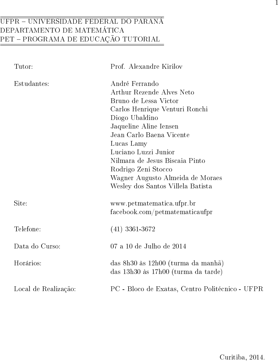 Local de Realização: PC - Bloco de Exatas, Centro Politécnico - UFPR