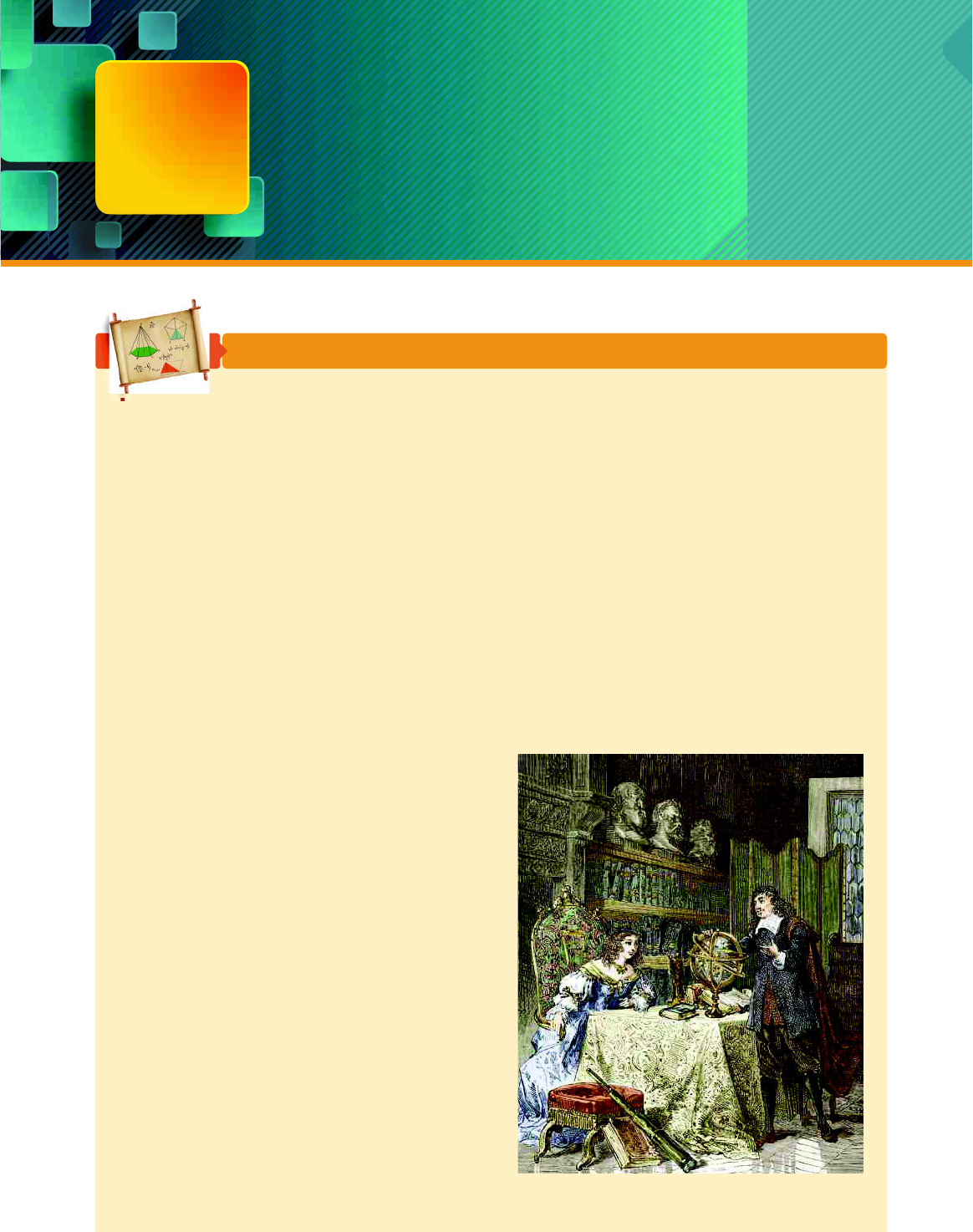 O ponto1 C A P ÍT U LO Introdução à Geometria Analítica O segundo terço do século XVII foi um importante período da história da Matemática, com destaque para a grande intercomunicação de ideias entre os matemáticos franceses, dos quais des- tacamos René Descartes e Pierre de Fermat. A eles usualmente atribui-se a invenção da Geometria Analítica. Outros nomes dessa época também devem ser lembrados, como Roberval, Desargues, Mersenne e Pascal. René Descartes (1596-1650) recebeu, desde cedo, uma educação diferenciada e dedicou grande parte de sua vida à filosofia e à ciência. Sua obra mais importante, datada de 1637, é o Discurso sobre o método, em que apresenta as bases filosóficas do seu método para o estudo das ciências. Descartes acreditava que o conhecimento matemático é mais cumulativo e progressivo que o de outras áreas do conhecimento, crescendo por acréscimos e não por substituições, como ocorria em outras ciências, à medida que eram feitas novas descobertas. As demonstrações usadas para validar determi- nadas propriedades na Matemática possibilitavam a aquisição segura do conhecimento, e esse poderia ser o caminho para a verdade e para novas descobertas das ciências. Segundo Descartes, não se poderia aceitar nada como verdade se não fossem apresen- tadas provas com clareza e distinção. Esse método de organizar o pensamento científico, conhecido como racionalismo, rompia com o empirismo do passado. Em um dos três apêndices do Discurso sobre o método encontra-se “Le Geométric”. A maior con- tribuição desse texto é a ideia de dar significado às operações algébricas por meio de interpretações geo- métricas e, reciprocamente, “libertar” a Geometria dos diagramas por meio de processos algébricos. Esses princípios originaram a Geometria Ana- lítica que conhecemos hoje e que passaremos a estudar nos primeiros quatro capítulos desse volume. Os pontos são representados por pares ordenados de números reais; as retas, circunferên- cias e outras curvas podem ser descritas por meio de expressões algébricas, com as quais podemos estudar propriedades das figuras geométricas. As figuras são representadas em um referencial for- mado por dois eixos perpendiculares, conhecido UM POUCO DE HISTÓRIA René Descartes ensinando astronomia à rainha Cristina I da Suécia, por volta de 1649. Ilustração de D. Jaime Seix, 1876. C O LE Ç Ã O P A R T IC U LA R /S H E IL A T E R R Y /S P L/ LA T IN S T O C K 7 y P P 2 P 1 xO y xO 2o quadrante 1o quadrante 3o quadrante 4o quadrante Plano cartesiano Consideremos dois eixos orientados, x e y, perpendiculares em O. O plano determinado por esses eixos é chamado plano cartesiano. Cada uma das partes em que o plano fica dividido pelos eixos x e y recebe o nome de quadrante. Os quatro quadrantes são numerados no sentido anti- -horário, como mostra a figura ao lado: t�O eixo x (ou eixo Ox) recebe o nome de eixo das abscissas. t�O eixo y (ou eixo Oy) recebe o nome de eixo das ordenadas. t�O ponto O é a origem do sistema de eixos cartesianos ortogonal ou re- tangular. Esse sistema é frequentemente indicado por xOy. Dado um ponto P qualquer do plano cartesiano, traçamos por P as retas paralelas aos eixos x e y. Sejam P 1 e P 2 os pontos de interseção dessas retas com os eixos x e y, respectivamente. Dizemos que: t�a abscissa de P (indica-se por x P ) é a medida algébrica do segmento OP 1 ; t�a ordenada de P (indica-se por y P ) é a medida algébrica do segmento OP 2 ; t�as coordenadas de P são os números reais x P e y P , indicados, em geral, na forma do par ordenado (x P , y P ). C O LE Ç Ã O P A R T IC U LA R /C C I A R C H IV E S /S P L/ LA T IN S T O C K Um ponto P possui coordenadas dadas por P(22, 4). Isso significa que a abscissa de P vale 22 e sua ordenada vale 4. P encontra-se no 2o quadrante, como mostra a figura ao lado. EXEMPLO 1 y P x022 4 como sistema de coordenadas cartesianas, nome dado em homenagem a Descartes. Vale lembrar, no entanto, que na obra de Descartes não havia nada muito sistemático sobre sistema de coordenadas, distâncias, inclinação de retas, ângulos etc. Pierre de Fermat (1601-1665), ao contrário de Descartes, dedicava-se à Ciência e à Matemática por prazer. Sua grande contribuição para a Geometria Analítica foi a descoberta (um ano antes do aparecimento de “Le Geométric” de Descartes) do seguinte princípio: “Uma equação que apresenta duas quanti- dades incógnitas descreve uma linha, reta ou curva”. Fermat estudou desde casos de equações lineares simples até equações quadráticas mais gerais. Sua obra, mais sistemática e didática que a de Descartes, não foi publicada em vida e, por esse moti- vo, a Geometria Analítica era considerada, na época, invenção única de Descartes. Fonte de pesquisa: BOYER, Carl B. História da Matemática. 3a ed. São Paulo: Edgard Blucher, 2010. “Geometria” foi publicado em 1637 como um apêndice do Discurso sobre o método. CAPÍTULO 1 8 t�A cada ponto P do plano cartesiano corresponde um par ordenado (x P , y P ) de números reais e, inversamente, para cada par ordenado (x P , y P ) de números reais corresponde um ponto P do plano. t�Um ponto pertence ao eixo das abscissas se sua ordenada é nula. Desse modo, para todo a O H, o ponto (a, 0) per- tence ao eixo x. t�Um ponto pertence ao eixo das ordenadas se sua abscissa é nula. Assim, para todo b O H, o ponto (0, b) pertence ao eixo y. t�Um ponto pertence à bissetriz dos quadrantes ímpares (b 13 ) se suas coordenadas são iguais. Assim, para todo a O H, o ponto (a, a) pertence à bissetriz b 13 . t�Um ponto pertence à bissetriz dos quadrantes pares (b 24 ) se suas coordenadas são opostas. Para todo a O H, o ponto (a, 2a) per- tence à bissetriz b 24 . OBSERVAÇÕES y x b 13 0 1 2 21 212223 22 23 3 2 1 3 45° PENSE NISTO: O ponto (a, 2a) pode pertencer ao 2o quadran- te? E ao 4o quadrante? PENSE