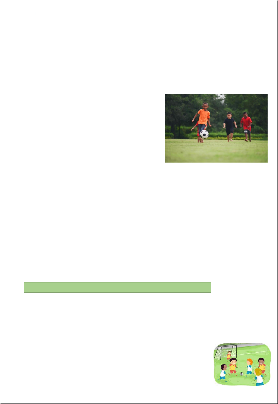 Atividade 2 O dono da bola Carlos Alberto era o único da turma que tinha bola de futebol. Mas, por qualquer coisa, ele brigava com todo mundo e levava a bola embora. Acabou ficando sozinho sem amigos. Aí o Carlos Alberto não aguentou. Apareceu lá no campinho. ▬ Se vocês me deixarem jogar, eu empresto a minha bola. ▬ Nós não queremos sua bola, não. ▬ Ué, por quê? ▬ Você sabe muito bem. No melhor do jogo você sempre dá um jeito de levar a bola embora. ▬ Eu não, só quando vocês me amolam. ▬ Pois é por isso mesmo que nós não queremos, só se você der a bola para o time de uma vez. ▬ Ah, essa não! Está pensando que eu sou bobo? E Carlos Alberto continuou sozinho. Mas, eu acho que ele já não estava gostando de estar sempre sozinho. No domingo, ele convidou Xereta para brincar com o trem elétrico. Na segunda, levou o Beto para ver os peixes na casa dele. Na terça, me chamou para brincar de índio. E, na quarta, mais ou menos no meio do treino, lá veio ele com a bola debaixo do braço. ▬ Oi, turma, que tal jogar com uma bola de verdade? Nós estávamos loucos para jogar com a bola dele. Mas não podíamos dar o braço a torcer. ▬ Olha, Carlos Alberto, você apareça em outra hora. Agora, nós precisamos treinar ― disse Catapimba. ▬ Mas eu quero dar a bola ao time. De verdade! Nós todos estávamos espantados: ▬ E você nunca mais pode levar a bola embora? ▬ E o que é que você quer em troca? ▬ Eu só quero jogar bola com vocês... Ruth Rocha, Marcelo, marmelo, martelo e outras histórias. Rio de Janeiro, Salamandra, 1976. 1- Crie uma frase com cada palavrado quadro. bola jogo campinho a) _______________________________________________________________________________________________ b) _______________________________________________________________________________________________ c) _______________________________________________________________________________________________ 2- De acordo com o texto responda as questões: a) Quem era o dono da bola? ________________________________________________________________________ b) O que Carlos Alberto queria em troca de emprestar a bola? __________________________________________ __________________________________________________________________________ c) Por que a turma não quis a bola de Carlos Alberto? _____________________________________________________ _________________________________________________________________________________________________ ESCOLA MUNICIPAL SANTA TEREZA PROFESSORA: Shyrley DISCIPLINA: Língua Portuguesa Aluno(a):__________________________________________________________________________ Ano de escolaridade: 5º Ano (N3) TURMA: ________ TURNO: _____________ Aula dia: ______de ___________________ de 2021. Dia da semana: _____________________ d) Quando Carlos Alberto levava a bola embora? __________________________________________________________ __________________________________________________________________________________________________ e) Por que ele disse que não era bobo? __________________________________________________________________________________________________ 3- Complete as frases de acordo com o texto. a) No domingo, Carlos Alberto convidou o Xereta para _____________________________________________________. b) Na segunda, ele levou o Beto para ___________________________________________________________________. c) Na terça, me chamou para _________________________________________________________________________. 4- Escreva o que Carlos Alberto fez na quarta-feira. __________________________________________________________________________________________________ 5- Quem está contando a história “O dono da bola”? (A) A mãe de Carlos Alberto. (B) Beto, o colega que ele levou para ver os peixes. (C) O garoto que ele chamou para brincar de índio. (D) O Xereta, o colega que ele convidou para brincar de trem elétrico. 6- No trecho “▬ Oi, turma, que tal jogar com uma bola de verdade?”, marque a alternativa que mostra como os meninos reagiram. (A) Não aceitaram a bola de jeito nenhum. (B) Queriam a bola, mas não o demonstraram. (C) Aceitaram a bola na hora. (D) Nem quiseram conversar com Carlos Alberto. 7- Carlos Alberto, quando deu a bola para o time, só quis uma coisa em troca. O quê? __________________________________________________________________________________________________ 8- Qual é sua brincadeira preferida? Com quem você gosta de brincar? __________________________________________________________________________________________________ __________________________________________________________________________________________________ 9- Você acha que Carlos Alberto agiu certo? Por quê? __________________________________________________________________________________________________ __________________________________________________________________________________________________ 10- Troque os símbolos por letras e descubra as palavras. Parabéns!! Você é demais! Tia Shyrley