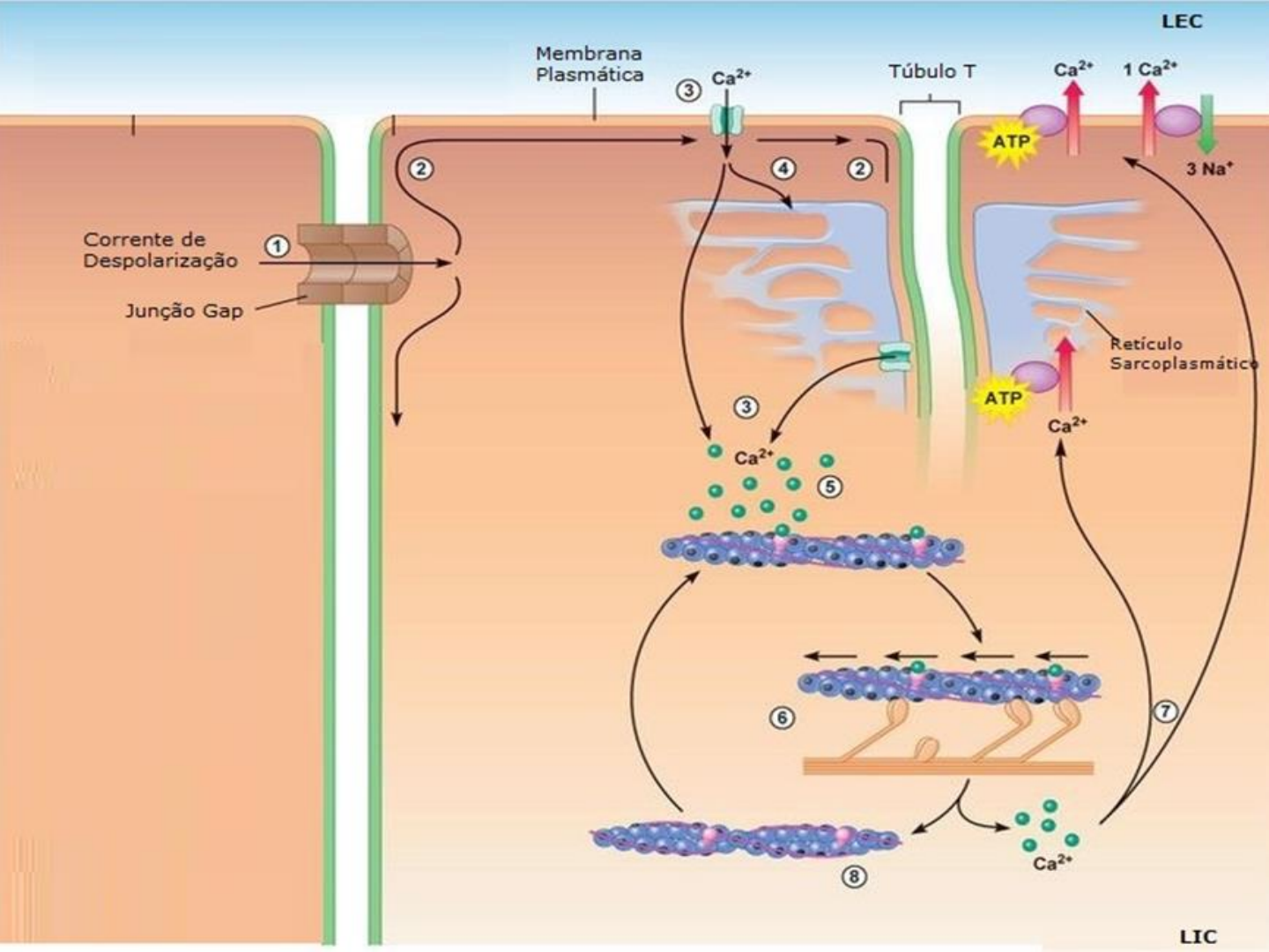 Em relação ao ciclo de contração, analise as afirmativas a seguir: I. Hidrólise de ATP: as cabeças de miosina contêm ATPase, uma enzima que hidrolisa ATP em difosfato de adenosina (ADP) e em um fosfato (P). II. Formação de pontes cruzadas: as cabeças de miosina energizadas se fixam aos sítios de ligação de miosina na actina e liberam grupos de fosfato. III. Movimento de tensão: após a formação das pontes cruzadas, ocorre o movimento de tensão. Durante o movimento de tensão, as pontes cruzadas mudam sua conformação e liberam ADP. A força produzida pela mudança conformacional de centenas de pontes cruzadas desliza o filamento fino sobre o filamento espesso, em direção ao centro do sarcômero. IV. Ligação e separação do ATP: ao final do movimento de tensão, as pontes cruzadas permanecem firmemente fixadas à actina. Quando se ligam a outra molécula de ATP, as cabeças de miosina se soltam da actina. Está correta o que se afirma em: a) I, II, III e IV. b) I e IV, apenas. c) II e III, apenas. d) III e IV, apenas. Letra a A contração muscular refere-se ao deslizamento da actina sobre a miosina nas células musculares, permitindo os movimentos do corpo. O ____________ é a unidade funcional da contração muscular. Complete a lacuna com a alternativa correta: a) Reticulo sarcoplasmático liso. b) Canal de cálcio. c) Sarcômero. d)Complexo troponina. Letra c No mecanismo de contração muscular, o Ca2+ é liberado pelo retículo sarcoplasmático no citoplasma da célula muscular e se liga a uma dada proteína para permitir a exposição dos sítios de ligação de actina e miosina. Qual proteína é essa? a) Troponina I. b) Troponina C. c) Troponina T. d) Tropomiosina. Letra b Antes de se fixar com o filamento de actina, as cabeças da ponte cruzada se ligam à moléculas de ATP. Sob a ação de enzimas ATPases a molécula de ATP é quebrada, resultando em ADP + Pi, que ficam presos à cabeça de miosina, “engatilhando-a” para que ocorra a ligação com a actina. Sobre o processo de eventos da fisiologia da contração muscular, podemos afirmar que o texto acima descreve a etapa de: a) Relaxamento muscular com a separação dos filamentos de actina e miosina. b) Liberação de energia por quebra do ATP. c) Despolarização e entrada do cálcio extracelular pelos tubos T. d) Ligação entre as cabeças de miosina e os pontos ativos da actina. Letra d Analise as sentenças abaixo e assinale a alternativa correta: I. A contração muscular ocorre por um mecanismo de deslizamento dos filamentos de miosina e actina. II. Uma característica importante da cabeça de miosina é que ela funciona como uma enzima ATP-ásica. III. O filamento de actina é formado apenas por actina, tropomiosina e troponina. IV. O filamento de actina é inibido pela troponina I. A ativação é estimulada pelos íons de cálcio que se ligam à troponina C. É correto o que se afirmar em: a) I e II, apenas. b) I, II, III e IV. c) I e IV, apenas. d) I, II e III, apenas. Letra b