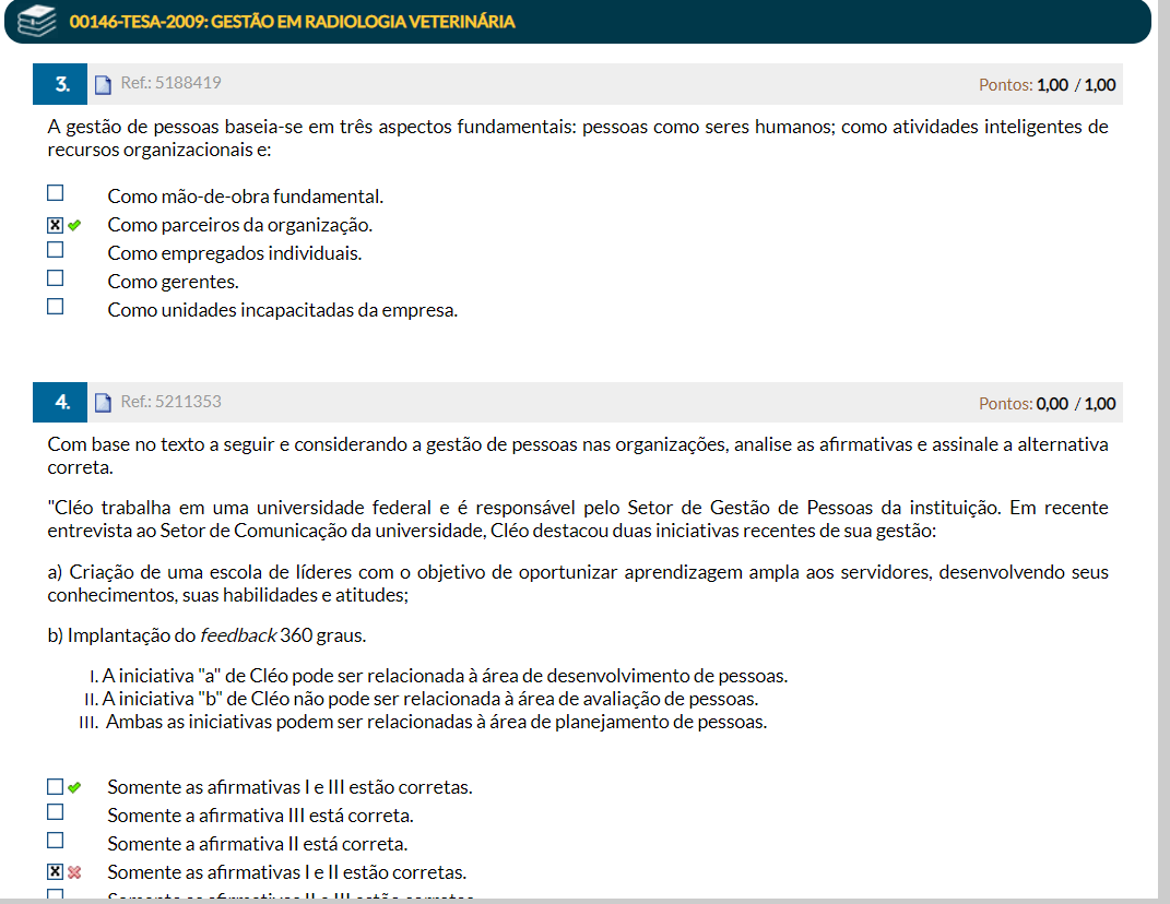 Com base no texto a seguir e considerando a gestão de pessoas nas organizações, analise as afirmativas e assinale a alternativa correta. Cléo trabalha em uma universidade federal e é responsável pelo Setor de Gestão de Pessoas da instituição. Em recente entrevista ao Setor de Comunicação da universidade, Cléo destacou duas iniciativas recentes de sua gestão: a) Criação de uma escola de líderes com o objetivo de oportunizar aprendizagem ampla aos servidores, desenvolvendo seus conhecimentos, suas habilidades e atitudes; b) Implantação do feedback 360 graus. I. A iniciativa "a" de Cléo pode ser relacionada à área de desenvolvimento de pessoas. II. A iniciativa "b" de Cléo não pode ser relacionada à área de avaliação de pessoas. III. Ambas as iniciativas podem ser relacionadas à área de planejamento de pessoas. Somente as afirmativas I e III estão corretas. Somente a afirmativa III está correta. Somente a afirmativa II está correta. Somente as afirmativas I e II estão corretas.