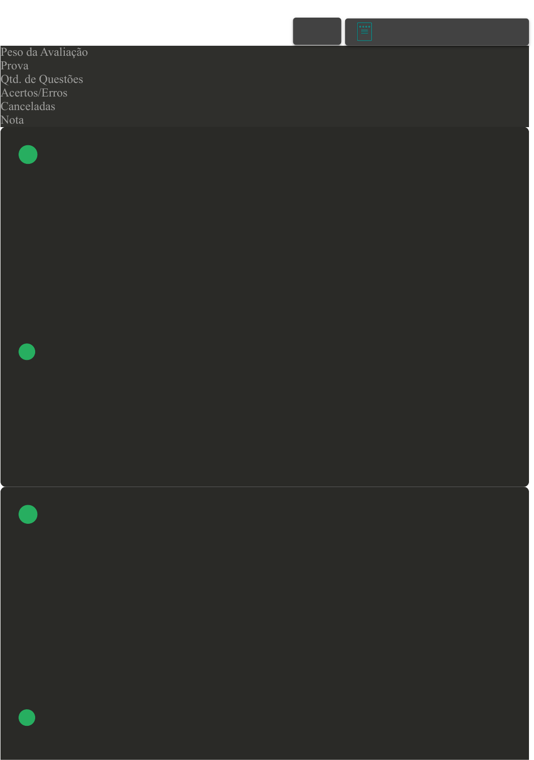 26/04/2023, 19:21 Avaliação II - Individual about:blank 1/6 Prova Impressa GABARITO | Avaliação II - Individual (Cod.:741657) Peso da Avaliação 1,50 Prova 47605000 Qtd. de Questões 10 Acertos/Erros 9/0 Canceladas 1 Nota 10,00 O Fundo Nacional de Desenvolvimento da Educação (FNDE) atua por meio de diversos programas que gerenciam parte dos recursos desse fundo e o direcionam para as respectivas demandas. Instituído pela Lei nº 12.249, de 14 de junho de 2010, um deles tem por objetivo promover a inclusão digital pedagógica e o desenvolvimento dos processos de ensino e aprendizagem de alunos e professores das escolas públicas brasileiras. Como se chama esse programa? A Livro Didático. B Programa Um Computador por Aluno. C Caminho da Escola. D Programa Computadores para Todos. É obrigatória em todas as escolas da federação brasileira, independente da diversidade de cada região do país. Do que estamos falando? A Aprovação. B Boa conduta. C Frequência. VOLTAR A+ Alterar modo de visualização 1 2 26/04/2023, 19:21 Avaliação II - Individual about:blank 2/6 D Nota. Com relação às modalidades de educação, nos deparamos com a educação formal, informal e não formal. A educação que também é chamada de não intencional refere-se às influências do meio humano, social, ecológico, físico e cultural às quais o homem está exposto. De qual educação estamos falando? A Educação formal. B Educação mista. C Educação não formal. D Educação informal. O Fundo Nacional de Desenvolvimento da Educação (FNDE) atua por meio de diversos programas que gerenciam parte dos recursos desse fundo e o direcionam para as respectivas demandas. Um dos programas foi instituído com o objetivo de melhoria na frota de veículos escolares, garantindo a permanência do aluno na escola da zona rural. Como se chama esse programa? A Livro Didático. B Biblioteca na escola. C Caminho Suave. D Caminho da escola. 3 4 26/04/2023, 19:21 Avaliação II - Individual about:blank 3/6 As escolas não podem ser administradas e organizadas da mesma maneira, pois nosso país tem dimensões continentais, mas algumas características organizacionais podem ser determinantes em todas as instituições escolares. Sobre essas características, assinale a alternativa INCORRETA: A A estrutura organizacional e boa organização do processo de ensino-aprendizagem, que consigam motivar a maioria dos alunos a aprender. B O papel mínimo da direção e da coordenação pedagógica, que articule minimamente o trabalho conjunto de todos os professores/administradores e os ajudem a ter bom desempenho em suas aulas. C A estrutura curricular e modalidades de organização do currículo com conteúdos bem selecionados, assim como critérios adequados de distribuição de alunos por sala. D A disponibilidade de condições físicas e materiais, de recursos didáticos, de biblioteca e outros, que propiciem aos alunos oportunidades concretas para aprender. A Lei de Diretrizes e Bases da Educação de 1996, em seu título V, no que se refere aos níveis e modalidades de educação através do Artigo 21, determina que a educação escolar compõe-se de educação básica e educação superior. Quanto à educação básica, ela é formada por: A Ensino superior e Médio. B Ensino infantil e Médio. C Ensino Superior. D Educação infantil, Ensino Fundamental e Ensino Médio. Atenção: Esta questão foi cancelada, porém a pontuação foi considerada. 5 6 26/04/2023, 19:21 Avaliação II - Individual about:blank 4/6 O FUNDEB foi criado em novembro de 1968 e está vinculado ao Ministério da Educação – MEC. A finalidade da autarquia é captar recursos financeiros para projetos educacionais e de assistência ao estudante. A maior parte dos recursos do FNDE provém do salário-educação, com o qual todas as empresas estão sujeitas a contribuir. Sobre o significado da sigla FUNDEB, assinale a alternativa CORRETA: A Fundo Internacional de Desenvolvimento da Educação. B Fundo Nacional de Desenvolvimento da Educação. C Fundo de Desenvolvimento da Educação e Faculdades. D Fundo Nacional de Doações para a Educação. Sobre a revolução informacional, compreendendo o conceito de globalização no qual estamos inseridos, podemos destacar um instrumento que a representa no contexto atual. Assinale a alternativa CORRETA que apresenta esse instrumento: A O celular. B A carta. C O livro didático. D O pendrive. Em 1998, no governo Fernando Henrique Cardoso, foi apresentado aos profissionais da educação um documento intitulado Referencial Curricular Nacional para a Educação Infantil, em três volumes (Introdução, Volume I e Volume II). Nesse documento estão expressos: os objetivos, conteúdos, estratégias, formas de avaliação e os princípios que denotam esse referencial. A respeito deles, classifique V para as sentenças verdadeiras e F para as falsas: 7 8 9 26/04/2023, 19:21 Avaliação II - Individual about:blank 5/6 ( ) O direito das crianças a brincar, como forma particular de expressão, pensamento, interação e comunicação infantil. ( ) Acesso das crianças aos bens socioculturais disponíveis. ( ) O respeito à dignidade e aos direitos das crianças. ( ) O atendimento aos cuidados essenciais associados à sobrevivência e ao desenvolvimento de sua identidade. Assinale a alternativa que apresenta a sequência CORRETA: A V – V – F – V. B V – F – V – F. C V – V – V – V. D F – F – F – V. As escolas não podem ser administradas e organizadas de maneira igualitária, pois vivemos em um país de grandes dimensões e características diversificadas, mas algumas características organizacionais podem ser determinantes em todas as instituições escolares. Sobre essas características, classifique V para as sentenças verdadeiras e F para as falsas: ( ) Professores preparados, que tenham clareza de seus objetivos e conteúdos, que façam planos de aula, que consigam cativar seus alun