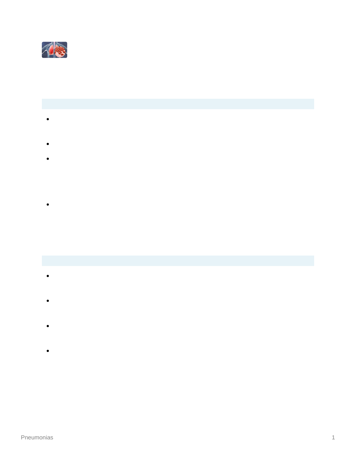Pneumonias 1 Pneumonias 1- Introdução Doença inflamatória aguda de causa infecciosa que acomete as vias aéreas terminais e o parênquima pulmonar; Causada por vírus, bactérias e mais raramente fungos e parasitas. A pneumonia pode ser definida do ponto de vista histológico como preenchimento do espaço alveolar por infiltrado necroinflamatório, assim como, do ponto de vista clínico como infecção aguda do pulmão decorrente da infecção por algum microorganismo. São classificadas em: -Pneumonia Adquirida em Comunidade -Pneumonia Nosocomial 2- Epidemiologia A PAC constitui uma das principais causas de morte no mundo, com significativo impacto nas taxas de morbidade; No Brasil, houve uma redução significativa das taxas de mortalidade por infecções do trato respiratório, apesar dessa redução ter sido menor nas últimas décadas. Dentre as pneumonias, a PAC persiste como a de maior impacto e é a terceira causa de mortalidade no meio médico. A incidência de pneumonia é alta entre lactentes e crianças, diminui consideravelmente durante a infância , permanece relativamente incomum em adultos jovens, mas depois começa a aumentar após os 50 anos de idade e, em especial, após os 65 anos… <5 anos e >65 anos, sexo masculino… mais frequente no outono e inverno. Pneumonias 2 Doenças respiratórias são a quinta causa de óbitos, pneumonia é a segunda mais frequente. Mortalidade- 1% (não internados) 50% (internados em UTI) 3- Etiologia Típicas: Haemophilus influenzae- idosos >65 anos, asma, DPOC Atípicas: Mycoplasma pneumoniae, Chlamydia pneumoniae, Legionella spp. Streptococcus pneumoniae e vírus respiratórios- são os patógenos mais frequentemente detectados em pacientes com PAC (Pneumonia Adquirida em Comunidade). No entanto, em uma grande proporção de casos (até 62%), nenhum patógeno é detectado, por conta da dificuldade de se obter amostras fidedignas e respostas em tempo hábil, o que corta a coleta de exames específicos uma prática não habitual. Agentes atípicos Pneumonias 3 Gram negativos Outros 4- Fisiopatologia Pneumonias 4 Atingem os alvéolos pulmonares de duas formas- microaspiração do material proveniente das vias aéreas superiores e inalação de aerossol contaminado do ambiente ou por via hematogênica. No primeiro caso, é desenvolvido devido à aspiração de pequenas quantidades de secreções nasofaríngeas ou de conteúdos da boca, em especial durante o sono. Aspirações são mais frequentes em pessoas mais idosas, particularmente mais frágeis ou acamadas. A pneumonia pode ser causada também por inalação direta de material em aerossóis para os pulmões. É característico das pneumonias bacterianas, Mycobacterium tuberculosis e Bacillus anthracis. Esse mecanismo também explica a infecção por alguns vírus, como o da influenza ou sincicial respiratório. As bactérias também podem atingir os pulmões através da corrente sanguínea, ser filtradas pelos mecanismos normais do clearance do hospedeiro, mas depois escapar e causar pneumonia. A pneumonia por S. aureus é comumente causada por disseminação hematogênica, em especial se uma infecção endovascular como a endocardite estiver presente. A Escherichia coli e outros bacilos Gram-negativos podem, ainda, causar pneumonias através de disseminação hematogênica. Resumo: 1º passo- chegada do patógeno no espaço alveolar; 2º passo- multiplicação descontrolada do patógeno; 3º passo- produção local de citocinas principalmente por macrófagos alveolares; 4º passo- recrutamento de neutrófilos para o espaço alveolar e introdução de citocinas na circulação sistêmica; 5º passo- geração do exsudato alveolar. 5- Diagnóstico clínico Tosse (82%)- produtiva ou não. Pode ter hemoptóicos (sangue). Náusea, vômito, diarreia Exame físico- estertores crepitantes, descompensar doença de base (cardíaca) Dispneia, febre, calafrios, expectoração, dor torácica (envolvimento da pleura) Pneumonias 5 Fadiga, mialgia, altragia, cefaleia OBS: em idosos os sinais podem ser muito inespecíficos, sem febre, por exemplo. 6- Diagnóstico radiológico Rx de tórax- a radiografia de tórax, em associação com a anamnese e o exame físico, faz parte da tríade propedêutica clássica para PAC, sendo recomendada sua realização de rotina, quando disponível, nas incidências posteroanterior (PA) e perfil. Além da contribuição ao diagnóstico, a radiografia de tórax permite ainda avaliar a extensão das lesões, detectar complicações e auxiliar no diagnóstico diferencial. Baixo custo, baixa radiação, primeiro exame. OBS: o infiltrado alveolar do tipo broncopneumônico é o achado radiológico mais frequente na pneumonia bacteriana, independente do agente etiológico. USG de tórax- delimitar derrames de difícil punção e loculações. TC de tórax- indicada quando há dúvidas, suspeita de complicações (abscesso, cavitações) e diagnóstico diferencial de massas. OBS: a imagem radiológica pode persistir por até seis a oito semanas. Pneumonias 6 7- Exames laboratoriais Exames laboratoriais não microbiológicos Hemograma: tem valor muito limitado para o diagnóstico de PAC em função de sua baixa sensibilidade e especificidade. Pode ser útil como critério de gravidade e monitorização terapêutica – leucopenia (< 4.000 leucócitos/mm3) denota prognóstico ruim. Nos casos de PAH, o hemograma faz parte do escore clínico de infecção pulmonar (CPIS) (Tab. 98.1) – utilizado no diagnóstico. Exames bioquímicos gerais: Tanto em PAC como em PAH, a dosagem de ureia elevada constitui um forte indicador de gravidade. Eletrólitos e provas hepáticas podem revelar morbidades associadas e/ou auxiliar na avaliação de disfunções orgânicas para definição prognóstica. A gasometria arterial (GA) revela hipoxemia e geralmente hipocapnia (pela hiperventilação), exceto na presença de pneumopatia grave, quando pode haver hipercapnia. A avaliação do estado