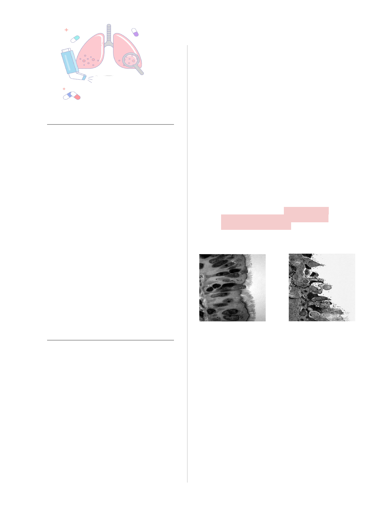 Júlia Cardoso de Matos - Fisioterapia 103 Asma Asma na criança e no Adolescente A asma é uma enfermidade complexa, decorrente de interações genéticas e ambientais, cujo manejo não sofre modificações significativas há várias décadas. Trata-se da doença crônica mais frequente na infância, com prevalência que varia de 10 a 30% na maioria dos países do mundo todo. ❑ Não existe tratamento específico para asma e, por isso, é preferível utilizar o termo “manejo” para as ferramentas utilizadas para prevenção e alívio das exacerbações pulmonares. ❑ Fatores desencadeantes: Vírus, bactérias, alergênicos, irritantes, fatores emocionais e exercícios. Segundo a GINA (2015), os principais objetivos para obter sucesso no manejo da asma na infância e na adolescência são: ausência de sintomas, sono repousante, crescimento e desenvolvimento adequados, frequência escolar regular, prática de esportes, redução de exacerbações e contenção de hospitalização e efeitos colaterais dos medicamentos. Asma adulto uma doença heterogênea, geralmente caracterizada por inflamação crônica das vias respiratórias, e que se manifesta por sinais e sintomas respiratórios (sibilos, dispneia, opressão torácica e tosse) que variam ao longo do tempo e em intensidade, acompanhados por limitação variável ao fluxo de ar das vias respiratórias”. A inflamação crônica das vias respiratórias está associada à hiper-responsividade das vias respiratórias (HRVR), o que determina os episódios de sintomas da asma. ❑ Os sintomas são inespecíficos e insuficientes para o diagnóstico da doença. ❑ HRVR (resposta broncoconstritora exagerada a diversos estímulos, como exercício, ar frio seco, alergénios, metacolina, histamina etc.) é responsável por broncoconstrição variável e sintomas da asma. ❑ A inflamação das vias respiratórias é central na patogênese da doença e determinante da gravidade da asma, das exacerbações e de alterações estruturais subsequentes (remodelamento das vias respiratórias). - O remodelamento das vias respiratórias estabelece a persistência de anormalidades clínicas como sintomas, limitação ao fluxo de ar e hiper-responsividade, mesmo quando a inflamação está controlada. Do ponto de vista anatomopatológico, a alteração predominante é a inflamação das vias respiratórias com um infiltrado por células sanguíneas não residentes das quais a mais característica, porém não exclusiva, é o eosinófilo. A análise do processo inflamatório da asma, vista no escarro induzido, tem demonstrado consistentemente que a inflamação na asma pode ser eosinofílica, neutrofílica, mista ou paucigranulocítica. VIAS AÉREAS Normal Asmático : ➤ Epidemiologia: A asma é uma das doenças respiratórias crônicas mundialmente mais comuns e está associada a elevada morbidade, causando importante sobrecarga social e pessoal. ➤ Fisiopatologia: A asma é uma doença multifatorial e heterogênea com relação à resposta inflamatória, gravidade, história natural, comorbidades e resposta ao tratamento, apresentando diferentes fenótipos. Fatores de risco como gênero, predisposição genética, história familiar, atopia, rinite, eczema, urbanização, infecções virais na infância, medicamentos, dieta e tabagismo materno são reconhecidamente associados à asma de início na infância ou adolescência. Já a asma de início na idade adulta resulta de uma interação complexa de genes e ambiente, estando predominantemente ligada a exposições na infância (infecções, tabagismo) obesidade, depressão, baixos níveis de função pulmonar, fatores ambientais e ocupacionais. ➤ Diagnóstico: Sintomas: na asma, eles são caracteristicamente episódicos, sendo sua gravidade variável ao longo do dia e do tempo (semanas, meses, anos). Os principais sintomas são dispnéia, sibilos, tosse, expectoração e opressão ou desconforto torácico retroesternal. Deve-se caracterizar a frequência, a intensidade e o horário de aparecimento dos sintomas (diária, semanal, noturna provocando despertar, matinal, aos exercícios etc.) ✓ Sintomas que ocorrem frequentemente à noite ou nas primeiras horas da manhã ✓ Melhora com broncodilatador (ex. salbutamol ou fenoterol por inalação) ou espontânea ✓ História pessoal de outras doenças alérgicas (rinite, dermatite atópica) ✓ História familiar de asma e outras doenças alérgicas Fatores precipitantes ou agravantes: - Exposição a alergénios ambientais (p. ex., ácaros, epitélios de animais como cão e gato, mofo) e/ou ocupacionais - Infecções respiratórias - Irritantes inespecíficos (p. ex., fumaça, odores fortes, material particulado, poluentes, produtos químicos) - Tabagismo - Atividades e exercícios físicos - Medicamentos (p. ex., ácido acetilsalicílico, anti-inflamatórios não hormonais, betabloqueadores) - Emoções e situações de estresse - Ciclo Menstrual - Mudanças de tempo • A FREQUÊNCIA E INTENSIDADE DOS SINTOMAS - VARIAM DE PACIENTE PARA PACIENTE. • OS GATILHOS TAMBÉM. • NUM MESMO INDIVÍDUO, EM ÉPOCAS DIFERENTES, SINTOMAS QUE ERAM INTERMITENTES PODEM - TORNAR-SE FREQUENTES OU CONSTANTES E VICE-VERSA. Fatores de alívio: - Medicação de resgate (nome, dose e frequência), cursos de corticosteroides orais ou tratamentos anteriores. Comorbidades: - rinite alérgica, rinossinusopatia crônica, eczema, doença do refluxo gastroesofágico (DRGE), obesidade, depressão, tabagismo Medida da hiper-responsividade das vias respiratórias A asma pode estar presente em pacientes com espirometria normal ou em pacientes nos quais não se consegue uma resposta broncodilatadora significativa. Nesses casos, o diagnóstico pode ser confirmado pela demonstração da hiper-responsividade das vias respiratórias. A HRVR é medida por testes de broncoprovocação que podem ser feitos pela inalação de agentes broncoconstritores como a metacolina e a histami