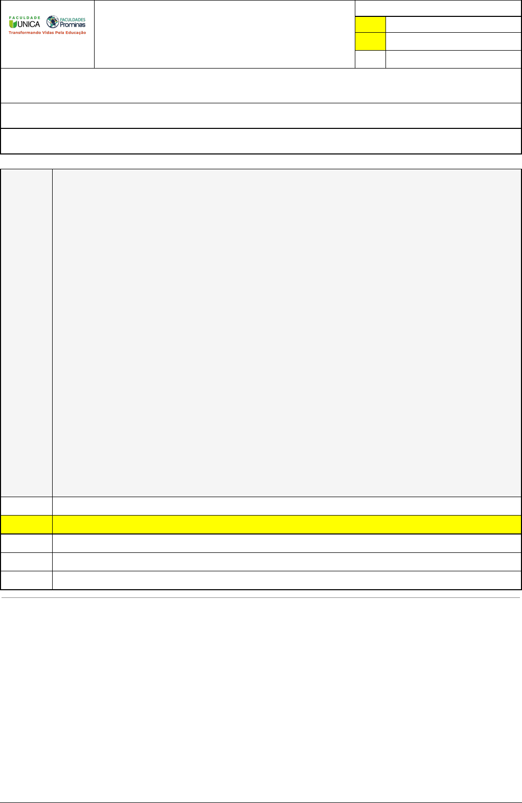 Pincel Atômico - 01/05/2023 17:50:10 1/4 LISANDRA MARIA KUZNIARSKI CAMINHO DO CONHECIMENTO Atividade finalizada em 01/05/2023 17:50:05 (tentativa: 2) LEGENDA Resposta correta na questão # Resposta correta - Questão Anulada X Resposta selecionada pelo Aluno Disciplina: CURRÍCULO, AVALIAÇÃO E ORGANIZAÇÃO DO TRABALHO PEDAGÓGICO NA EDUCAÇÃO ESCOLAR [capítulos - 2] - Avaliação com questões, com o peso total de 1,67 pontos Turma: Segunda Graduação: Segunda Graduação 6 meses - Licenciatura em Pedagogia - Grupo: FPD-FEV2022 - SGegu0A240323 [87684] Aluno(a): 91448312 - LISANDRA MARIA KUZNIARSKI - Respondeu 7 questões corretas, obtendo um total de 1,46 pontos como nota Questão 001 (Fepese – MPESC- 2014) O processo de planejamento participativo da escola vem ganhando importância na literatura acadêmica entre pesquisadores que defendem a descentralização do sistema educacional como um caminho para a democratização da gestão da educação e a melhoria da qualidade do ensino. Nesse sentido, é correto afirmar: I - A construção do planejamento participativo da escola está ancorada fundamentalmente nas relações de poder estabelecidas entre a comunidade escolar e os dirigentes do sistema educacional. II - O planejamento participativo tem por função modernizar os tempos e os espaços da escola, tendo como referência uma realidade em constante transformação social. III - A construção do planejamento participativo deve levar em conta que a escola possui vínculos institucionais com um determinado sistema escolar, ou seja, sua autonomia deve ser entendida de forma relacional, inserida em um contexto de interdependências. IV - A participação ativa da comunidade escolar, se constituindo como um coletivo que pensa a escola, favorece a construção de um planejamento no qual estejam presentes diferentes pontos de vista sobre a realidade escolar, possibilitando a interação entre famílias, professores, estudantes, funcionários e especialistas. V - O diálogo e o debate democrático são fundamentais para a produção de critérios coletivos na orientação do processo de planejamento participativo, pois significados comuns são estabelecidos corroborando para a identifcação destes na escola. Assinale a sequência correta. X A) São corretas apenas as afirmativas 2, 4 e 5. B) São corretas apenas as afirmativas 1, 2 e 3. C) São corretas apenas as afirmativas 3, 4 e 5. D) São corretas apenas as afirmativas 1, 3 e 4. E) São corretas apenas as afirmativas 2, 3 e 5. Pincel Atômico - 01/05/2023 17:50:10 2/4 Questão 002 (FUNCAB/2010 – adaptado) “O planejamento é uma tarefa docente que inclui tanto a previsão das atividades didáticas em termos da sua organização e coordenação em face dos objetivos propostos, quanto a sua revisão e adequação no decorrer do processo de ensino.” (LIBÂNEO, J. C. Didática. São Paulo: Cortez, 1994, p. 221). Analise as assertivas abaixo: I – O planejamento é um meio para se programar as ações docentes, mas é também um momento de pesquisa e reflexão intimamente ligado à avaliação. II – A ação de planejar é uma atividade consciente de previsão das ações docentes, não fundamentadas em opções político-pedagógicas, pois tem como referência permanente as teorias de aprendizagem. III – O planejamento escolar engloba três níveis: o plano da escola, o plano de ensino e o plano de aula. IV – O planejamento é iniciativa do diretor/gestor escolar a partir das necessidades administrativas e pedagógicas da escola e deve ser por ele avaliado. Assinale a alternativa que apresenta somente assertivas CORRETAS: X A) I e III. B) II, III e IV. C) I, II, III, IV e V. D) II e IV. E) III e IV Questão 003 O conceito de planejamento consiste no ato de criar e conceber antecipadamente uma ação, desenvolvendo estratégias programadas para atingir determinado objetivo. Pensando nisso a materialização do planejamento se dá por meio de: A) Reflexão rígida dos acontecimento X B) Planos, programas, projetos e correlatos. C) Ações objetivas D) Processo não alternativo E) Sem adaptações e mudanças Questão 004 (IF-MT/2014 - adaptado) O planejamento pedagógico pressupõe que o ato de ensinar e aprender requer esforço metódico e crítico do professor, no sentido de desvelar a compreensão de algo. Nessa perspectiva, são consideradas práticas docentes mediadoras: ( ) I - debate, uso de tecnologias digitais e proposição de exercícios que recorrem à memorização. ( ) II - diálogo, troca de experiências e proposição de situações desafiadoras que colocam o pensamento dos alunos em movimento. ( ) III - debate crítico e dialógico, uso de atividades repetitivas e aplicação de procedimentos já consagrados entre os saberes docentes. ( ) IV - provocação, disposição de objetos e situações e manutenção de relações já existentes entre os alunos e os conhecimentos a serem ensinados. Analise cada uma das assertivas acima. Para isso, use (V) se for verdadeira e (F) se for falsa. Em seguida, assinale a alternativa que apresenta a sequência CORRETA: A) V – F - F - V B) V - V- V- F C) F – F - V - V X D) F – V – F - F E) V – V – F -F Pincel Atômico - 01/05/2023 17:50:10 3/4 Questão 005 “Qualquer que seja o trabalho a ser realizado, seja em âmbito nacional, seja em uma pequena escola ou em uma sala de aula, as ações deverão ser intencionais, portanto, precisam ser planejadas para contribuir para a qualidade da educação”. Sobre o planejamento educacional, a afirmativa acima descrita A) Não confere com os planejamentos educacionais pois a educação não é planejada e sim objetivada. B) Não confere com a realidade de um planejamento. C) Confere com a realidade do planejamento, porém refere-se a outro propósito. D) Confere com a educação, mas serve apenas para planos de aula. X E) Confere com a educação em todos os âmbitos e sentidos dos planejamentos educacionais. Quest