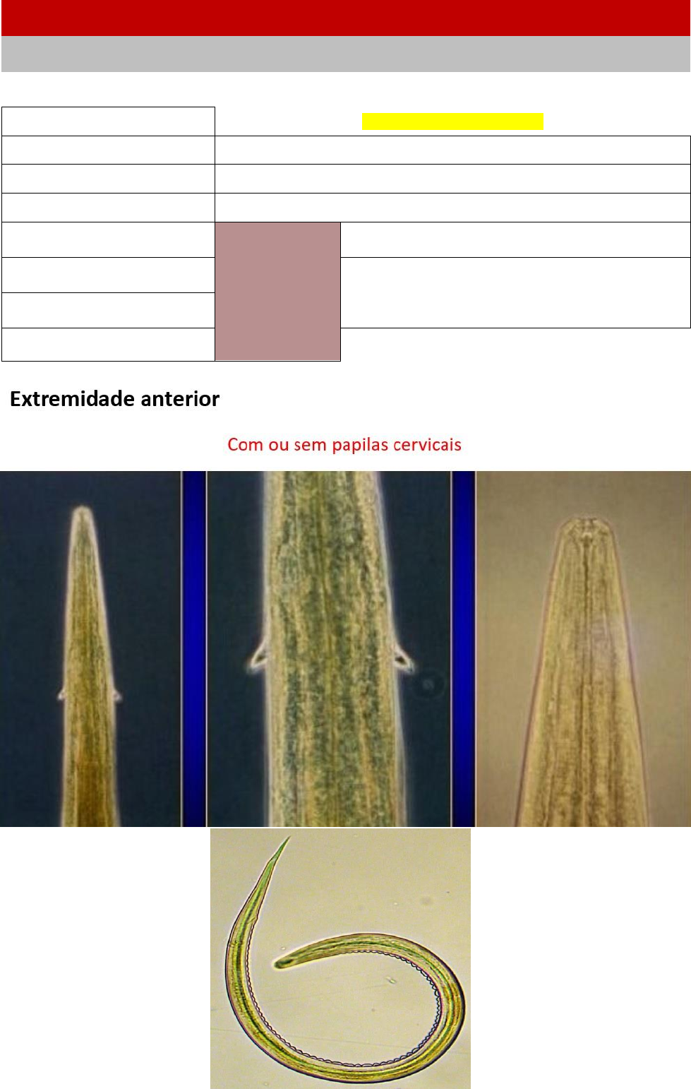 Espécie – Ostertagia – Nematóides Superfamília Strongylidea Família Trichostrongylidae Reino: Animalia Obs.: muito fino na lâmina Filo: Nematoda Hospedeiros: Ruminantes Classe: Secernentea Órgão de eleição: Abomaso Ordem: Strongylida Sexo: Macho Superfamília: Strongylidea Aspectos morfólogicos (3) Nematóides com ou sem papilas cervicais pequenas no segundo terço do esôfago; Família: Trichostrongylidae ♂ Com lóbulo dorsal da bolsa simétrico, com gubernáculo; Gênero: Ostertagia Nematóides com espículos terminando bifurcado ou trifurcado; Espécie: Ostertagia Com papilas Sem papilas Cavidade bucal não diferenciada