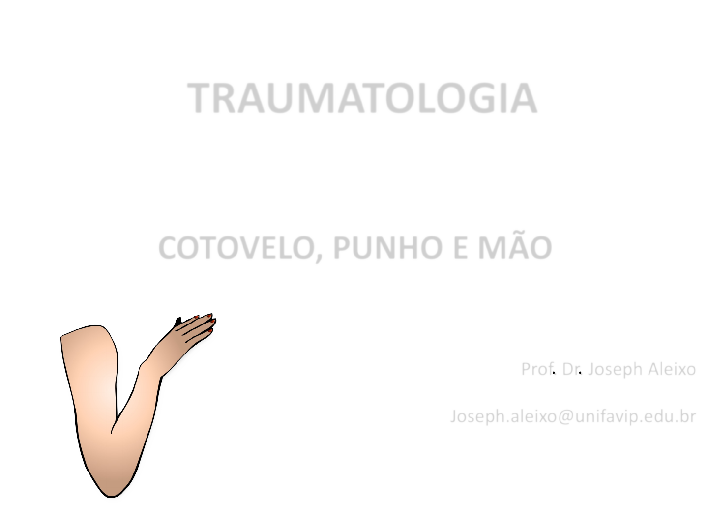 TRAUMATOLOGIA COTOVELO, PUNHO E MÃO Prof. Dr. Joseph Aleixo Joseph.aleixo@unifavip.edu.br Cotovelo Complexo do cotovelo Cotovelo Radiulnar Estruturas Fraturas de condileanas Tratamento fixação por fios de kirchnner Lesões cotovelo Fratura olécrano Fratura do olécrano Tratamento Fratura cabeça do rádio Fratura cabeça do rádio Tratamento Epicondilite Tratam ento conservador Tratamento cirúrgico Bursite olecraniana Im pactação Compressão ulnar Sinal de Tinel Compressão radial Compressão mediano Síndrom e do pronador redondo Punho Cistos Sinoviais - Na maioria das vezes, as causas são desconhecidas - Lesões por esforço repetitivo - Traumas articulares Fratura de colles Zona distal do rádio fratura de smith Fratura de hutchinson Escafóide comprimido, fratura O processo estiloide do rádio Fratura/luxação de Barton Fratura + Deslocamento Rádio Carpo Fratura de escafoide Fratura distal da Ulna Síndrome do Canal de Guyon Síndrome do túnel do carpo Mão Fraturas da mão Dedo em gatilho Tenossinovite Estenosante (Tendão flexor preso) Luxação das interfalangianas Síndrome Dequervain M Adutor longo M Extensor Curto Espessamento inflamatório da bainha tendínea do extensor curto e abdutor longo do polegar. Detalhar ficha de avaliação...