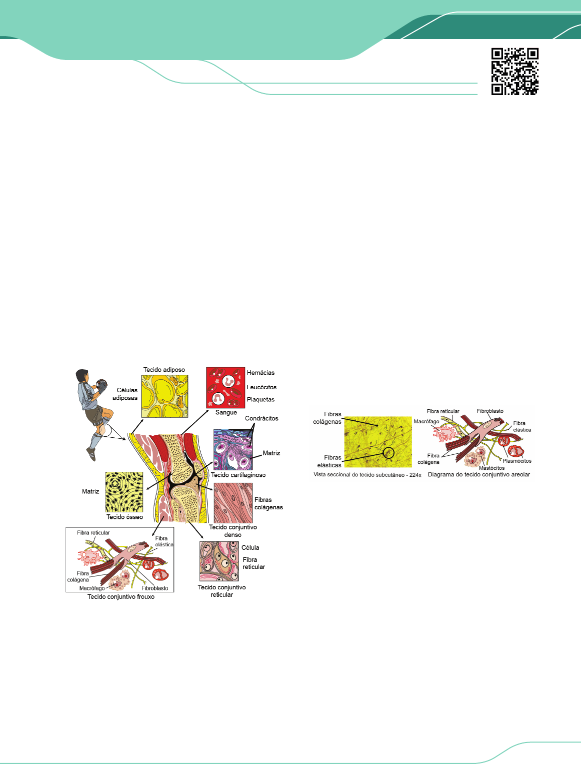 BIOLOGIA I PRÉ-VESTIBULAR 131SISTEMA PRODÍGIO DE ENSINO TECIDO CONJUNTIVO PROPRIAMENTE DITO E ADIPOSO19 Como visto no módulo anterior, diferentes tecidos biológicos são caracterizados por células com diferentes morfologias e matriz extracelular com diferente composição. Neste módulo, estudaremos o tecido conjuntivo e alguns de seus subtipos. TECIDO CONJUNTIVO Os diferentes tecidos biológicos cumprem diferentes funções. Assim, podemos resumidamente imaginar que o tecido epitelial atue apenas no revestimento, o tecido muscular seja responsável pela movimentação e o nervoso coordene o funcionamento dos demais. O tecido conjuntivo, por sua vez, destaca-se pela capacidade de integrar, ou conectar, todos estes tecidos. Existem diferentes subtipos de tecido conjuntivo: tecido conjuntivo propriamente dito (TCPD), tecido adiposo, cartilaginoso, ósseo, sanguíneo e hematopoiético. Assim, ainda que todos tenham características em comum, nosso foco é conseguir diferenciá-los a partir de suas particularidades. Estes tecidos caracterizam-se morfologicamente por apresentarem diversos tipos de células, separadas por abundante material intercelular sintetizado por elas. São classificados de acordo com a importância de seus constituintes, propriedades químicas e físicas e pelas funções resultantes. São originados do mesoderme, mais propriamente do mesênquima. TECIDO CONJUNTIVO PROPRIAMENTE DITO (TCPD) Apresenta grande quantidade de matriz extracelular sintetizada pelas células que nela se encontram dispersas. Além disso, é marcado pela presença de vasos sanguíneos (tecido vascularizado) que nutrem tecidos avasculares como o tecido epitelial e o tecido cartilaginoso. No TCPD encontram-se células características pela síntese de matriz e também pela defesa do tecido. Os principais tipos celulares residentes deste tecido são: • Fibroblasto: célula mais comum do tecido conjuntivo. Principal responsável pela formaçãodas fibras proteicas presentes na matriz extracelular. • Macrófagos: células com grande capacidade de fagocitose, deslocando-se pelo conjuntivo sempre que houver sinais de infecção no organismo. • Mastócitos: são células ricas em granulações citoplasmáticas e mitocôndrias, produtoras de heparina (substância anticoagulante) e histamina (substância vasodilatadora). • Plasmócitos: células responsáveis pela produção de anticorpos. As proteínas sintetizadas pelo fibroblasto (célula ativa) são secretadas e, juntamente à água e sais minerais, constituem a matriz extracelular ou substância intercelular. Esta matriz abundante conecta as células e dá forma ao tecido. As principais fibrasencontradasnoTCPDsão: • Fibras colágenas: constituídas por colágeno, apresentam elevada resistência e baixa elasticidade. • Fibras elásticas: constituídas por elastina, apresentam elevada elasticidade e baixa resistência. • Fibras reticulares: formadas pela interação entre uma grande variedade de proteínas, são tipicamente voltadas à sustentação. TIPOS DE TCPD Diferentes especialidades de TCPD são encontradas em nosso corpo. Sua caracterização diz respeito, principalmente, à quantidade e orientação das proteínas presentes na matriz extracelular. Assim, podemos separar o TCPD em: • Frouxo: delicado, flexível e pouco resistente a tra ções, sendopobreemfibras.Preencheespaçosentreasfibrase feixes musculares, serve de apoio para os epité lios e forma uma camada em torno dos vasos sanguíneos e linfáticos, com um número considerável de células. • Denso: é um tecido menos flexível que o frouxo e muito mais resistente a trações, havendo predomínio acentuado defibras,principalmenteascolágenas. – Denso modelado: fibras proteicas dispostas em orientação paralela para resistência à tração em um único sentido (ex: tendões). – Denso não modelado:fibrasproteicascomdisposição desorganizada e aleatória com resistência à tração em qualquer sentido (ex: derme). PRÉ-VESTIBULAR132 BIOLOGIA I 19 TECIDO CONJUNTIVO PROPRIAMENTE DITO E ADIPOSO SISTEMA PRODÍGIO DE ENSINO TECIDO ADIPOSO É formado por grandes quantidades de células volu mosas cheias de gordura chamadas de adipó citos. Essas células podem ser encontradas isoladas ou em pequenos grupos no tecido conjuntivo comum, porém a maioria delas agrupa-se no tecido adiposo espalhado pelo corpo. Como a gordura acumulada relaciona-se ao estoque de energia, quando nossa ingestão calórica supera o gasto energético diário, acumulamos energia sob a forma de gordura, aumentando o volume dos adipócitos. Por lidarmos com células em elevado grau de diferenciação, raramente observamos proliferação de adipócitos, por outro lado, sua morte também não é comum. Assim, o emagrecimento, relacionado a um consumo energético diário que supera a ingestão calórica, pode ser observado pela redução do volume e não pela morte destas células. O tecido adiposo pode ser encontrado em diferentes regiões do corpo. Como é possível observar na figura a seguir, toda a hipoderme – camada localizada abaixo da pele – é formada por tecido adiposo que pode ser mais ou menos espesso. Além disso, também encontramos grande quantidade de tecido adiposo junto aos órgãos viscerais. Por ser basicamente um depósito de gordura, o tecido adiposo acaba apresentado como funções, as próprias funções destas substâncias: • Reservatório energético. • Proteção térmica. • Proteção mecânica. PROTREINO EXERCÍCIOS 01. Descreva as principais características do TCPD. 02. Aponte a diferença entre tecido frouxo e denso. 03.ClassifiqueostiposdecélulasdoTCPD. 04. Aponte duas funções do tecido adiposo. 05. Diferencie tecido denso modelado do denso não-modelado. PROPOSTOS EXERCÍCIOS 01. (ENEM (LIBRAS)) O diclorodifeniltricloroetano (DDT) é o mais conhecido dentre os inseticidas do grupo dos organoclorados, tendo sido largamente usado após a Segunda Guerr