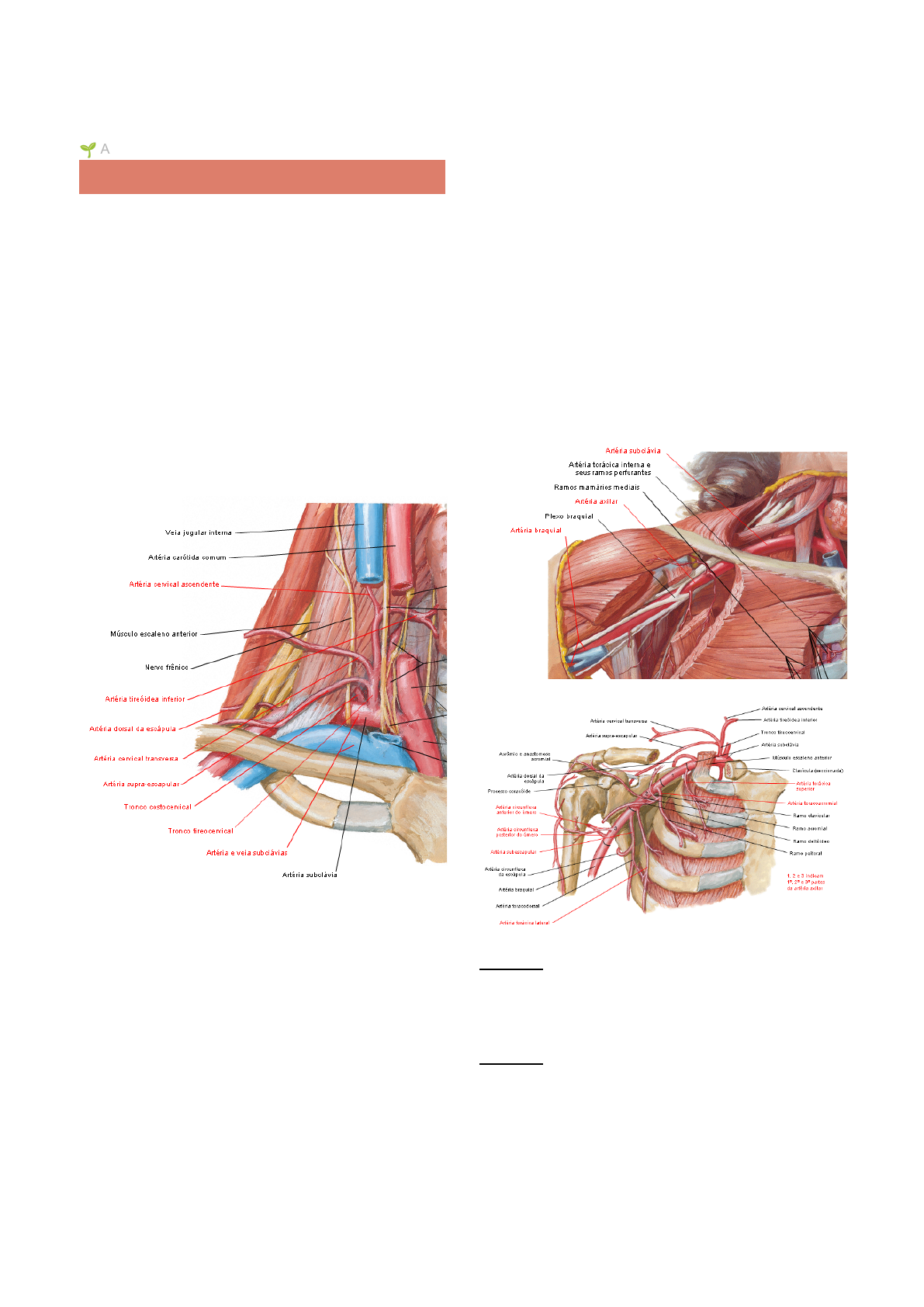 Vascularização do membro superior | Taíssa N. Veiga | Medicina UFAL Arapiraca, turma 2021.2 | 2º período VASCULARIZAÇÃO DO MEMBRO SUPERIOR 🌱 Anotações de aula + complementos com o Moore DRENAGEM ARTERIAL A. SUBCLÁVIA e ramos A artéria subclávia direita sai do tronco braquiocefálico, enquanto a a. subclávia esquerda sai diretamente do arco da aorta, em um trajeto mais posterior que a direita. A artéria subclávia direita tem seu trajeto posterior à v. subclávia A a. subclávia passa no hiato escalênico (entre o m. escaleno anterior e o m. escaleno médio) e é dividida em três porções pelo m. escaleno anterior: - porção pré-escalênica - porção retro-escalênica - porção pós-escalênica A a. supraescapular tem relação íntima com a borda posterior da clavícula Ramos: ● a. vertebral ● a. torácica interna ● tronco tireocervical ○ a. tireóidea inferior ○ a. cervical ascendente ○ a. cervical transversa ■ a. dorsal da escápula ● tronco costocervical ○ a. intercostal suprema ○ a. cervical profunda A. AXILAR e ramos Limites: ● superior: borda lateral da 1ª costela ● inferior: borda inferior do m. redondo maior¹ ¹alguns autores consideram a borda inferior do m. peitoral maior A a. axilar segue posteriormente pelo m. redondo maior até o braço e torna-se a a. braquial Dividida em três porções pelo m. peitoral menor - pré-peitoral - retro-peitoral - pós-peitoral 1ª porção ● a. torácica superior ○ transita entre o peitoral maior e o peitoral menor, os vascularizando 2ª porção ● a. toracoacromial ○ ramos clavicular, deltoídeo, acromial e peitoral ● a. torácica lateral ○ segue a borda do tórax ○ transita entre o m. peitoral maior e o m. serrátil anterior ○ junto ao n. torácico longo, forma o feixe vasculonervoso do m. serrátil anterior 1 Vascularização do membro superior | Taíssa N. Veiga | Medicina UFAL Arapiraca, turma 2021.2 | 2º período 3ª porção ● a. subescapular ○ entre o m. latíssimo do dorso e o m. serrátil anterior ○ envia ramos para o m. subescapular ○ se bifurca em a. circunflexa da escápula e a. toracodorsal (+ n. toracodorsal → pedículo vasculonervoso do m. latíssimo do dorso) ● a. circunflexa anterior do úmero ○ costuma ser menos calibrosa que a posterior ○ descreve um trajeto circular em volta do colo cirúrgico do úmero ■ ramo ascendente → irriga a cabeça e cápsula articular ● a. circunflexa posterior do úmero ○ segue posteriormente em relação ao colo cirúrgico do úmero ○ atravessa o espaço quadrangular junto ao n. axilar Relações - n.. axilar acompanha a. circunflexa posterior do úmero - n. torácico longo acompanha a a. torácica lateral - n. toracodorsal acompanha a a. toracodorsal Espaços quadrangular e triangular, e hiato tricipital Limites: ● m. redondo menor ● m. redondo maior ● cabeça longa do m. tríceps braquial ● úmero Conteúdo: Espaço quadrangular ● n. axilar ● a. circunflexa posterior do úmero Espaço triangular ● a. circunflexa da escápula Hiato tricipital ● a. braquial profunda ● n. radial A. BRAQUIAL e ramos Limites: ● superior: borda do m. redondo maior ● inferior: fossa cubital A a. braquial é relativamente superficial e palpável em todo o seu trajeto Relação íntima com o m. coracobraquial e com a cabeça curta do m. bíceps braquial ● a. braquial profunda ○ segue o n. radial ○ ramos para o tríceps ○ se bifurca em: ■ a. colateral média ■ a. colateral radial As aa. colateral ulnar superior e inferior são ramos diretos da artéria braquial ● a. colateral ulnar superior ○ durante seu trajeto, se posterioriza ○ se anastomosa posteriormente ao epicôndilo medial ● a. colateral ulnar inferior ○ se anastomosa anteriormente ao epicôndilo medial 2 Vascularização do membro superior | Taíssa N. Veiga | Medicina UFAL Arapiraca, turma 2021.2 | 2º período Relações - n. radial acompanha a a. braquial profunda - n. mediano acompanha a a. braquial - n. ulnar acompanha a a. colateral superior no sulco do n. ulnar A a. braquial também emite ramos colaterais musculares para os mm. da loja anterior do braço e também para o deltóide Anastomoses do cotovelo ● entre as colaterais ● entre as recorrentes As mais laterais ocorrem entre as radiais As mais mediais ocorrem entre as ulnares As posições podem ser anteriores ao epicôndilo ou posteriores ao epicôndilo ● A a. colateral radial se anastomosa com a a. recorrente radial anteriormente ao epicôndilo lateral ● A a. colateral média se anastomosa com a a. recorrente interóssea posteriormente ao epicôndilo lateral ● A a. colateral ulnar inferior se anastomosa com a a. recorrente ulnar anterior anteriormente ao epicôndilo medial ● A a. colateral ulnar superior se anastomosa com a a. recorrente ulnar posterior A. ULNAR, A. RADIAL e ramos Ao nível da fossa cubital, um pouco abaixo dos epicôndilos do úmero, a artéria braquial se bifurca em a. ulnar e a. radial A a. radial é mais lateral e superficial, enquanto a a. ulnar é mais medial e profunda A a. radial corre entre os mm. braquiorradial, flexor radial do carpo e pronador redondo A a. ulnar é profunda ao m. pronador redondo e ao m. flexor superficial dos dedos A. ulnar A a. ulnar entra na mão anteriormente ao retináculo dos mm. flexores entre o osso pisiforme e o hâmulo do hamato através do túnel ulnar ● aa. recorrentes ulnares posterior e anterior ● a. interóssea comum ○ a. interóssea anterior ■ corre entre os mm. flexor profundo dos dedos e flexor longo do polegar ■ começa anterior e se posterioriza ao nível do pronador quadrado ○ a. interóssea posterior ■ termina fazendo anastomose com a a. interóssea anterior e com o arco carpal dorsal arterial Relações - ramo profundo do n. radial → n. interósseo posterior acompanha a a. interóssea posterior - n. mediano → n. interósseo anterior acompanha a a. interóssea anteri