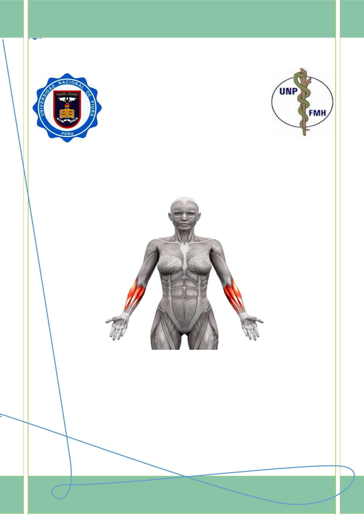 [ESCUELA DE MEDICINA HUMANA] Universidad Nacional de Piura 1 UNIVERSIDAD NACIONAL DE PIURA FACULTAD DE CIENCIAS DE LA SALUD ESCUELA DE MEDICINA HUMANA ________________________________________ “AÑO DE LA LUCHA CONTRA LA CORRUPCIÓN E IMPUNIDAD” ANATOMÍA DEL CODO Y EL ANTEBRAZO - CALLE QUINTANA FIDEL SEBASTIAN - CHIROQUE CELI KASSANDRA HADALY CICLO III MORFOFISIOLOGÍA I UNIDAD I: SISTEMA MUSCULOESQUELÉTICO Piura – 2019 [ESCUELA DE MEDICINA HUMANA] Universidad Nacional de Piura 2 INTRODUCCIÓN El antebrazo es una región del cuerpo humano limitada por su parte proximal con el brazo mediante la articulación del codo y por su extremo distal por la mano limitada por la articulación radiocarpiana y cubito carpiana, pertenece al miembro superior junto con las partes antes mencionadas, y está formado por los huesos cúbito y radio. El tipo de antomía que se usará en el presente trabajo es la anatomía regional o topográfica, ya que estudiaremos todo lo que respecta a antebrazo, sea sus huesos, músculos, vasos, nervios, entre otros. Ha sido detallado profundamente cada aspecto anatómico de esta región desde el punto de vista de estudiantes de segundo año de la escuela de medicina humana con el afán de que el lector le resulte más fácil el entender la anatomía del antebrazo, a continuación se presentará lo predicho. [ESCUELA DE MEDICINA HUMANA] Universidad Nacional de Piura 3 INDICE 1. INTRODUCCIÓN 2. CAPITULO I: ANATOMÍA DEL CODO, CÚBITO Y RADIO 2.1. GENERALIDADES DEL CODO 2.2. ANATOMÍA DEL CÚBITO 2.3. ANATOMÍA DEL RADIO 3. ARTICULACIONES DEL CODO Y SUS ELEMENTOS 3.1. SUPERFICIES ARTICULARES 3.2. MEDIOS DE UNIÓN 3.2.1. CAPSULA ARTICULAR 3.2.2. LIGAMENTOS 3.2.3. CAPSULA SINOVIAL 4. REGIÓN DEL PLIEGUE DEL CODO 5. REGIÓN OLECRANEANA 6. FUNCIÓN Y MOVIMIENTOS DEL CODO 7. ANTEBRAZO 7.1. LIMITES DEL ANTEBRAZO 7.2. ARTICULACIONES RADIOCUBITALES 8. MÚSCULOS DEL ANTEBRAZO 8.1. COMPARTIMIENTO ANTERIOR 8.2. COMPARTIMIENTO POSTERIOR 8.2.1. PORCIÓN LATERAL DEL COMPARTIMIENTO POSTERIOR 8.2.1. PORCIÓN ANTERIOR DEL COMPARTIMIENTO POSTERIOR 9. IRRIGACIÓN E INERVACIÓN DE LA REGIÓN ANTERIOR DEL ANTEBRAZO 9.1. ARTERIAS 9.2. VENAS 9.3. NERVIOS 10. IRRIGACIÓN E INERVACIÓN DE LA REGIÓN POSTERIOR DEL ANTEBRAZO 10.1. ARTERIAS 10.2. VENAS 10.3. NERVIOS 11. BIBLIOGRAFÍA [ESCUELA DE MEDICINA HUMANA] Universidad Nacional de Piura 4 2. ANATOMÍA DEL CODO, CÚBITO Y RADIO 2.1. GENERALIDADES DEL CODO La articulación del codo es una articulación sinovial en bisagra que une el esqueleto del brazo con el del antebrazo. Está formada por la tróclea del húmero, la escotadura troclear del cúbito y la cabeza del radio. El esqueleto del antebrazo está formado por dos huesos, el más interno recibe el nombre de cúbito, mientras que el externo radio. 2.2 ANATOMIA DEL CÚBITO Es un hueso largo, par y no simétrico, situado en la parte interna del antebrazo. Como en todos los huesos largos, se considera un cuerpo y dos extremos: superior e inferior. Extremo superior: En la cara anterior del cúbito encontramos a la apófisis coronoides, la cual recibe a la tróclea del húmero, y es recibida por la fosa coronoidea del húmero en el movimiento de flexión del antebrazo. En la cara posterior encontramos al olecranon, se inserta en la fosa del olecranon del húmero y constituye la prominencia dorsal del codo. [ESCUELA DE MEDICINA HUMANA] Universidad Nacional de Piura 5 Extremo inferior: Está formado por la cabeza, que está separada de la muñeca por un disco fibrocartilaginoso. En la parte posterior del extremo distal del cúbito se observa una pequeña apófisis estiloides, ésta actúa como sitio de inserción para el ligamento colateral de la muñeca. Inserciones musculares: Vista anterior de la anatomía e inserciones del cúbito izquierdo. [ESCUELA DE MEDICINA HUMANA] Universidad Nacional de Piura 6 Vista posterior de la anatomía e inserciones del cúbito izquierdo Extremo superior: Apofisis coronoide o Braquial anterior o Flexor superficial de los dedos o Flexor profundo de los dedos o Pronador redondo o Flexor largo del pulgar(inconstante) Olécranon o Triceps Braquial o Cúbital anterior o Ancóneo Cuerpo del hueso: Cara anterior o Flexor profundo de los dedos o Pronador cuadrado Cara posterior o Ancóneo o Cúbital posterior o Supinador corto o Abductor largo del pulgar [ESCUELA DE MEDICINA HUMANA] Universidad Nacional de Piura 7 o Extensor corto del pulgar o Extensor largo del pulgar o Extensor del índice Cara interna o Flexor profundo de los dedos Borde posterior o Ancóneo o Cúbital posterior o Cúbital anterior o Flexor profundo de los dedos 2.3 ANATOMIA DEL RADIO El radio es un hueso largo, par y no simétrico, situado en la región lateral o externa del antebrazo, por fuera del cúbito, es decir del lado del pulgar. Como en todos los huesos largos, el radio consta de un cuerpo y dos extremos, superior e inferior. Extremo superior: Presenta una cabeza con forma de disco que se articula con el cóndilo del humero y con la escotadura radial del cúbito. Por debajo de la cabeza hay una región más estrecha, el cuello y por debajo de éste, hacia el extremo medial del hueso, se observa un área denominada tuberosidad del radio, punto de inserción para los tendones del músculo bíceps braquial. Extremo inferior o carpiano: Es la parte más voluminosa del hueso [ESCUELA DE MEDICINA HUMANA] Universidad Nacional de Piura 8 El cuerpo del radio se ensancha distalmente hasta formar una apófisis estiloides en la porción lateral del hueso, que puede palparse cerca al pulgar. La apófisis estiloides actúa como punto de inserción tanto para el músculo braquiorradial (supinador largo) como para el ligamento colateral radial de la muñeca. Inserciones musculares: el radio presta inserción a 10 músculos. Vista posterior de las inserciones del radio izquierdo. Vista anterior de las inserciones del radio izquierdo. [ESCUELA DE MEDICINA HUMANA] Universidad Nacional de Piura 9 Cara ant