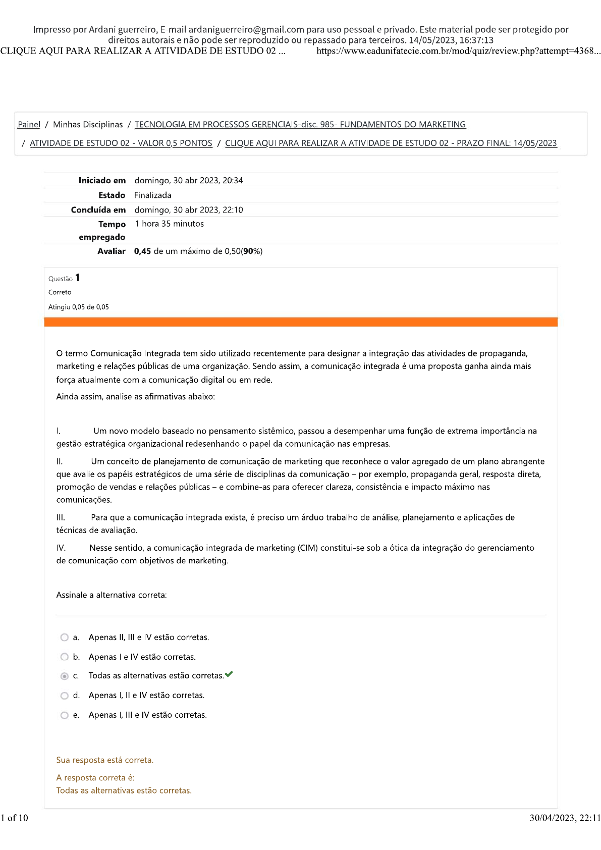Sobre as características Básicas para seu Marketing Pessoal, analise as seguintes assertivas: I- Confiança: Ter segurança ao se express...