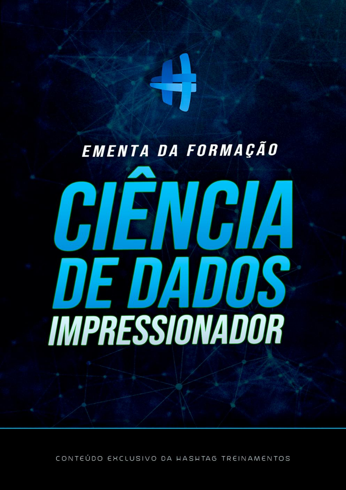 CIÊNCIA DE DADOS IMPRESSIONADOR I HASHTAG TREINAMENTOS Esse será uma formação em Ciência de Dados. Usamos o conceito de formação pois vamos te ensinar todos os conteúdos necessários para que você consiga seguir a carreira de cientista de dados ou simplesmente utilizar os conhecimentos de ciência de dados para melhorar qualquer processo na sua empresa, o que vai te ajudar a se destacar na sua carreira. Isso inclui desde técnicas de alinhamento com o negócio até conceitos estatísticos importantes. Toda a formação se baseia nos 3 principais pilares de ciência de dados que são: negócios, estatística e python. Conceitualmente, Ciência de Dados é uma área multidisciplinar que busca analisar o negócio usando tecnologia e estatística. Hoje em dia temos uma abundância de dados e podemos usar esses dados para encontrar padrões que estavam desconhecidos e, com esses padrões, fazer sugestões para o negócio e até inferências sobre o futuro. Ciência de Dados está presente desde a autorização da sua transação do cartão de crédito na padaria até se o banco vai aprovar seu empréstimo para comprar uma casa. 01 PROGRAMA: CIÊNCIA DE DADOS IMPRESSIONADOR A formação Ciências de Dados Impressionadora possui atualmente 56 horas gravadas, com diversos conteúdos planejados. Focamos o curso em módulos totalmente direcionados a situações onde você já vai conseguir aplicar de forma prática desde o início do curso. No Impressionador, temos uma equipe de experts focada no suporte, portanto conseguimos tirar dúvidas além do conteúdo, incluindo coisas que você precise fazer no seu trabalho (não é uma consultoria, então não fazemos com você, mas conseguimos tirar dúvidas de qualquer ferramenta que você esteja construindo sim), além de apostila completa que será disponibilizada nas próximas semanas, exercícios extras e atualização constante. Nas próximas páginas você pode visualizar a ementa completa do curso. Apostila e Suporte3 Ementa e carga horária2 Proposta e Objetivo do Curso1 CIÊNCIA DE DADOS IMPRESSIONADOR I HASHTAG TREINAMENTOS O que é Ciência de Dados? 1. O que é ciência de dados? 2. O que eu quero responder? 3. Os pilares da Ciência de Dados 02 Módulo 1 Python Básico 1. Explicando esse módulo 2. Instalando o Python no Windows 3. Problemas na Instalação - Resolvido 4. Mac, Linux e Google Colab 5. Criando seu Primeiro Programa 6. Variáveis 7. Tipos de Variáveis 8. Estrutura do if - Condições no Python 9. Elif 10. Comparadores 11. And e Or 12. Listas em Python 13. Índices em Lista, Consultando e Modificando Valores Módulo 3 Introdução a Ciência de Dados 1. O que é ser um cientista 2. Framework para Ciência de Dados 3. Resumindo ciência de dados 4. Python como ferramenta de Data Science 5. O mercado de trabalho para um cientista de dados Módulo 2 CIÊNCIA DE DADOS IMPRESSIONADOR I HASHTAG TREINAMENTOS 03 Módulo 3 Python Básico 14. Estrutura de Repetição For 15. For each - Percorrer cada item de uma lista 16. For e If 17. Estrutura While 18. Loop Infinito no While 19. Tuplas 20. Unpacking em Tuplas 21. Dicionários em Python 22. Pegar item Dicionário e Verificar Item Dicionário 23. Range 24. Functions no Python 25. Retornar um valor na Function 26. Argumentos e Parâmetros numa Function 27. (Opcional) Aplicação em um Exemplo de argumento 28. O que são Módulos e qual a importância CIÊNCIA DE DADOS IMPRESSIONADOR I HASHTAG TREINAMENTOS Pandas e Numpy: As bibliotecas básicas para Ciência de Dados 1. Comparando Pandas e Excel 2. Comparando Pandas e Excel na prática 3. A importância do NumPy 4. Propriedades de uma array 5. Trabalhando com arrays 6. Importando e visualizando uma base no Pandas 7. Entendendo os conceitos de DataFrame e Series 8. Tipos de dados, valores nulos e seleção de colunas 9. Informações estatísticas e filtros na base 10. Criando gráficos básicos no Pandas 04 Módulo 4 Projeto 1 - Analisando o engajamento do Instagram 1. Explicando o projeto 2. Importando e tratando a base com Pandas 3. Tratando valores nulos da coluna Carrossel 4. Analisando informações estatísticas e 5 melhores / 5 piores publicações 5. O group by no pandas e a análise do engajamento 6. Analisando Tags: Separando valores de uma coluna em linhas diferentes (split e explode) 7. Analisando Tags: Analisando o engajamento por Tags 8. Analisando Tags: Finalizando a análise da nossa base (analisando tag, pessoas e campanhas) Módulo 5 CIÊNCIA DE DADOS IMPRESSIONADOR I HASHTAG TREINAMENTOS Introdução à Estatística 1. Introdução a Estatística e Estatística Descritiva 2. Tabela de frequência e histograma 3. Entendendo o conceito da média 4. Mediana e sua relação com a média 5. Usando Python para entender a relação entre média e mediana 6. Média, mediana e moda 7. Entendendo de forma prática a relação entre média, mediana e moda 05 Módulo 6 Matplotlib: Criando gráficos em Python 1. Apresentando o Matplotlib 2. Introdução ao Matplotlib 3. Usando a documentação para criar nosso primeiro gráfico (gráfico de linha) 4. (Opcional) Entendendo a documentação do Matplotlib 5. Usando gráficos (de linha) para entender os dados (máximo, mínimo e média mensal de curtidas) 6. Filtrando a base usando o contains (e fillna para tratar valores vazios) 7. Criando e ajustando o visual (rotacionando o eixo x) de um gráfico de barras 8. Usando o annotate para adicionar rótulos de dados no gráfico 9. Criando um scatter plot usando apenas a documentação 10. (Opcional) Revisando o datetime e o astype Módulo 7 CIÊNCIA DE DADOS IMPRESSIONADOR I HASHTAG TREINAMENTOS Boas práticas para apresentação de dados 1. Introdução aos conceitos básicos de apresentação de dados 2. Reduzindo o esforço para entender sua apresentação (eixo Y começando no zero e eixos secundários) 3. Melhorando o seu visual (Proximidade e Similaridade) 4. Melhorando o seu visual (Acercamento, Fechamento, Continuidade e 