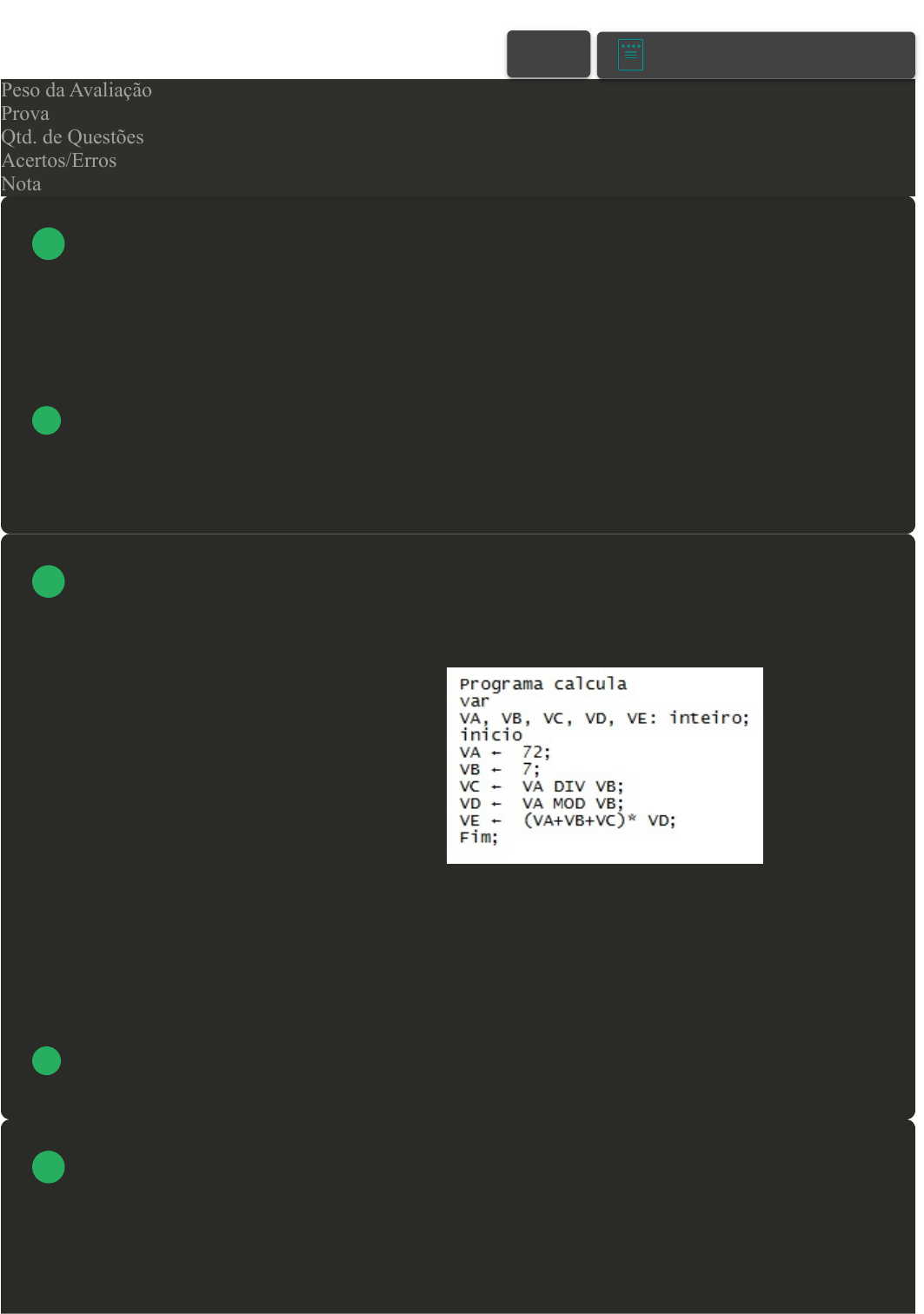 ( ) Ao final da execução do algoritmo, é apresentada uma mensagem contendo a soma das três notas
