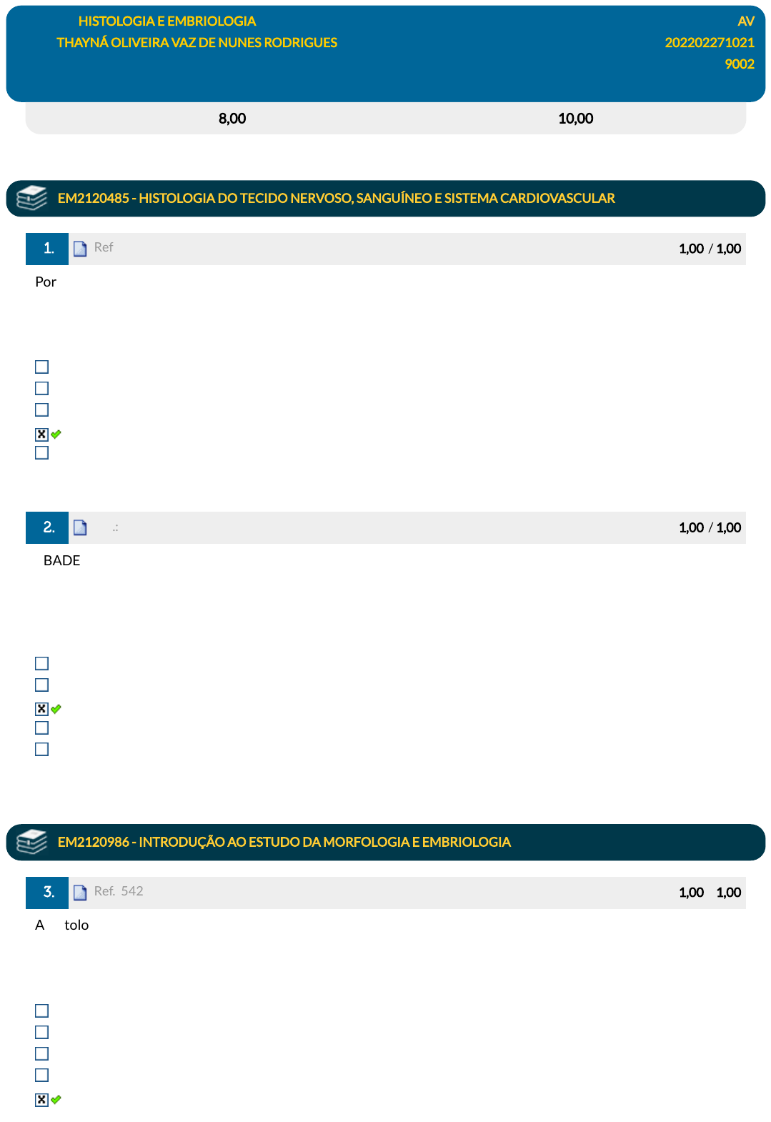 Disciplina: HISTOLOGIA E EMBRIOLOGIA AV