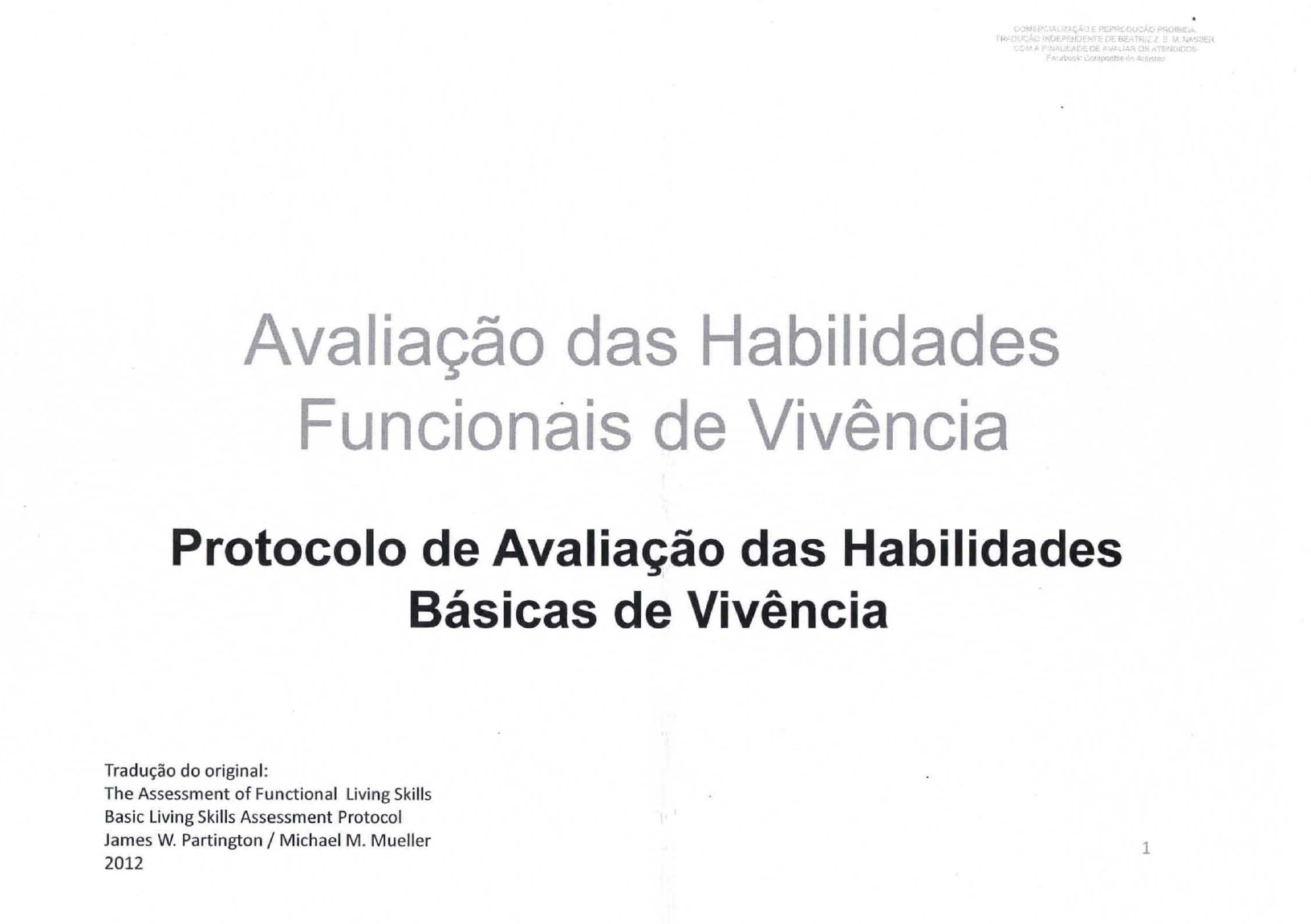 Protocolo de Avaliação das Habilidades