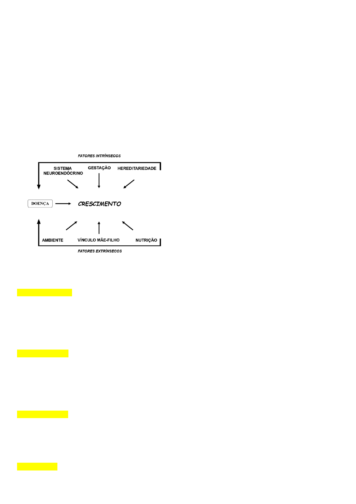 apg 23 – DESENVOLVIMENTO 1) Compreender os benefícios do aleitamento materno. 2) Entender a avaliação nutricional, fases de crescimento e fatores que influenciam esse processo até a idade escolar. 3) Estudar o desenvolvimento neuropsicomotor até a idade escolar. FASES DO CRESCIMENTO Crescimento Físico: Aspectos Gerais O processo de crescimento é complexo e multifatorial, englobando a composição genética do indivíduo e fatores hormonais, nutricionais e psicossociais. Apesar disso, a criança geralmente cresce de maneira muito previsível.O desvio desse padrão normal de crescimento pode ser a primeira manifestação de uma grande variedade de doenças, tanto endócrinas como não endócrinas. Portanto, é de extrema importância a avaliação frequente e acurada do crescimento de uma criança. ● Fases do crescimento normal O crescimento ocorre de maneira diferente em cada fase da vida, como resumimos a seguir. Fase intra-uterina A média da velocidade de crescimento (VC) do feto é de 1,2 a 1,5 cm/sem, mas apresenta grandes variações. A VC no meio da gestação é de 2,5 cm/sem e diminui para quase 0,5 cm/sem logo antes do nascimento. O fi nal da gestação é caracterizado, portanto, por baixa velocidade de crescimento e intenso ganho ponderal. Os hormônios que influenciam o crescimento nessa fase são: insulina, lactogênio placentário (ação semelhante ao GH), somatotrofina coriônica e somatomedinas. Fase do lactente A velocidade de crescimento continua elevada, porém é menor do que na fase intrauterina. O primeiro ano de vida é caracterizado por maior VC (cerca de 25 cm/ano), sobretudo nos primeiros seis meses, a qual se reduz a partir do segundo ano (15 cm/ano). Nessa fase, os principais fatores implicados no crescimento da criança são os nutricionais e ambientais; os fatores genéticos e o hormônio de crescimento têm menor atuação. Portanto, na fase do lactente o padrão familiar de estatura tem pouca importância no crescimento. Fase pré-púbere Período entre o terceiro ano de vida e o início da puberdade. Caracteriza-se por crescimento mais estável, de aproximadamente 5-7 cm/ano. Nessa fase, os fatores genéticos e hormonais (hormônio de crescimento) têm maior relevância. É importante lembrar que a VC, apesar de mais estável, também sofre oscilações. Portanto, a avaliação em curtos períodos pode levar a erro. Fase puberal O crescimento puberal ocorre mais cedo nas meninas do que em meninos, porém o estirão puberal nos meninos é maior. Nessa fase, a aceleração do crescimento está relacionada, principalmente, aos esteroides sexuais e ao hormônio de crescimento. O primeiro sinal puberal no menino é o crescimento testicular, que já pode se iniciar a partir dos 9 anos, quando o testículo atinge 4 cm3 no orquidômetro de Prader. Na menina, o primeiro sinal puberal é aparecimento do broto mamário a partir dos 8 anos. A menarca deve ocorrer cerca de 2 a 2,5 anos após o início da puberdade. O acompanhamento dos adolescentes se dá pelo estadiamento, segundo os critérios de Tanner para mama, genital masculino e pilificação púbica.3 A Tabela 2 compara puberdade precoce e atraso puberal. Fase puberal final Caracterizada por crescimento lento, de cerca de 1 a 1,5 cm/ano, sobretudo na região do tronco, com duração média de três anos. PADRÕES NORMAIS DE CRESCIMENTO DO NASCIMENTO ATÉ A ADOLESCÊNCIA: Avaliação do crescimento estatural normal A história clínica é fundamental na avaliação do crescimento. Deve-se detalhar aspectos da gestação, condições de parto (anoxia neonatal, parto pélvico ou transverso), peso e comprimento ao nascimento e anormalidades neonatais, como icterícia prolongada e hipoglicemia neonatal sem causa aparente. História de traumatismo cranioencefálico (TCE) deve ser pesquisada ativamente, pois o TCE está relacionado a disfunção hipotálamo-hipofi sária de maneira evolutiva. Avaliar sinais e sintomas de doenças sistêmicas, como síndrome de má absorção, cardiopatias, pneumopatias, entre outros, e o uso de medicações que possam comprometer o crescimento (p. ex. na corticoterapia). É necessário que o exame físico também seja detalhado e não se deve esquecer de avaliar a presença de estigmas específi cos, pois várias síndromes comprometem o crescimento. A observação de obesidade associada a baixa estatura é importante para pesquisa de quadros patológicos. Outro dado que deve constar do exame físico, especialmente em crianças com baixa estatura, é a medida de proporções, através da relação entre segmento superior e segmento inferior ou entre estatura na posição sentada e comprimento da perna. Essas medidas indicam se a baixa estatura é proporcionada ou não, o que direciona o diagnóstico etiológico. Além de avaliar o crescimento da criança em relação ao padrão da população de referência, é importante realizar a avaliação evolutiva, através da VC, que representa o número de centímetros que a criança cresce a cada ano. É o método mais sensível de reconhecer os desvios de crescimento normal. Para evitar erro de cálculo, o período mínimo entre as determinações da estatura deve ser de seis meses. Considera-se como normal a variação entre os percentis 25 e 75 da VC, porém a interpretação dessa variável deve incluir um aspecto cumulativo longitudinal, ou seja, o paciente que cresce sucessivamente no percentil 25 acumula perda anual de estatura em relação à média populacional, e essa perda pode representar tanto uma variante normal quanto uma doença subjacente. A estatura da criança deve também ser relacionada à estatura de seus pais, pois se constitui em uma das características fenotípicas que recebem grande infl uência da herança genética. É necessário confi rmar a estatura dos pais, visto que as medidas informadas por eles têm baixa precisão. Quando o percentil do pai e da mãe são semelhantes, existe grande probabili