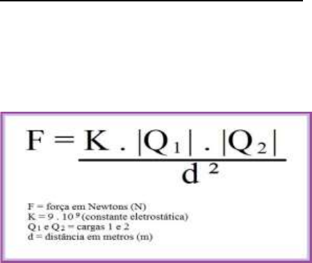 LEI DE COULOMB E FORÇA ELÉTRICA. A lei de Coulomb é uma lei da Física usada para determinar a intensidade da força de atração ou repulsão entre duas cargas elétricas. O módulo da força elétrica e inversamente proporcional ao quadrado da distância que as separa e diretamente proporcional as cargas. Exercícios de aprendizagem 1-Duas cargas puntiformes de valores 3.10-5 C e 5.10-6 C sofrem uma força de repulsão no vácuo. Sabendo que a constante eletrostática (K) no vácuo é 9.109 N.m2/C2, calcule a intensidade da força de repulsão entre as cargas, separadas por uma distância de 0,15 m. 2-Três cargas puntiformes positivas, no vácuo, estão sofrendo repulsão. Os valores das cargas q1, q2 e q3 são, respectivamente, 3.106 C, 8.10-6 e 4.10-6 C. Q3 está inserida a uma distância de 2 cm de q1 e a 4 cm de q2. Calcule a intensidade da força elétrica que a carga q3, posicionada entre q1 e q2, está recebendo. Utilize a constante eletrostática 9.109 N.m2/C2. 4-Duas partículas eletricamente carregadas, com cargas de 1,0 μC e 2,0 mC, são separadas no vácuo a uma distância de 0,5 m. Determine o módulo da força elétrica existente entre as cargas. 5-Uma esfera recebe respectivamente cargas iguais a 2 μC e -4 μC, separadas por uma distância de 5 cm . a) Calcule o módulo da força de atração entre elas . b) Se colocarmos as esferas em contato e depois as afastarmos por 2 cm, qual será a nova força de interação elétrica entre elas? 6-Estando duas cargas elétricas Q idênticas separadas por uma distância de 4m, determine o valor destas cargas sabendo que a intensidade da força entre elas é de 200 N. 7-(Unifesp) Duas partículas de cargas elétricas Q1=4,0⋅ 10 -16 C e Q2=6,0⋅10 -16 C estão separadas no vácuo por uma distância de 3,0⋅10 -9 m. Sendo ko=9 ⋅109 N m2 /C2 , a intensidade da força de interação entre elas, em Newtons, é de: 8-(Fuvest) Três objetos com cargas elétricas idênticas estão alinhados como mostra a figura. O objeto C exerce sobre B uma força igual a 3,0 ∙10 -6 N. A força elétrica resultante dos efeitos de A e C sobre B é: 9-Qual é a distância aproximada entre duas cargas elétricas iguais de 25 ∙10-6 C , se se atraem no vácuo com uma força de 100 N ? 10-Determine a força elétrica entre duas cargas elétricas de valor Q1= 4μC e Q2= -3μC , distanciadas a 2 cm. Além disso, a força elétrica entre elas é repulsiva ou atrativa? 11-Duas cargas iguais com valor Q apresentam uma força repulsiva de 200 N e estão distanciadas a 80 cm uma da outra. Sabendo que ko= 9 ⋅10 9 N m2 /C2, encontre o valor da carga Q.