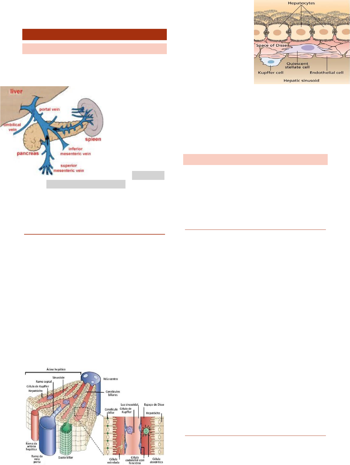 CIRROSE HEPÁTICA FISIOLOGIA DO FÍGADO → Fígado possui dupla vascularização. → VEIA PORTA: veia mesentérica superior + esplênica. o Grande volume de sangue (proveniente do baço, pâncreas e intestino) - rico em nutrientes (absorvidos do TGI). o 1000-1200 mL/min. o 50-70% do suprimento de O2 do fígado. → ARTÉRIA HEPÁTICA: 20-30%; sangue altamente oxigenado diretamente do tronco celíaco da aorta. o Fluxo converge nos sinusoides. ARQUITETURA DO FÍGADO → Os HEPATÓCITOS (unidade funcional do fígado) têm capilares/sinusoides extremamente fenestrados → transporte de substâncias do corpo todo, e não possuem membrana basal (facilita ainda mais a passagem de substâncias). o SINUSOIDES HEPÁTICOS: função de conduzir sangue da circulação porta e sistêmica para a veia centrolobular → durante o percurso, metabolizam as toxinas do corpo. o Metabolismo de substâncias hepáticas acontece nos hepatócitos. → ESPAÇO DE DISSE: é o interstício entre sinusoide e o hepatócito. o Contém as CÉLULAS ESTRELADAS ou CÉLULAS DE ITO: quiescentes (taxa metabólica diminuída); armazena vitamina A. Se ativadas (necrose ou inflamação), produzem matriz extracelular - induzida por citocinas liberadas pelas CÉLULAS DE KPUFFER (célula de defesa do fígado). CIRROSE → Processo patológico irreversível de deposição de fibrose no parênquima hepático com presença de nódulos de regeneração (formados pela aproximação de células lesadas do fígado) - diminuição da funcionalidade do órgão. ETIOLOGIAS → Hepatites autoimunes: o Hepatite autoimune tipo 1 e tipo 2 o Cirrose biliar primária o Colangite autoimune → Doenças metabólicas: o Hemocromatose o Doença de Wilson o Esteatohepatite não alcoólica o Deficiência de α-1-antitripsina: enzima produzida pelo fígado que inibe a ação de outras proteases. → Álcool: doença alcoólica do fígado. → Doenças da infância: fibrose cística, galactosemia e atresia biliar. → Vírus hepatotróficos: o Hepatite B: pode causar CHC sem causar cirrose. o Hepatite C o Hepatite B + D → Drogas: metildopa, amiodarona, metotrexato, isoniazida e fenitoína. FISIOPATOLOGIA → Se ativação das células estreladas, em resposta a uma necrose hepatocitária ou inflamação, há produção de colágeno e deposição de fibrose (remodelamento da citoarquitetura do parênquima hepático) no espaço de Disse. o Presença de traves de fibrose no espaço de Disse dificultam a passagem de substâncias → perda da capacidade de metabolização. o Perda de fenestras e do contato entre hepatócitos. o Ativação de células de Kupffer → liberação de citocinas → constricção dos sinusoides (redução do calibre) → aumento de pressão → HIPERTENSÃO PORTAL. EXAME FÍSICO → O normal é a consistência fibroelástica (“ponta de nariz”) do fígado, no entanto, pacientes com cirrose terão uma consistência endurecida com ponta/borda romba. → Hepatomegalia no início, mas no decorrer do processo, diminui de tamanho. DIAGNÓSTICO → Diagnóstico clínico, laboratorial e de imagem. o Cirrose: diagnóstico histopatológico. o Doença crônica parenquimatosa do fígado (DCPF): síndrome clínica. → Biópsia é padrão ouro, mas é muito invasiva. o Quando a clínica + laboratório + imagem sugestivos, é desnecessária. o Fornece pistas diagnósticas da etiologia. o Apresenta riscos (coagulopatias). QUADRO CLÍNICO → Desregulação dos hormônios sexuais: fígado tem papel importante no metabolismo do estrogênio em metabólitos inativos. o Sinais de hiperestrogenismo (acontece primeiro): aumento da conversão periférica de androgênio em estrogênio. • ERITEMA PALMAR: vasodilatação mediada pelo hormônio. • TELANGIECTASIAS: vasodilatação mediada pelo hormônio; desaparece a digitopressão. • GINECOMASTIA: desenvolvimento anormal de mamas em homens; manifestação mais tardia. o Sinais de hipoandrogenismo: ATROFIA TESTICULAR; PERDA DE LIBIDO, DISFUNÇÃO ERÉTIL; RAREFAÇÃO DE PELOS; SARCOPENIA (perda de massa muscular é bem maciça). → Sinais de hipertensão portal: o Ascite. o Varizes de esôfago e fundo gástrico → HDA. o Esplenomegalia congestiva → Hiperesplenismo. o Circulação porta visível (circulação colateral): “cabeça de medusa” o Síndrome de hipertensão portopulmonar. → Sinais de insuficiência hepatocelular: o Icterícia: fígado participa da conjugação da bilirrubina → aumento de bilirrubina indireta. o Encefalopatia hepática o Coagulopatias o Hipoalbuminemia → Anasarca. o Desnutrição; imunodepressão o Síndrome hepatorrenal e hepatopulmonar. ALTERAÇÕES LABORATORIAIS → Aminotransferases (TGO-AST e TGP-ALT): podem estar normais; não estima gravidade; AST > ALT. → FA e GGT: normal; se elevadas, sugerem etiologia canalicular. → Função hepática: o Hiperbilirrubinemia direta (mal prognóstico). o Hipoalbuminemia: fígado produz albumina. o Alargamento do tempo de protrombina e redução da atividade de protrombina (TP | RNI): fígado produz fatores de coagulação. → Outros: o Hipergamaglobulinemia: por infecção? etiologia autoimune da cirrose? o Hiponatremia: contexto dilucional - paciente “congesto”. o Pancitopenia: anemia, leucopenia e plaquetopenia/trombocitopenia. EXAMES DE IMAGEM → Nodularidade da superfície hepática, heterogeneidade do parênquima, alargamento do sistema porta, redução do lobo direito (atrofia se inicia nesse lobo), identificação de nódulos regenerativos, busca por CHC (principal fator de risco é a cirrose). → USG de abdome com ou sem doppler: o Se suspeita de hipertensão portal - USG com doppler. → TC de abdome; RM; AngioRM; Arteriografia. CLASSIFICAÇÃO → Classificação de Child-Pugh-Turcotte: 5 critérios - mnemônico BEATA (Bilirrubina, Encefalopatia hepática, Ascite, TP - RNI, Albumina). none: ausente COMPLICAÇÕES DA CIRROSE HIPERTENSÃO PORTAL (HP) → Nem sempre HP está associada a cirrose no in