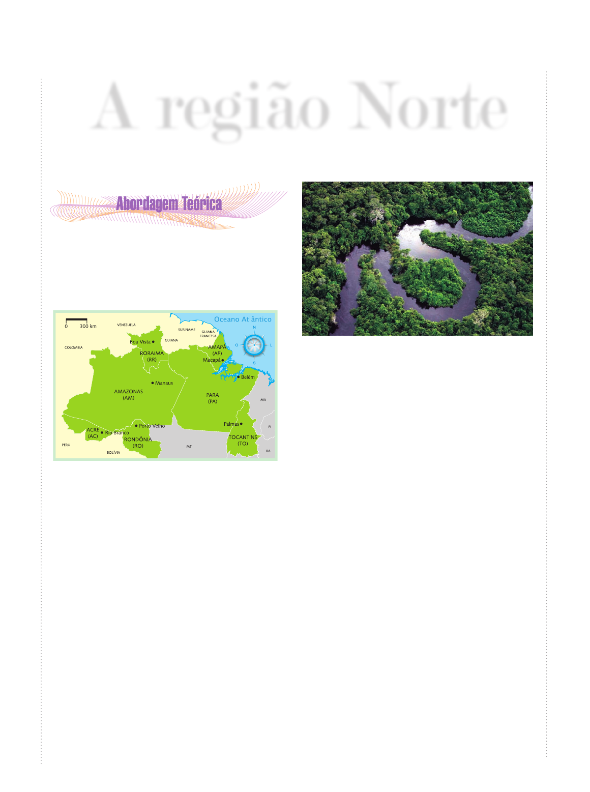 A região Norte A região Norte compreende os estados do Acre, Amapá, Amazonas, Pará, Rondônia, Roraima e Tocantins. É a área mais desconhecida do país, tendo a Amazônia como sua principal referência. ´ Região Norte – político Aspectos físicos A floresta amazônica é a vegetação predominan- te na região Norte, sendo o bioma mais bem preser- vado do país. A Amazônia brasileira ocupa 4 milhões de km2, ou seja, cerca de 45% da superfície do país, entre a região Norte e Centro-Oeste. Essa floresta caracterizada pela grande biodiversidade existente está inserida em um conjunto de planaltos, depres- sões e planícies, bastante desgastados, de origem sedimentar e cristalina. Dentro desse contexto, temos uma vegetação correlacionada diretamente com re- levo, pois nas áreas baixas, junto aos leitos dos rios, temos a mata de igapó; nos terraços encontramos a mata de várzea; nas áreas mais altas, chamados de baixos platôs, temos a mata de terra firme. Floresta Amazônica. L eo n ar d o F. F re it as . Os solos da Amazônia se revelam de grande fra- gilidade, devido aos poucos nutrientes que possuem. Devido, também, à presença do clima equatorial úmi- do em maior parte da região, muitos dos nutrientes dos solos da Amazônia são lixiviados. O fator que permite ao solo dessa região abrigar uma formação florestal tão complexa quanto a Amazônia, está no aporte orgânico que a própria floresta deposita, como folhas, cascas etc. Também é importante sal ientar a rica hidro- grafia da região, que é percorrida pela maior bacia hidrográfica do mundo, a do rio Amazonas. Além dessa bacia, destaca-se a Bacia Hidrográfica do rio Araguaia-Tocantins, que nasce no Centro-Oeste, mas que possui sua foz junto ao Golfão Amazônico no estado do Pará. No rio Araguaia, no estado do Tocantins, está a maior ilha fluvial do mundo – a Ilha do Bananal. No planalto das Guianas encontram-se as maio- res altitudes do país, o Pico da Neblina e o Pico 31 de Março. Dentro dessa unidade, ao norte do estado de Roraima temos uma vegetação classificada como Cerrado, assim como em uma área distinta a esta no estado do Tocantins, também encontramos esse tipo de formação fitogeográfica. 1 População A região Norte é a maior do país, com cerca de 45% do território brasileiro, entretanto a população é bai- xíssima, correspondente a apenas 7,5% da população brasileira, obtendo além da menor população absoluta (12 900 704 habitantes) a menor densidade demográfi- ca, com pouco mais de 3 habitantes por km2. Estados População Absoluta (hab.) Densidade Demográfica I B G E . Acre 557 526 3,6 Amapá 477 032 3,3 Amazonas 2 812 557 1,7 Pará 6 192 307 4,9 Rondônia 1 379 787 5,8 Roraima 324 397 1,4 Tocantins 1 157 098 4,1 População e Densidade Demográfica do Norte (2000). Mesmo sendo ainda a região que possui a menor parcela da população, o Norte é uma região que vem aumentando sua taxa de crescimento populacional nas últimas décadas. Esse fato tem aumentado a par- ticipação do Norte no total da população brasileira. A construção de grandes rodovias como a Transamazô- nica (em total abandono), a Cuiabá-Porto Velho, e a Porto Velho-Manaus, além da concessão de algumas facilidades para investimentos na região, inclusive com a formação da Zona Franca de Manaus, trouxe um fluxo migratório, principalmente de nordestinos em busca de trabalho. Boa parte deles foi trabalhar em grandes projetos de mineração como o Grande Carajás. Essa região, por abrigar um grande contingente indígena, possui uma população grande de pardos – no caso mamelucos, conhecido na região como tapuio, fruto da miscigenação entre índios e brancos (colonizador). Extrativismo vegetal e agropecuária O extrativismo vegetal foi durante muito tempo a principal atividade econômica da região Norte, desta- cando-se a borracha, castanha-do-pará e madeiras de corte. A borracha teve grande importância no período entre 1880 e 1914. A derrocada brasileira no comércio mundial de borracha foi motivada pelo plantio de se- ringais, por parte da Inglaterra, no sudeste Asiático. Mesmo assim, ela continua tendo importância regio- nal, principalmente no Acre e no Amazonas. A extração da madeira ainda possui grande mercado, e, por isso, é comum ver grandes áreas devastadas na Amazônia, em função de grupos ma- deireiros que fazem o corte, muitas vezes de forma ilegal (80% segundo o Greenpeace). Os principais compradores da madeira são o Japão e a Europa. A devastação da floresta amazônica, em função da exploração madeireira, tem levado a diversos conflitos entre madeireiros e os povos da floresta. Enquanto para os madeireiros cortar mais madeiras significa maior lucro, para os povos da floresta (pe- quenos extratores), que trabalham com a borracha, a devastação da floresta representa a perda do meio de sobrevivência. A agropecuária, que antes era principalmente de subsistência – com roças de arroz, milho, feijão e mandioca – cujo melhor rendimento dava-se nas vár- zeas, hoje assume também a característica comercial. Produtos que já eram produzidos, como a pimenta- -do-reino (a leste de Belém, na Zona Bragantina) e a juta (nas proximidades de Manaus), continuam sendo muito cultivados. Entretanto, com o incentivo para a ocupação da região, muitos fazendeiros (em boa parte do Sudeste e Centro-Oeste) adquirem grandes extensões de terra destinadas à agropecuária. Com isso, a mata é derrubada para o plantio de pastagens, visando a criação de gado. Em seguida, temos a introdução de grandes cultivos como o de arroz e o de cana- -de-açúcar, por intermédio de projetos como o Jari, implantado em 1971, pelo governo militar. Porém, o plantio dessas culturas levou ao desmatamento de áreas entre o Pará e Amapá. Atualmente, a soja está ocupando Rondônia e o sul do Pará. A especulação de terras virou uma prática comum na região, pois muitos d