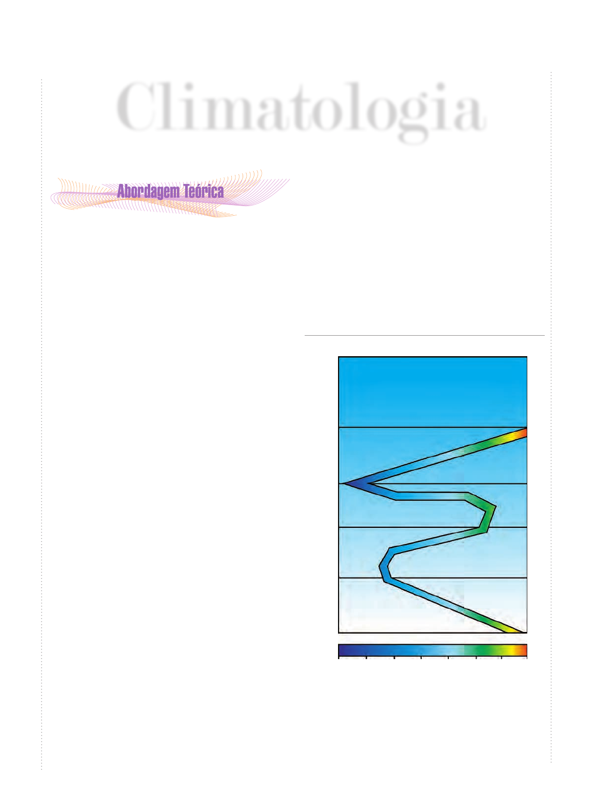 Climatologia Estudar o clima é de interesse de toda a po- pulação mundial. A necessidade de se obter um conhecimento prévio sobre a natureza faz com que a ciência busque constantemente o desenvolvimento de novas tecnologias relacionadas aos fenômenos atmosféricos. A possibilidade de prever as grandes cheias dos rios, invernos rigorosos ou períodos de longas secas, que afetam áreas agrícolas pode salvar safras inteiras. Por meio da mídia, somos informados diaria- mente sobre a previsão do tempo, com uma boa margem de acerto. Devido às inovações tecnológi- cas empregadas é possível informar dados como a temperatura máxima e mínima, a possibilidade de chover, assim como a umidade relativa do ar. Mas, para compreendermos esses conceitos, precisamos diferenciar o tempo do clima, assim como os fatores que condicionam as ações de cada um. O conheci- mento do tempo e do clima de nossa região pode ser uma ferramenta importante para nossa sobrevivência em espaços que foram totalmente ou parcialmente modificados pelo homem. Primeiramente, vamos ver alguns conceitos básicos de metereologia. Atmosfera A atmosfera é formada por uma série de gases, entre os quais se destacam o oxigênio e o nitrogênio. Os demais gases, que compõem apenas 1% do vo- lume do ar atmosférico, denominam-se gases raros. Além deles, aparecem naturalmente na atmosfera micro-organismos e partículas sólidas em suspensão, como as cinzas vulcânicas, poeiras etc. A composição da atmosfera não é homogênea. Por exemplo: a quantidade de oxigênio presente na atmosfera vai diminuindo gradualmente à medida que subimos e praticamente inexiste a 80km de alti- tude. O número de moléculas de nitrogênio aumenta até 40km, para decrescer em seguida. O hidrogênio aumenta continuamente sua presença até dominar sobre os demais gases na faixa altimétrica de 75 a 200km de altitude. Não se sabe dizer, com precisão, qual a espes- sura da atmosfera, mas ela é estimada em 800km. Em função da gravidade, o ar é mais denso em baixa altitude e torna-se mais rarefeito à medida que a altitude aumenta, o que explica também a variação da pressão. Calcula-se que cerca de 97% dos gases estão na faixa dos 30km iniciais da atmosfera. Sabe-se que a atmosfera é composta por quatro camadas principais. Vejamos suas características. Estrutura das camadas que compõem a atmosfera Esosfera Atmosfera Termosfera Mesosfera Estratosfera Troposfera 10km 50km 80km 190km 960km -100 -80 -60 -40 -20 200 40Co Troposfera É a camada que nos envolve diretamente, na qual a maioria das atividades humanas se realiza. Nessa camada é encontrada uma composição de gases que propicia a vida humana, assim como os 1 fenômenos de precipitação e outros como a neve, granizo etc. Cerca de 80% dos gases que compõem a atmosfera estão na troposfera. Estratosfera É marcada pelo fenômeno chamado de inver- são térmica, no qual se verifica um crescimento da temperatura em relação à camada anterior. Essa inversão térmica ocorre em função da presença do O3 ou ozônio, que absorve e filtra a radiação ultravioleta vinda do Sol. Mesosfera É caracterizada pela redução das temperaturas conforme aumenta a altitude. Nessa camada são verificadas as menores temperaturas da atmosfera terrestre. Ionosfera É parte externa da atmosfera, na qual as molé- culas de gás se tornam carregadas eletricamente ou ionizadas, refletindo para a Terra as ondas de rádio. Sua tendência geral é de aumento da temperatura com a altitude, por causa da absorção da radiação solar pelas partículas sólidas, resíduos cósmicos etc. As camadas da atmosfera são separadas por três níveis: tropopausa, estratopausa e mesopausa. IE SD E B ra si l S .A . Altura da Atmosfera e raio da Terra Composição do ar até cerca de 100km de altitude Nitrogênio 78,0084% Oxigênio 20,946% Argônio 0,934% outros 0,036% 6.378km 800km Tempo e clima Define-se tempo como um conjunto de caracte- rísticas do estado atmosférico de uma região, isto é, se a temperatura está alta ou não, se está nublado ou não etc. Clima é o conjunto das condições atmos- féricas (precipitação, temperaturas e ventos) de uma região, sendo determinado pelas médias mensais e anuais dessas condições atmosféricas, pelo menos, dos últimos 30 anos. Dessa forma, pode-se notar que o clima apresenta um aspecto duradouro. O tempo é efêmero, pode ser alterado várias vezes durante o dia. O elementos do clima são os seguintes: temperatura atmosférica; • pressão atmosférica; • umidade atmosférica; • ventos; • massas de ar; • precipitações atmosféricas. • Esses elementos variam de um lugar para outro da superfície terrestre em função dos fatores climá- ticos, que são: altitude; • latitude; • vegetação; • maritimidade; • continentalidade; • correntes marítimas; • relevo; • estações do ano. • Tipos de clima Por meio da combinação entre uma ou mais va- riáveis climáticas, como diferenças na temperatura, ação das massas de ar etc. a superfície do planeta apresenta uma série de condições climáticas que, por sua vez, irão constituir tipos climáticos. Os principais tipos de clima são: polar ou gla- cial, mediterrâneo, temperado, tropical, equatorial, subtropical, árido ou desértico e semiárido. Polar ou glacial Aparecem nas altas latitudes, próximas aos círculos polares Ártico e Antártico, onde existe uma grande variação térmica do dia e da noite e, obviamen- te, na quantidade de radiação absorvida ao longo do ano. Possuem como características baixas tempera- turas durante o ano inteiro, atingindo em média 10ºC 2 nos meses de verão. Isso acontece em regiões onde a camada de neve e gelo que recobre o solo, derrete, em função de o dia ser mais longo que a noite. Climograma Groelândia, clima polar. 0 P (mm) 600 500 400 300 200 100 T (ºC) – 10 – 15 – 20 – 25 – 30 – 35 – 40 Temperatura média Pr