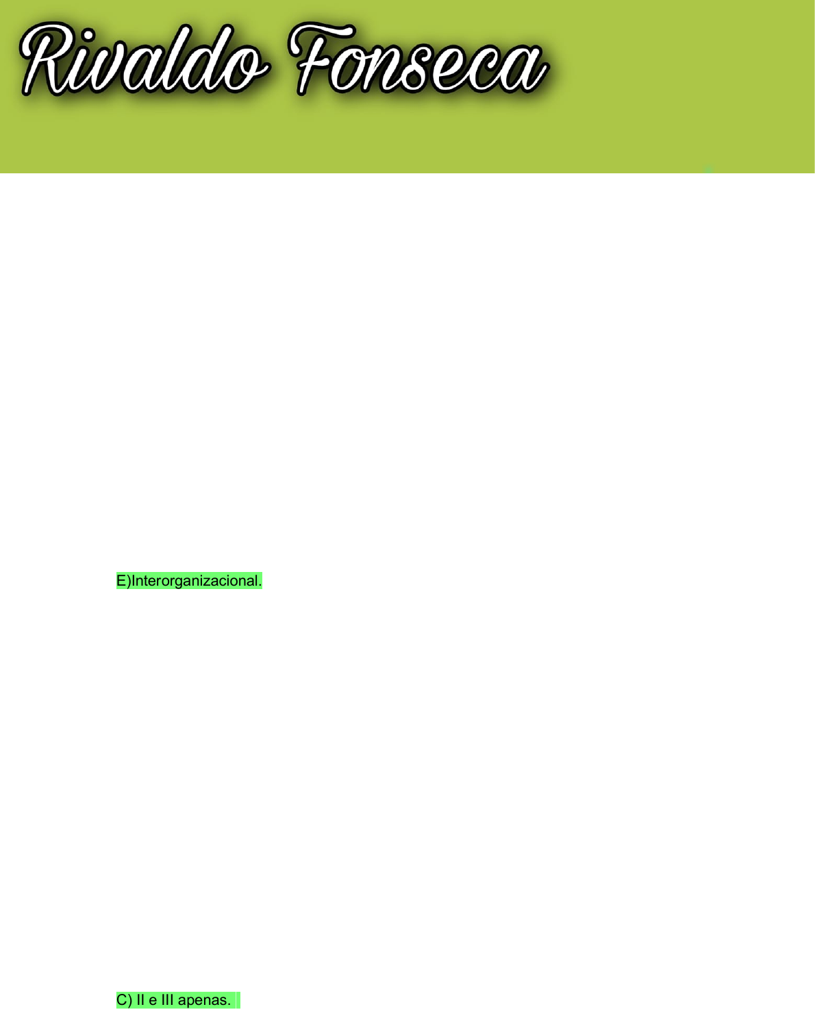 TÉCNICAS DE INFORMÁTICA – UNIP Questão 1: Considerando a necessidade de criação de um sistema que integre hospitais e os seus fornecedores, deve ser implantado um sistema: A)Funcional. B)Integrado. C)ERP. D)De apoio a decisão. E)Interorganizacional. Questão 2: Analise as afirmativas a seguir: I_ Um analista, ao abrir um arquivo de texto no computador, deparou-se com uma série de números, aparentemente sem quaisquer ligações e/ou relações. II_ O professor de uma determinada disciplina coletou as notas tiradas pelos alunos em uma planilha eletrônica e verificou que aproximadamente 50% não atingiu a média para aprovação. Ele resolveu aplicar um processo de recuperação, por meio de uma prova, com o objetivo de “salvar “ os alunos considerados mais esforçados. III_ Analisando a previsão do tempo para uma determinada região, verifica-, devido ao frio intenso, encontra se a necessidade de usar agasalhos. Exemplo de conhecimento encontra-se em: A)I e II apenas. B) I e III apenas. C) II e III apenas. D) I apenas. E) II apenas. Questão 3: Qual a parte do sistema computacional que executa as instruções dos programas de computador? A)Memória B)Barramentos. C)CPU. D)Dispositivos de entrada. E)Dispositivos de saída. Questão 4: As afirmações a seguir apresentam características de memórias: I_ Possui armazenamento temporário. II_ Ser uma memória apenas de leitura. III_ Não perder nada do que está na memória quando o computador é desligado. Características da memoria ROM estão descritas em: A)I e II apenas. B) II e III apenas. C) I e III apenas. D) II apenas. E) III apenas. Questão 5: Qual das alternativas a seguir apresenta uma informação incorreta sobre computadores portáteis? A)Os netbooks são computadores portáteis ainda ainda menores em praticamente todos os sentidos capacidade, desempenho e dimensões. B)Os notebooks tem gabinetes dobráveis além de terem capacidade/características muito diferente dos microcomputadores. C)Os tablets têm pouco mais que 25 anos de vida . O primeiro foi lançado em 1994 pela Acorn computers e recebeu e recebeu o nome de Newspad. D)Os smartphones nasceram da ideia de estabelecer uma solução que envolva computação e telefonia. E)Ainda na década de 1990, os smartphones eram chamados de PDA e só no final dela a empresa Ericsson se referiu ao seu PDA como smartphone, cunhando pela primeira vez este termo. Questão 6: Analise as opções a seguir: I_ Registradores. II_ Unidade lógica e aritmética. III_ Unidade de controle. IV_ Dispositivos de entrada. Não menciona (m) um componente interno da CPU : A)I e II apenas. B)I apenas. C)II apenas. D)III apenas. E)IV apenas.