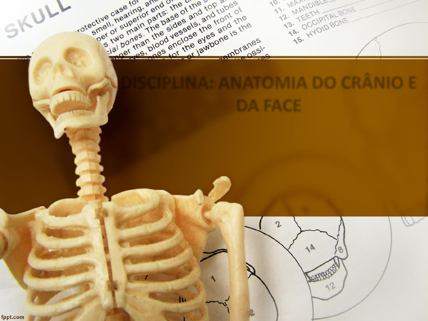 DISCIPLINA: ANATOMIA DO CRÂNIO E DA FACE HABILIDADES, COMPETÊNCIA, E BASES TECNOLOGICAS INDICE POSICIONAMENTO RADIOLÓGICO DO CRÂNIO. ANATOMIA RADIOGRÁICA DO CRÂNIO. ALGUMAS PATOLOGIA QUE ACOMENTEN NO CRÂNIO E NA FACE. ESQUELETO AXIAL CRÂNIO. ARTICULAÇÕES DO CRÂNIO – SUTURAS. CRÂNIO LADENTE. FONTANELAS. REVISÃO DA ANATOMIA COM RADIOGRAFIAS. SELA TURCA. POSICIONAMENTO RADIOGRÁFICO DE CRÂNIO E FACE. PATOLOGIA QUE ACOMENTEM O CRÂNIO E FACE • FRATURAS:DESCONTINUIDADE NA ESTRUTURA ÓSSA. • METÁSTASES: SÃO NEOPLASIAS MALIGNAS PRIMARIAS QUE SE DISSEMINAM PARA LOCAIS DISTANTES, POR MEIO DO SANGUE E DO SISTEMA LIFÁTICO. • MIELOMA MÚLTIPLO: CONSISTE EM UM OU MAIS TUMORES ORIGINANDOS NA MEDULA OSSEA, O CRÂNIO É UM LOCAL COMUMENTE AFETADO. • NEOPLEDIASIAS: SÃO CRECIMENTO NOVOS E ANORMAIS. • SINUSITE: É A INFLAMAÇÃO DAS MUCOSAS DOS SEIOS DA FACE, NA REGIÃO DO E É FORMADA PELA CAVIDADES OSSEAS AO REDO DO NARIZ. ESQUELETO AXIAL CRÂNIO E DA FACE NEUROCRÂNIO CONTEI (8) OSSOS ESQUELETO DA FACE QUATORZE (14) OSSOS FRONTAL 01 MANDÍBULA 01 OCCIPITAL 01 VÔMER 01 ESFENÓIDE 01 ZIGOMÁTICO 02 ETMÓIDE 01 MAXILA 02 TEMPORAL 02 PALATINO 02 PARIETAL 02 NASAL 02 MARTELO,BIGORBA, 02 LACRIMAL 02 ESTRIBO 01 CONCHA NASAL INFERIOR 02 POSICIONAMENTO RADIOLÓGICO DO CRÂNIO • PARA REALIZAÇÃO DOS POSICIONAMENTOS RADIOLÓGICOS DO CRÂNIO: É NECESSÁRIO COMPREENDER ALGUMAS LINHAS IMAGINÁRIAS, PLANOS E PONTOS IMPORTANTES PARA A POSICIONAR A CABEÇA DO PACIENTE DE ACORDO COM O EXAME SOLICITADO. • CERTOS MARCOS DE SUPERFÍCIE E LINHAS DE LOCALIZAÇÃO TÊM DE SER USADOS PARA UM POSICIONAMENTO PRECISO DO CRÂNIO. CADA UMA DAS SEGUINTES ESTRUTURAS TOPOGRÁFICAS PODE SER VISTA OU PALPADA. • ACÂNTIO: PONTO DA LINHA MÉDIA NA JUNÇÃO DO LÁBIO SUPERIOR COM NARIZ. • GLABELA: ÁREA TRIANGULAR LIZA ENTRE AS SOBRANCELHAS. • GÔNIO: ÂNGULO POSTERIOR E INFERIOR DE CADA LADO DA MANDÍBULAR. • ÍNIO: PROTUBERÂNCIA EXTERNA DO OSSO OCCIPITAL. • MENTO: PONTO MÉDIO DA REGIÃO DO QUEIXO. • NÁSIO: DISCRETA DEPRESSÃO NA RGIÃO SUPERIOR DO NARIZ. POSICIONAMENTO RADIOLÓGICO DO CRÂNIO (PLANOS CORPORAIS) • O PLANO MEDIOSSAGITAL: (PMS) OU MEDIANO DIVIDE O CORPO EM METADES, ESQUERDA E DIREITA. • ESSE PLANO: É IMPORTANTE NO POSICIONAMENTO PRECISO DO CRÂNIO, POIS EM TODA INCIDÊNCIA AP E PA OU LATERAL O PLANO MEDIOSSAGITAL ESTÁ OU PERPENDICULAR OU PARALELO AO PLANO DO FILME. • A LINHA INTERPUPILAR (LLP) OU INTERORBITAL É A LINHA QUE CONECTA AS PUPILAS OU OS CANTOS EXTERNOS DOS OLHOS DOS PACIENTES. • QUANDO A CABEÇA ESTÁ COLOCADA EM UMA POSIÇÃO LATERAL VERDADEIRA, A LINHA INTERPUPILAR DEVE ESTAR EXATAMENTE PERPENDICULAR AO PLANO DO FILME. POSICIONAMENTO RADIOLÓGICO DO CRÂNIO (PLANOS CORPORAIS) MARCOS NAS VISTAS ANTERIOR E LATERAL • A CRISTA SUPERCILIAR: (ARCO) É A CRISTA OU ARCO ÓSSEO SOBRE A FRONTE DIRETAMENTE ACIMA DE CADA OLHO. LIGEIRAMENTE ACIMA DESSA CRISTA ESTÁ UM DISCRETO SULCO OU DEPRESSÃO, DENOMINADO SULCO SUPRA ORBITÁRIO, OU OSSO. • OBSERVAÇÃO: O OSSO É IMPORTANTE POIS CORRESPONDE AO NÍVEL MAIS ELEVADO DA MASSA ÓSSEA FACIAL, QUE TAMBÉM ESTÁ NO NÍVEL DO ASSOALHO DA FOSSA ANTERIOR DA CALOTA CRANIANA. • A GLABELA: É A ÁREA TRIANGULAR LISA, LIGEIRAMENTE ELEVADA, SITUADA ENTRE AS SOBRANCELHAS (UM POUCO ACIMA DELAS E DA PONTE NASAL). MARCOS NAS VISTAS ANTERIOR E LATERAL • OLHO AS JUNÇÕES DAS PÁLPEBRAS SUPERIORES E INFERIORES SÃO DENOMINADAS CANTOS. • ASSIM, O CANTO INTERNO É O LUGAR ONDE AS PÁLPEBRAS ENCONTRAM O NARIZ; A JUNÇÃO MAIS LATERAL DAS PÁLPEBRAS É DENOMINADA CANTO EXTERNO. • A BORDA SUPERIOR DA ÓRBITA ÓSSEA DO OLHO É CHAMADA DE MARGEM SUPRAORBITÁRIA, OU MSO, E A BORDA INFERIOR É DENOMINADA MARGEM INFRAORBITÁRIA, OU (MIO). • OUTRO MARCO É A MARGEM ORBITÁRIA LATERAL MÉDIA, A PORÇÃO DA BORDA LATERAL PRÓXIMA AO CANTO EXTERNO DO OLHO. POSICIONAMENTO RADIOLÓGICO DO CRÂNIO POSICIONAMENTO RADIOLÓGICO DO CRÂNIO (ORELHA) • PARTES DA ORELHA QUE PODEM SER USADAS COMO MARCOS DE POSICIONAMENTO. • SÃO A AURÍCULA OU PAVILHÃO AUDITIVO (PORÇÃO EXTERNA DA ORELHA), A AMPLA BORDA DA ORELHA, FEITA DE CARTILAGEM, E O TRAGO, A PEQUENA BORDA CARTILAGINOSA QUE COBRE A ABERTURA DA ORELHA. • O TIO (TOPO DA INSERÇÃO DAS ORELHAS) REFERE-SE À FIXAÇÃO SUPERIOR DA AURÍCULA, OU ÀQUELA PARTE NA QUAL AS HASTES DOS ÓCULOS REPOUSAM. • ESSE É UM MARCO IMPORTANTE, POIS CORRESPONDE AO NÍVEL DA CRISTA PETROSA DE CADA LADO. POSICIONAMENTO RADIOLÓGICO DO CRÂNIO LINHAS DE POSICIONAMENTO DO CRÂNIO • CERTAS LINHAS DE POSICIONAMENTO: SÃO IMPORTANTES NA RADIOGRAFIA DO CRÂNIO. • ESSAS LINHAS SÃO FORMADAS PELA CONEXÃO DE CERTOS MARCOS ANTERIORES COM O PONTO MÉDIO DO MEATO ACÚSTICO (AUDITIVO) EXTERNO (MAE), O MAE É A ABERTURA DO CANAL EXTERNO DA ORELHA, O PONTO CENTRAL DESSA ABERTURA É DENOMINADO PONTO AURICULAR. • A MAIS SUPERIOR DESSAS LINHAS DE POSICIONAMENTO: É A LINHA GLABELOMEATAL (LGM), QUE NÃO É PRECISA COMO AS OUTRAS LINHAS, POIS A GLABELA É UMA ÁREA E NÃO UM PONTO ESPECÍFICO. • A (LGM) REFERE-SE A UMA LINHA ENTRE A GLABELA E O (MAE) A LINHORBITOMEATAL (LOM) É UMA LINHA DE POSICIONAMENTO FREQUENTEMENTE USADA, E LOCALIZADA ENTRE O CANTO EXTERNO (MARGEM ORBITÁRIA LATERAL MÉDIA) E O MAE. LINHAS DE POSICIONAMENTO DO CRÂNIO • A (LGM) REFERE-SE A UMA LINHA ENTRE A GLABELA E O (MAE), A LINHA ORBITOMEATAL (LOM) É UMA LINHA DE POSICIONAMENTO FREQUENTEMENTE USADA, LOCALIZADA ENTRE O CANTO EXTERNO (MARGEM ORBITÁRIA LATERAL MÉDIA) E O MAE. • A LINHA INFRAORBITOMEATAL: (LLOM) É FORMADA PELA CONEXÃO DA METADE DA MARGEM INFRAORBITÁRIA AO MAE, DOIS TERMOS ANTIGOS IDENTIFICAM ESSA MESMA LINHA COMO LINHA DE BASE DE REID OU LINHA DE BASE ANTROPOLÓGICA. • CRÂNIO, EMBORA ESSES TERMOS NÃO SEJAM USADOS NESTE TEXTO, EXISTE UMA DIFERENÇA MÉDIA DE 7° A 8° ENTRE 0S ÂNGULOS DAS LINHAS ORBITOMEATAL E INFRAORBITOMEATAL. • HÁ TAMBÉM UMA DIFERENÇA APROXIMADA DE 7° A 8° NO ÂNGULO ENTRE AS LINHAS 