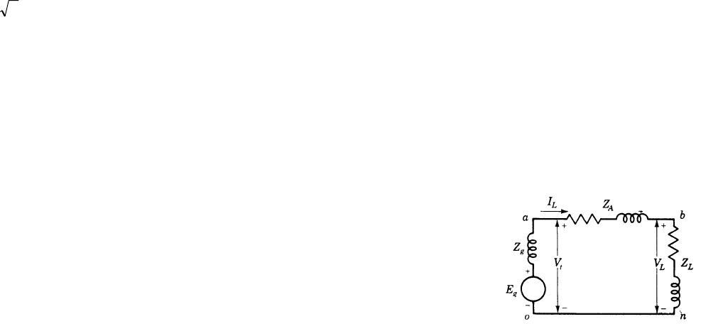 1. INTRODUÇÃO A forma de onda da tensão em um sistema de potência pode ser assumida como puramente senoidal e de freqüência constante. No desenvolvimento da maioria da teoria neste livro, lidaremos com a representação fasorial de tensões e correntes senoidais e usaremos as letras maiúsculas V e I para indicar estes fasores (com índices apropriados quando necessário). V e I entre barras verticais, isto é, |V| e |I|, designarão o módulo dos fasores. Letras minúsculas indicarão valores instantâneos. Quando se tratar de uma tensão gerada (força eletromotriz), a letra E em vez de V será usada para enfatizar o fato de que uma fem em vez de uma simples diferença de potencial entre dois pontos é considerada. Se uma tensão e uma corrente são expressas em função do tempo, tais como )30(cos4,141 °+= tv ω e ti ωcos07,7= seus valores máximos são, obviamente, Vmáx = 141,4 V e Imáx = 7,07 A, respectivamente. Barras verticais não são necessárias quando o índice máx é usado com V e I para indicar o valor máximo. O termo módulo se refere ao valor médio quadrático (root-mean-square) ou valor rms, que é igual ao valor máximo dividido por 2 . Assim, para as expressões anteriores de v e i, |V|=100 V e |I|=5 A Estes são os valores lidos por voltímetros e amperímetros comuns. Outra designação para o valor rms é valor eficaz. A potência média dispendida em um resistor é |I|2R. Para expressar estas quantidades como fasores, uma referência deve ser escolhida. Se a corrente é o fasor de referência 05º05 jI +=∠= A a tensão, que está adiantada do fasor de referência de 30° é 506,86º30100 jV +=∠= V Evidentemente, poderíamos não escolher como o fasor de referência a tensão ou a corrente cujas expressões instantâneas são v e i, neste caso suas expressões envolveriam outros ângulos. Em diagramas de circuitos, freqüentemente convém usar marcadores de polaridade na forma de sinais de mais ou menos para indicar o terminal assumido como positivo quando da especificação da tensão. Uma seta no diagrama especifica a direção assumida como positiva para o fluxo de corrente. Num circuito equivalente monofásico de um circuito trifásico a notação de índice simples é normalmente suficiente, mas a notação de índice duplo é usualmente mais simples quando se lida com todas as três fases. 2. NOTAÇÃO DE ÍNDICE SIMPLES A Fig. 1 mostra um circuito de corrente alternada (ac) com uma fem representada por um círculo. A fem é Eg, e a tensão entre os terminais a e o é identificada por Vt. A corrente no circuito é IL e a tensão sobre ZL é VL. No entanto, para especificar no diagrama estas tensões como fasores, os símbolos + e – e uma seta para o sentido de corrente são necessários. Em um circuito ac, o terminal marcado com + é positivo em relação ao terminal marcado com – durante a metade de um ciclo de tensão e é negativo em relação ao outro terminal durante a próxima metade do ciclo. Marcamos os terminais para dizer que a tensão entre os eles é positiva em qualquer instante em que o terminal mais está a um potencial maior que o terminal menos. Por exemplo, na Fig. 1 a tensão instantânea vt é positiva quando o terminal mais está realmente a um potencial maior que o terminal com sinal negativo. Durante o próximo semiciclo, o terminal marcado positivamente estará na realidade negativo e vt é negativa. Muitos autores usam uma seta, mas é preciso especificar se a seta aponta no sentido do terminal que deve ser rotulado como mais ou no sentido do terminal que deve ser rotulado como menos na convenção descrita acima. A seta de corrente desempenha uma função similar. O índice, neste caso L, não é necessário, a menos que outras correntes estejam presentes. Obviamente, o sentido real do fluxo de corrente em um circuito ac inverte a cada meio ciclo. A seta aponta no sentido que é Figura 1 Um circuito ac com fem Eg e impedância de carga ZL. considerado positivo para a corrente. Quando a corrente está fluindo no sentido oposto ao da seta, a corrente é negativa. O fasor corrente é A Lt L Z VV I − = (1) e gLgt ZIEV −= (2) Se determinados nós no circuito são assinalados com letras, as tensões podem ser designadas por índices simples identificando o nó cujas tensões são expressas em relação ao nó de referência. Na Fig. 1 a tensão instantânea va e o fasor tensão Va expressam a tensão do nó a em relação ao nó de referência o, e va é positiva quando o potencial em a é maior que em o. Assim ta vv = Lb vv = ta VV = Lb VV = 3. NOTAÇÃO DE ÍNDICE DUPLO O uso de símbolos de polaridade para tensões e setas direcionais para correntes pode ser eliminado pela notação de índice duplo. O entendimento de circuitos trifásicos é consideravelmente esclarecido com a adoção de um sistema de índices duplos. A convenção a ser seguida é bastante simples. Para denotar uma corrente a ordem dos índices associados ao símbolo para corrente define o sentido do fluxo de corrente quando esta é considerada positiva. Na Fig. 1 a seta apontando de a para b define o sentido positivo para a corrente IL associado com a seta. A corrente instantânea iL é positiva quando a corrente realmente está no sentido de a para b, e em notação de índice duplo esta corrente é iab. A corrente iab é igual a – iba. Na notação de índice duplo as letras subscritas a uma tensão indicam os nós do circuito entre os quais a tensão existe. Seguiremos a convenção que estabelece que o primeiro índice denota a tensão daquele nó em relação ao nó identificado pelo segundo índice. Isto significa que a tensão instantânea vab sobre ZA no circuito da Fig. 1 é a tensão do nó a em relação ao nó b e que vab é positiva durante o semiciclo em que o potencial em a é maior que o potencial em b. O fasor tensão correspondente é VAB, e Aabab ZIV = (3) onde ZA é a impedância complexa através da qual Iab flui entre 