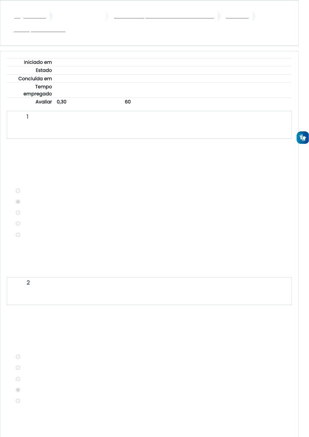 07/02/2023 18:18 Avaliação - Unidade I: Revisão da tentativa https://ambienteonline.uninga.br/mod/quiz/review.php?attempt=1887726&cmid=475878 1/6 Página inicial Minhas disciplinas 2023/1 - Cooperativismo e Associativismo UNIDADE I Avaliação - Unidade I Iniciado em terça, 7 fev 2023, 09:05 Estado Finalizada Concluída em terça, 7 fev 2023, 18:16 Tempo empregado 9 horas 11 minutos Avaliar 0,30 de um máximo de 0,50(60%) Questão 1 Completo Atingiu 0,05 de 0,05 Questão 2 Completo Atingiu 0,05 de 0,05 A economia pode ser entendida como administração de bem público ou de governo. Assim, os recursos produtivos e as técnicas de produção são empregadas a fim de atender as necessidades humanas, em diferentes arranjos, distribuídas entre as três atividades econômicas. São atividades produtivas, elencadas respectivamente de acordo com o setor econômico primário, secundário e terciário: a. Extrativismo, instituições financeiras e imobiliárias. b. Agricultura, indústria e transporte. c. Alimentação, indústria e comunicação. d. Alimentação, extrativismo e comércio. e. Comunicações, instituições financeiras, e prestadores de serviço. A resposta correta é: Agricultura, indústria e transporte. De acordo com a Teoria das Necessidades de Maslow, o psicólogo Abraham H. Maslow (1908-1970) define que há 5 patamares em modelo piramidal, sendo dividida de acordo com as necessidades humanas e as hierarquiza conforme as condições necessárias para obter a satisfação pessoal e profissional. São necessidades humanas hierarquizadas por A. Maslow, exceto: a. Necessidades sociais b. Necessidades de autorrealização c. Necessidades fisiológicas d. Necessidades espirituais e. Necessidades de segurança A resposta correta é: Necessidades espirituais https://ambienteonline.uninga.br/ https://ambienteonline.uninga.br/course/view.php?id=16268 https://ambienteonline.uninga.br/course/view.php?id=16268§ion=5 https://ambienteonline.uninga.br/mod/quiz/view.php?id=475878 07/02/2023 18:18 Avaliação - Unidade I: Revisão da tentativa https://ambienteonline.uninga.br/mod/quiz/review.php?attempt=1887726&cmid=475878 2/6 Questão 3 Completo Atingiu 0,05 de 0,05 Questão 4 Completo Atingiu 0,05 de 0,05 Em maio de 1838, com o movimento cartista que se disseminou pela classe média, surgiram as primeiras manifestações concretas de cooperativismo, que culminaram com a fundação da Sociedade dos Probos Pioneiros de Rochdale. Esse fato foi primordial para o surgimento do cooperativismo. a. Revolução Francesa b. Grande Depressão c. Guerra dos Cem Anos d. Revolução Industrial e. Revolução Agrícola A resposta correta é: Revolução Industrial No mundo atual vigoram três formas genéricas de organizações da economia, Economia de Mercado (capitalista), Economia Centralizada (socialista) e a economia social ou economia solidaria. Cada uma destas economias privilegia um fator em detrimento a outros. Assinale a alternativa que respectivamente aponte o fator privilegiado na capitalista, socialista e solidária. a. Capital, Estado e Indivíduo. b. Capital, Indivíduo e Estado. c. Indivíduo, Capital e Estado. d. Estado, Mercado e Indivíduo e. Lucro, Indivíduo e Estado. A resposta correta é: Capital, Estado e Indivíduo. 07/02/2023 18:18 Avaliação - Unidade I: Revisão da tentativa https://ambienteonline.uninga.br/mod/quiz/review.php?attempt=1887726&cmid=475878 3/6 Questão 5 Completo Atingiu 0,05 de 0,05 Questão 6 Completo Atingiu 0,00 de 0,05 O individualismo é uma doutrina moral, econômica e política, que valoriza a autonomia individual, sendo contrário a outro sistema social, que é enfatizado pelas culturas que valorizam os relacionamentos e mostram sensibilidade e preocupação com o bem-estar de outros indivíduos. Neste sentido, o sistema social que apresenta estas características é: a. Racionalismo b. Utilitarismo c. Coletivismo d. Liberalismo e. Consumismo A resposta correta é: Coletivismo O sedentarismo é definido como o processo pelo qual o homem primitivo deixou de ser nômade, passando a habitar de forma definitiva determinado local. A sedentarização do Homem permitiu o desenvolvimento e a evolução da civilização humana, bem como a urbanização. Alguns fatores contribuíram para que esse processo acontecesse: I – Esgotamento de recursos naturais do local. II – Domesticação de animais. III – Desenvolvimento da agricultura através do cultivo de alimentos. IV – Alterações climáticas. Assinale as alternativas, de acordo com as afirmativas julgadas acima. a. F-V-V-F b. V-F-V-F c. V-V-V-F d. F-V-V-V e. V-V-V-V A resposta correta é: F-V-V-F 07/02/2023 18:18 Avaliação - Unidade I: Revisão da tentativa https://ambienteonline.uninga.br/mod/quiz/review.php?attempt=1887726&cmid=475878 4/6 Questão 7 Completo Atingiu 0,00 de 0,05 Questão 8 Completo Atingiu 0,00 de 0,05 O termo “cluster”, para organizações, se refere à concentração das empresas e à existência de atividades, agentes e instituições de apoio ao conglomerado, em um determinado local. É também conhecido como Arranjo Produtivo Local e podem ter as atividades mais variadas possíveis. O único cluster abaixo que atua na área de tecnologia é: a. Valle del Cauda, na Colômbia. b. Vale dos Sinos, no Brasil. c. Silicon Valley, nos Estados Unidos. d. MOBINOV, em Portugal. e. Healthcare, na Alemnanha. A resposta correta é: Silicon Valley, nos Estados Unidos. Organização é definido como um sistema de união de pessoas, ideias, ideologias e recursos, cuja a finalidade é atingir um objetivo comum. Chiavenato (1998), diz que a cooperação entre os indivíduos é essencial para a existência da organização, sendo que ela só existe quando: I – Os indivíduos são capazes de se comunicarem; II – Os indivíduos estão dispostos a contribuir em ação conjunta; III – Os indivíduos possuem recursos financeiros para investir; IV – Os indivíduos almejam alcançarem 